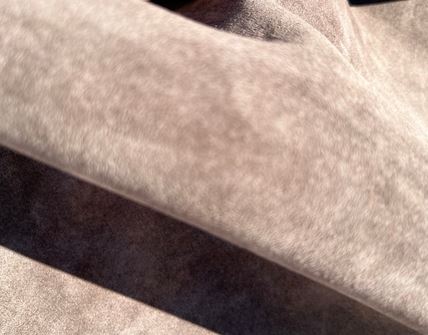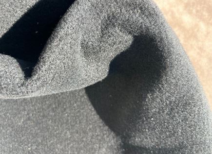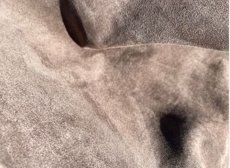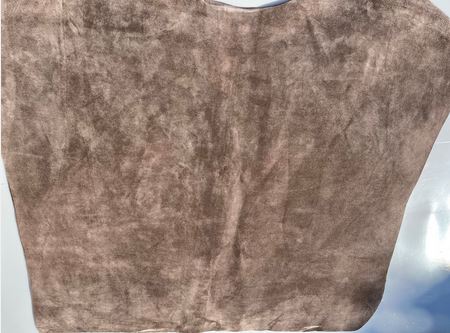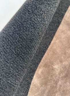 Pellame scamosciato resinato accoppiato con feltro nero nella parte retro, mano semirigida, alto spessore, ampiamente utilizzato nel settore della calzatura per la produzione di ciabatte, articoli per animali, hobby creativi e molto altro, consente di ottenere una tomaia con il retro già completo di fodera pronta per il montaggio.
