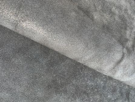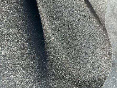 Pellame di vitello stampa mille punte accoppiato con feltro nero nella parte retro, mano semirigida, alto spessore, ampiamente utilizzato nel settore della calzatura per la produzione di ciabatte, articoli per animali, hobby creativi e molto altro, consente di ottenere una tomaia con il retro già completo di fodera pronta per il montaggio.