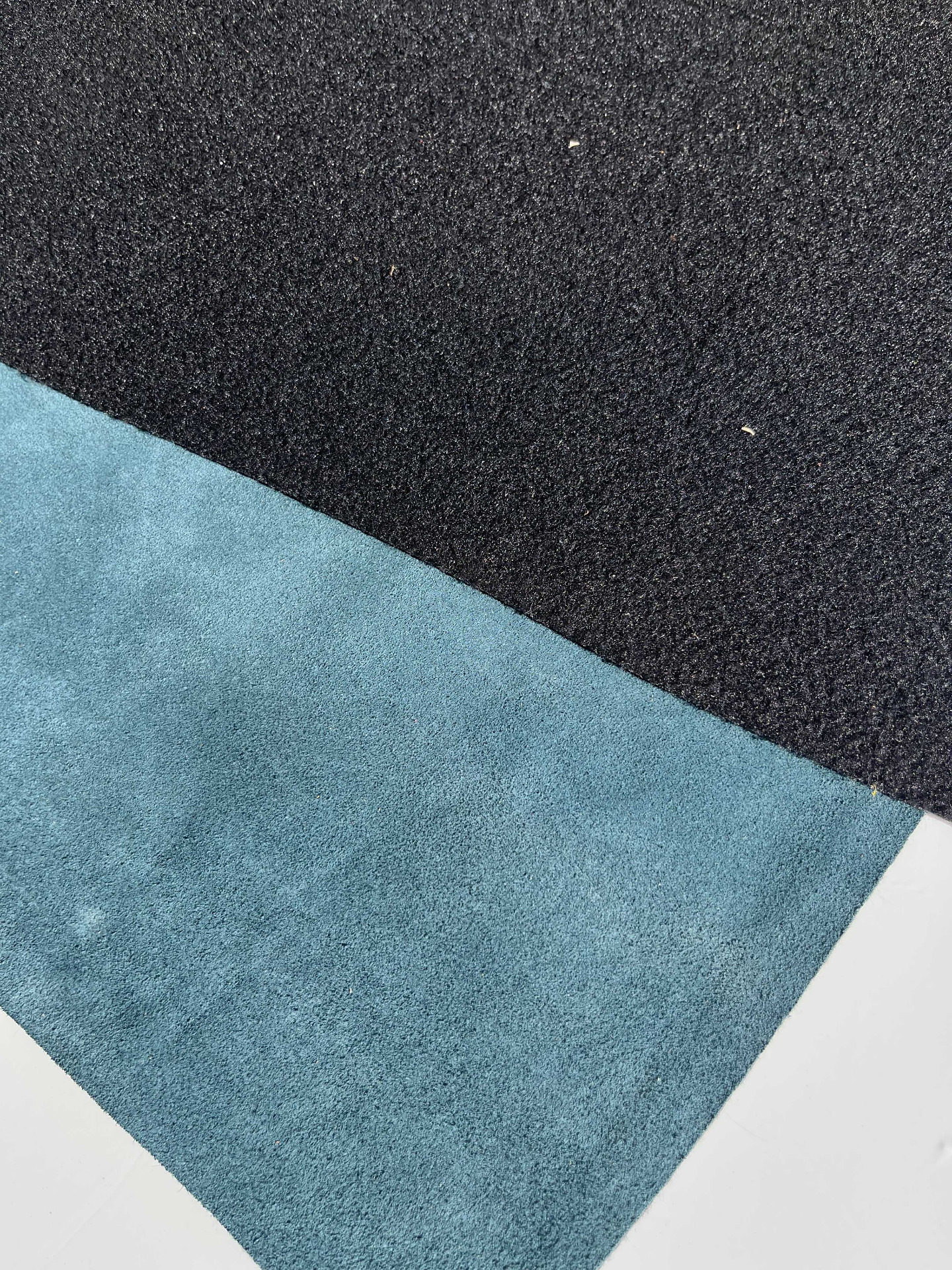 Pellame scamosciato accoppiato con feltro nero nella parte retro, mano semirigida, alto spessore, ampiamente utilizzato nel settore della calzatura per la produzione di ciabatte, articoli per animali, hobby creativi e molto altro, consente di ottenere una tomaia con il retro già completo di fodera pronta per il montaggio.