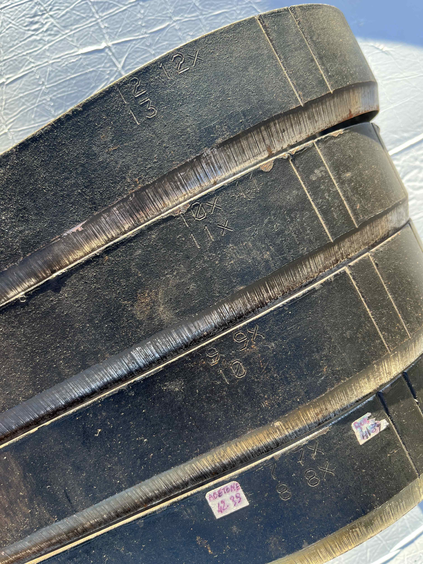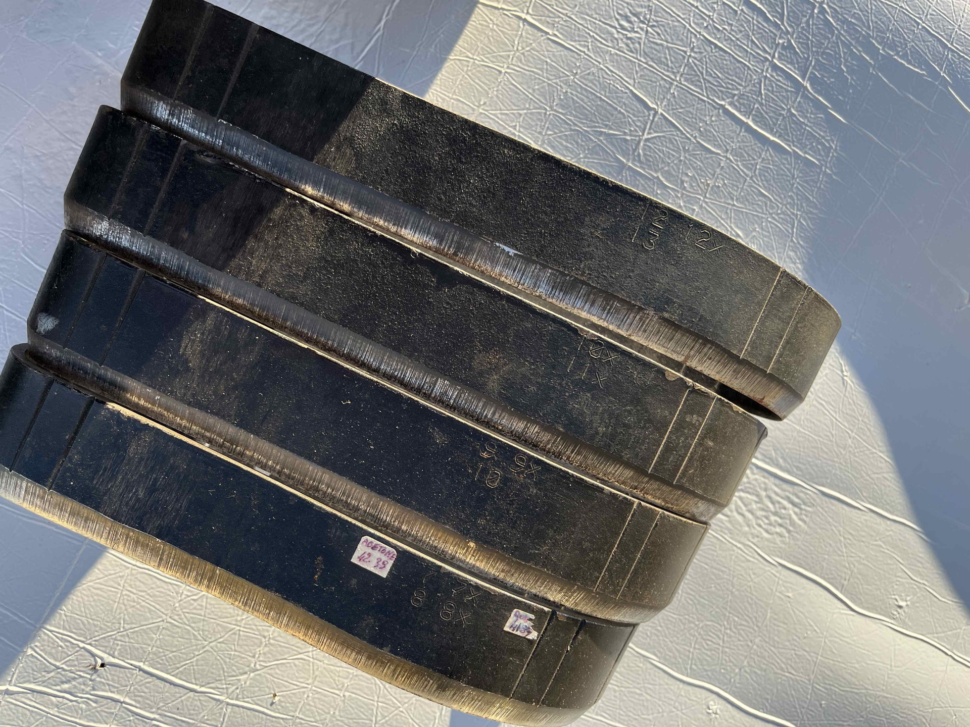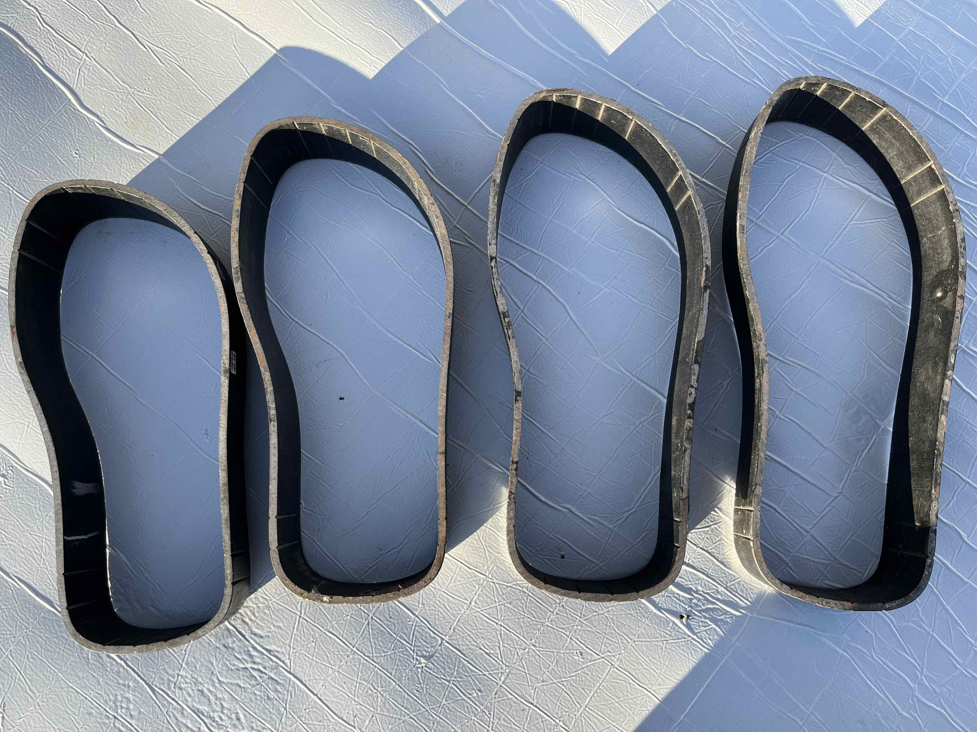 Fustelle forgiate in acciaio pesante per ttanciare sottopiede a modello di infradito e ciabatte uomo, cinque millimetri di spessore e cinque centimetri di altezza, fustelle usate in condizioni eccellenti.