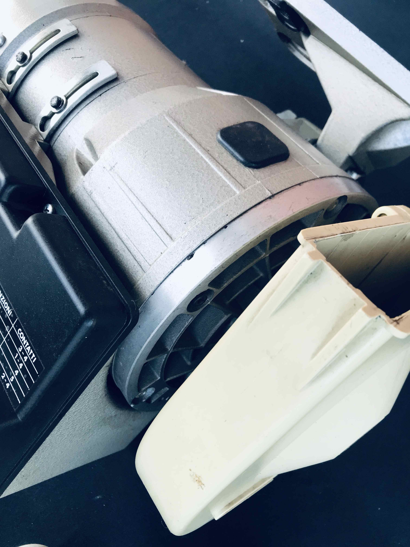 Motore asincrono FIR usato completo dì alzapiedino a induzione con gruppo freno frizione elettromagnetici comandati da controllo elettronico per la regolazione della velocita' e della posizione dell'ago della macchina.