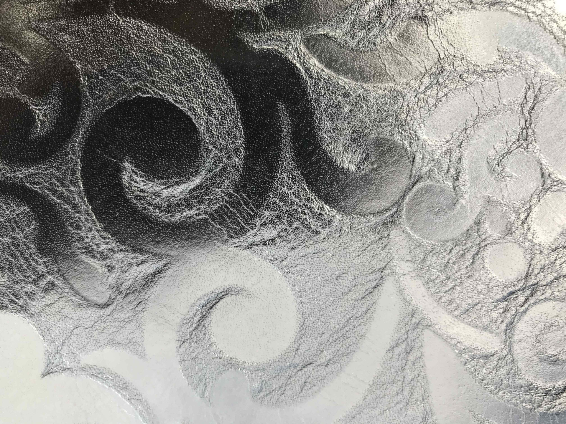 Pellame a vegetale colore Nero da pelletteria, pelle conciata 100% a vacchetta ingrassata al sego pieno fiore, stampata in rilievo con motivo floreale, colorata manualmente con tamponatura a spugna per ottenere un effetto vintage, per realizzare borse, zaini, cinture, braccialetti, selleria, fondine, portachiavi, incisione, articoli per animali e molto altro.