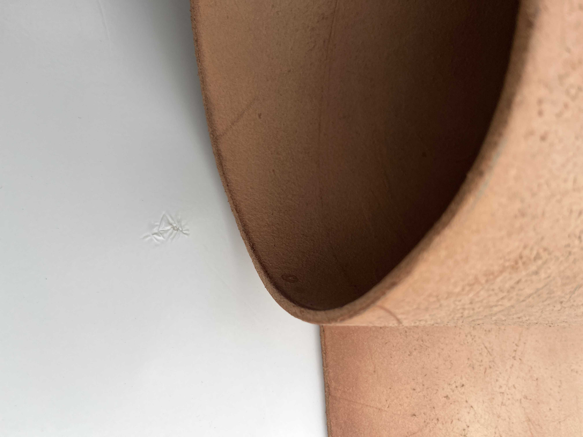 Pellame conciato 100% al vegetale naturale di alto spessore, segni e imperfezioni non sono da considerarsi difetti, ma caratteristiche naturali per calzolai e artigiani.