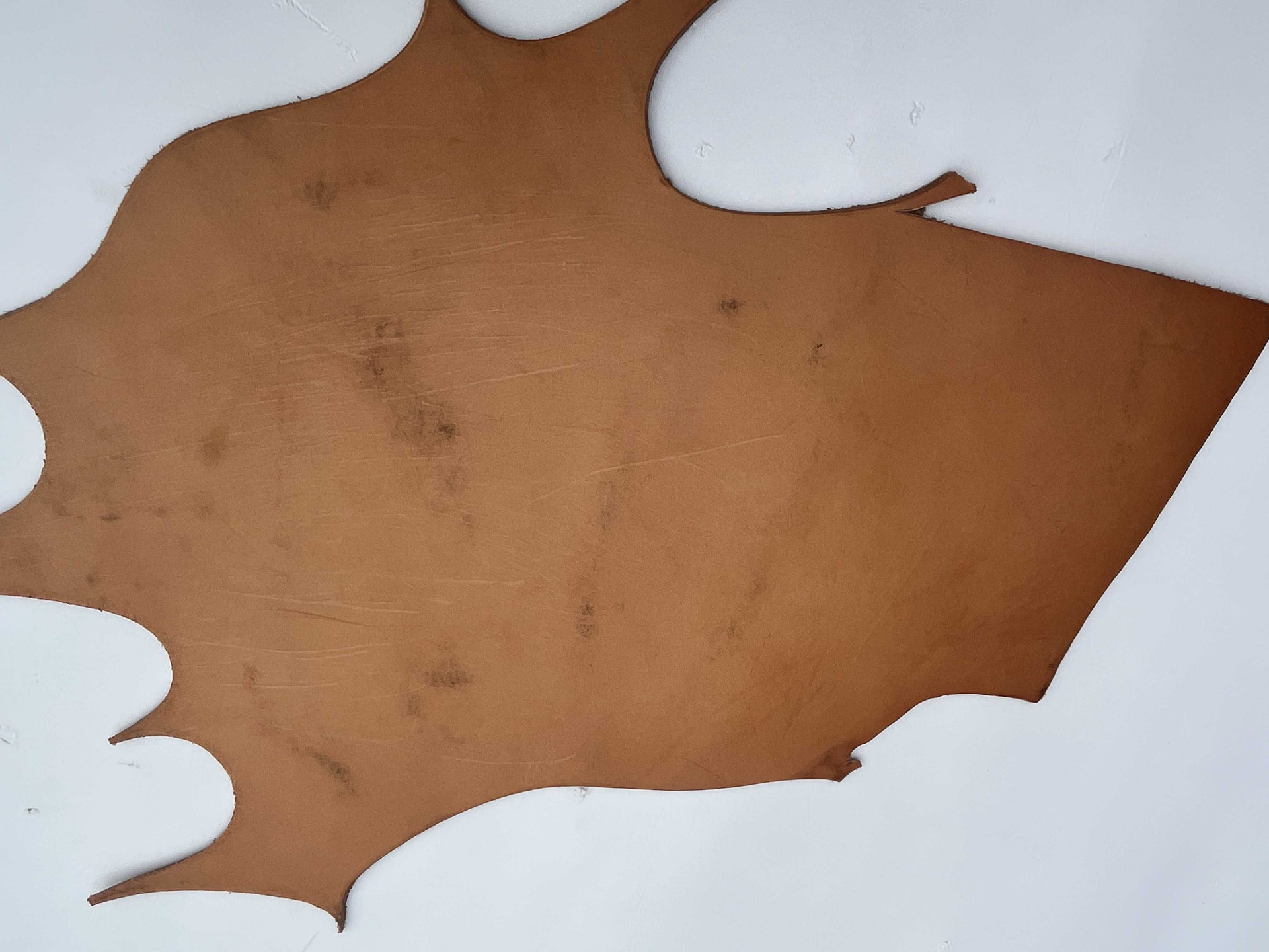 Scampolo di cuoio conciato 100% al vegetale di alto spessore senza nessuna correzione in rifinizione, segni e imperfezioni non sono da considerarsi difetti, ma caratteristiche naturali per calzolai e artigiani.