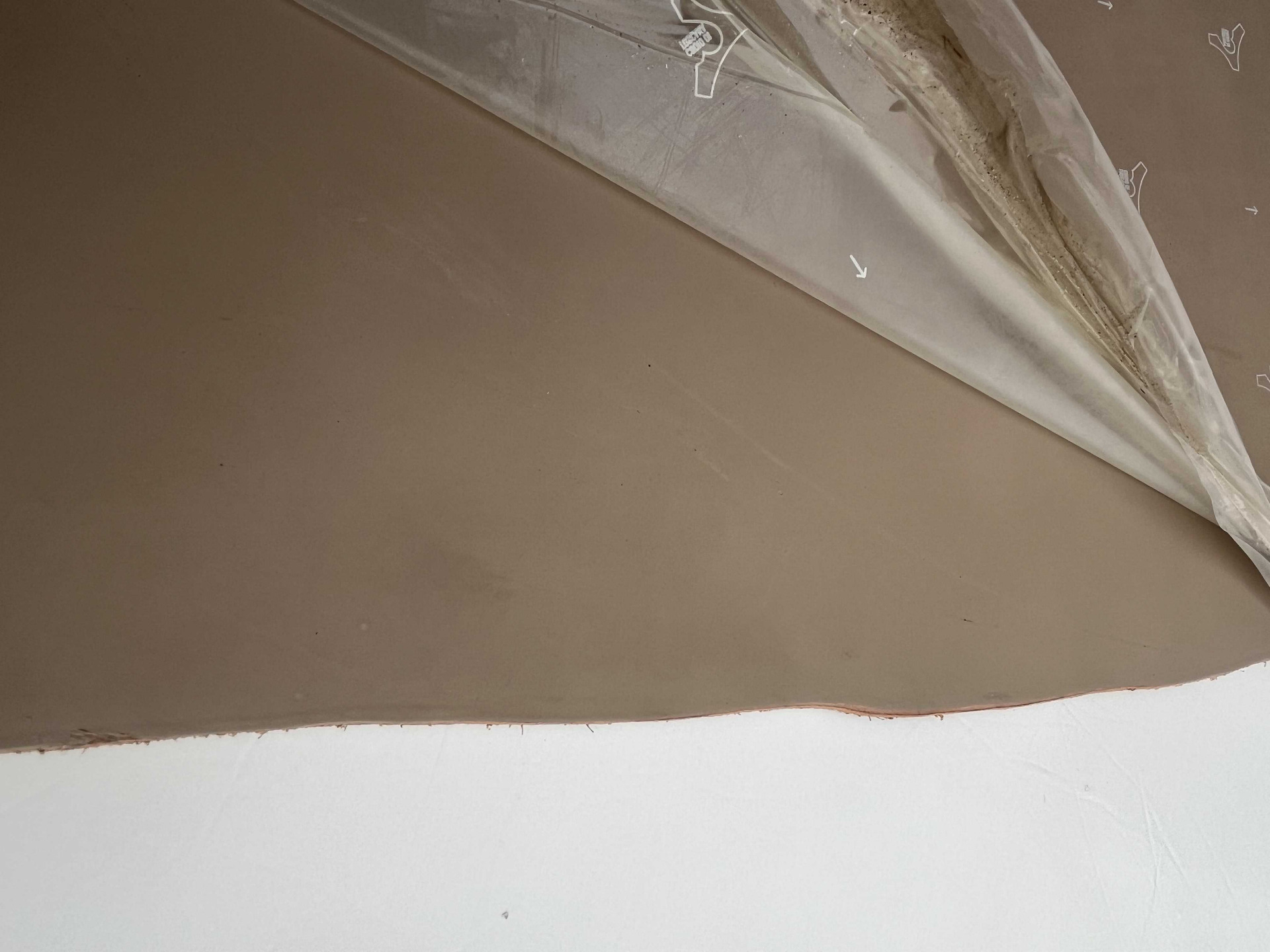 Scampolo di Groppone pomiciato conciato 100% al vegetale di alto spessore macello nazionale, liscio con zero imperfezioni, pellicola trasparente di protezione per calzolai e artigiani.