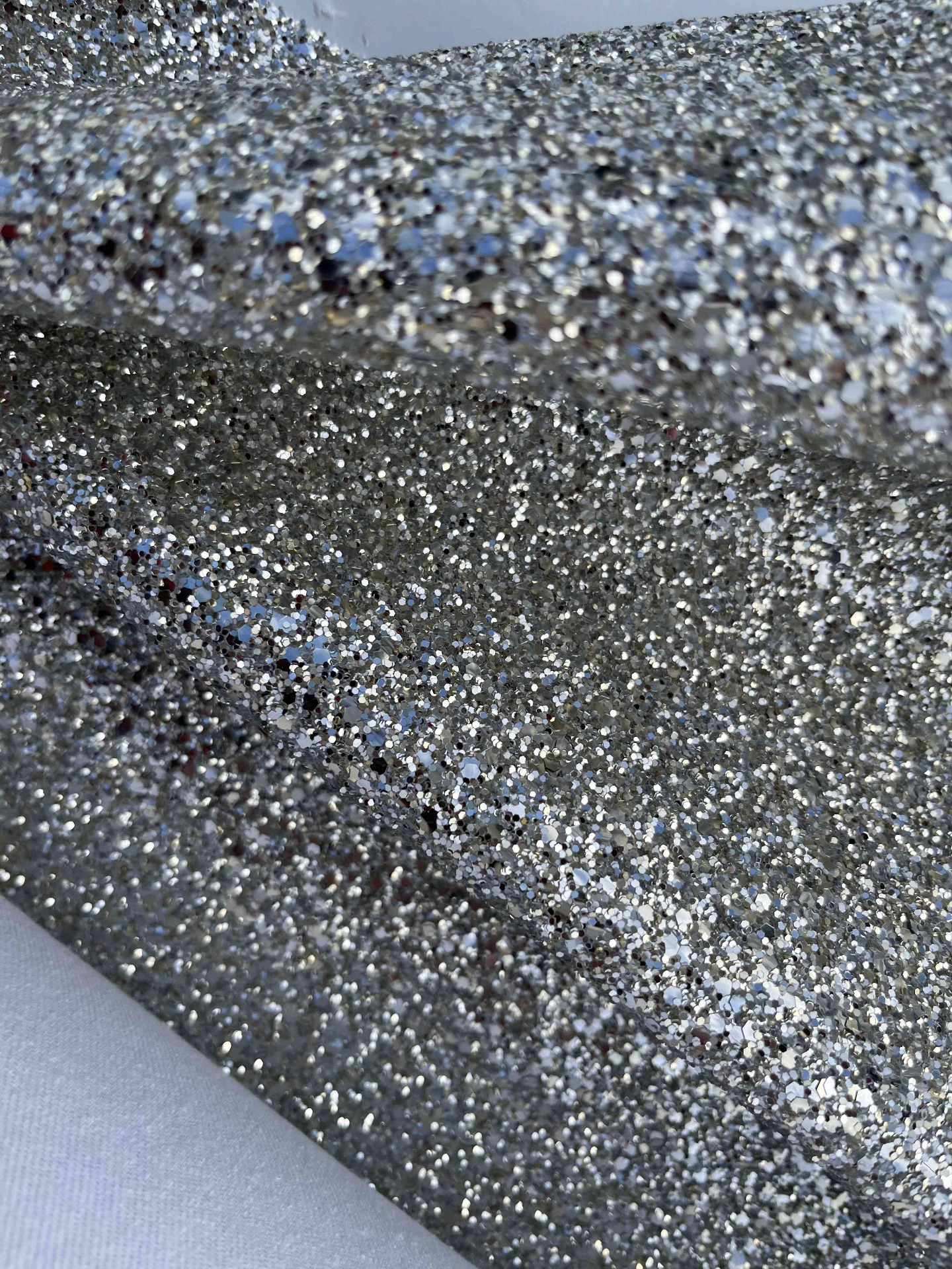 Tessuto cotone spalmato con glitter di poliestere colorato mediante resina acrilica, grana grossa, per il settore della pelletteria e calzatura, borse, pochette, ballerine, sandali, infradito e molto altro semirigida ideale per borse, articoli di pelletteria e molto altro.