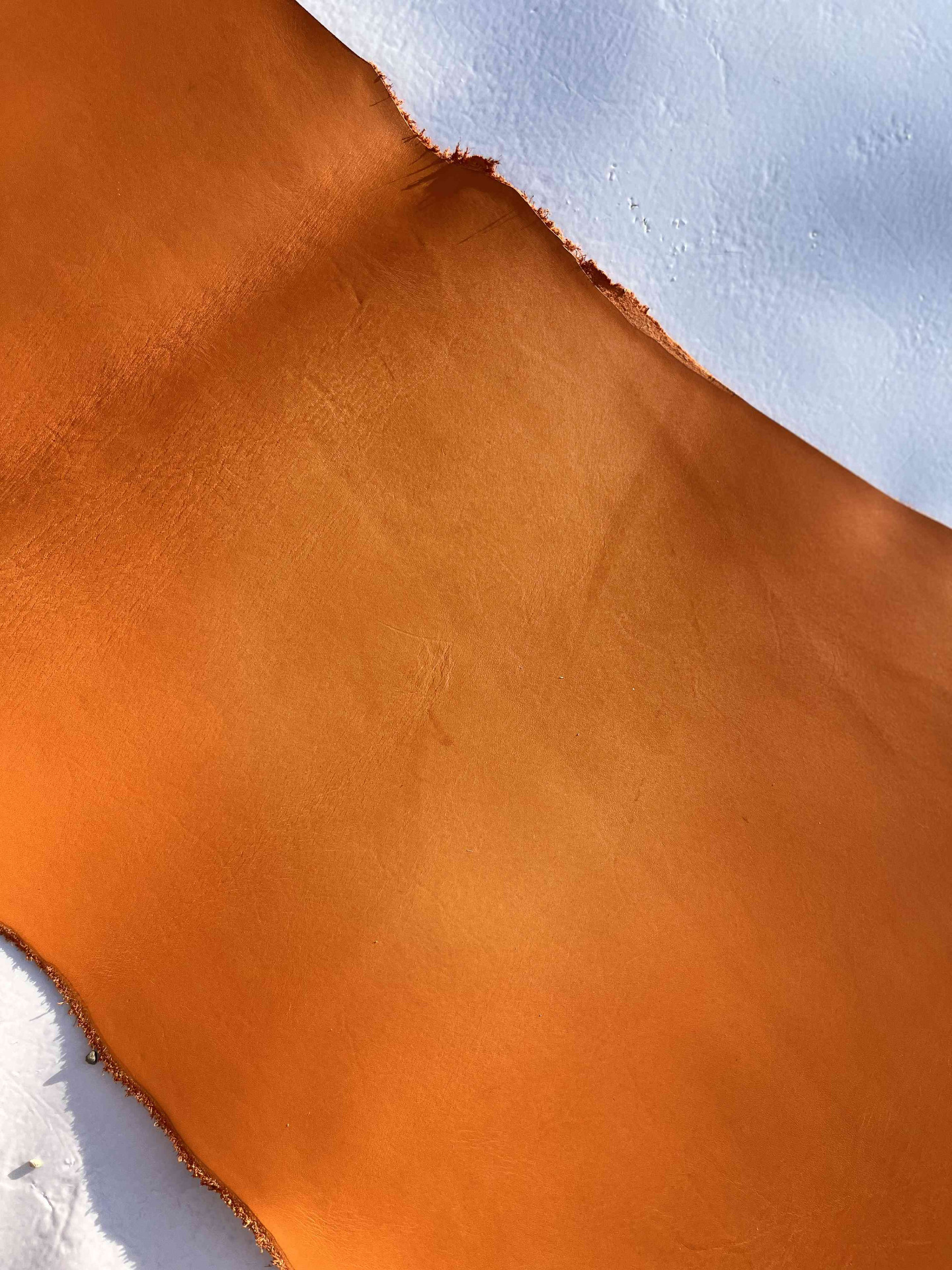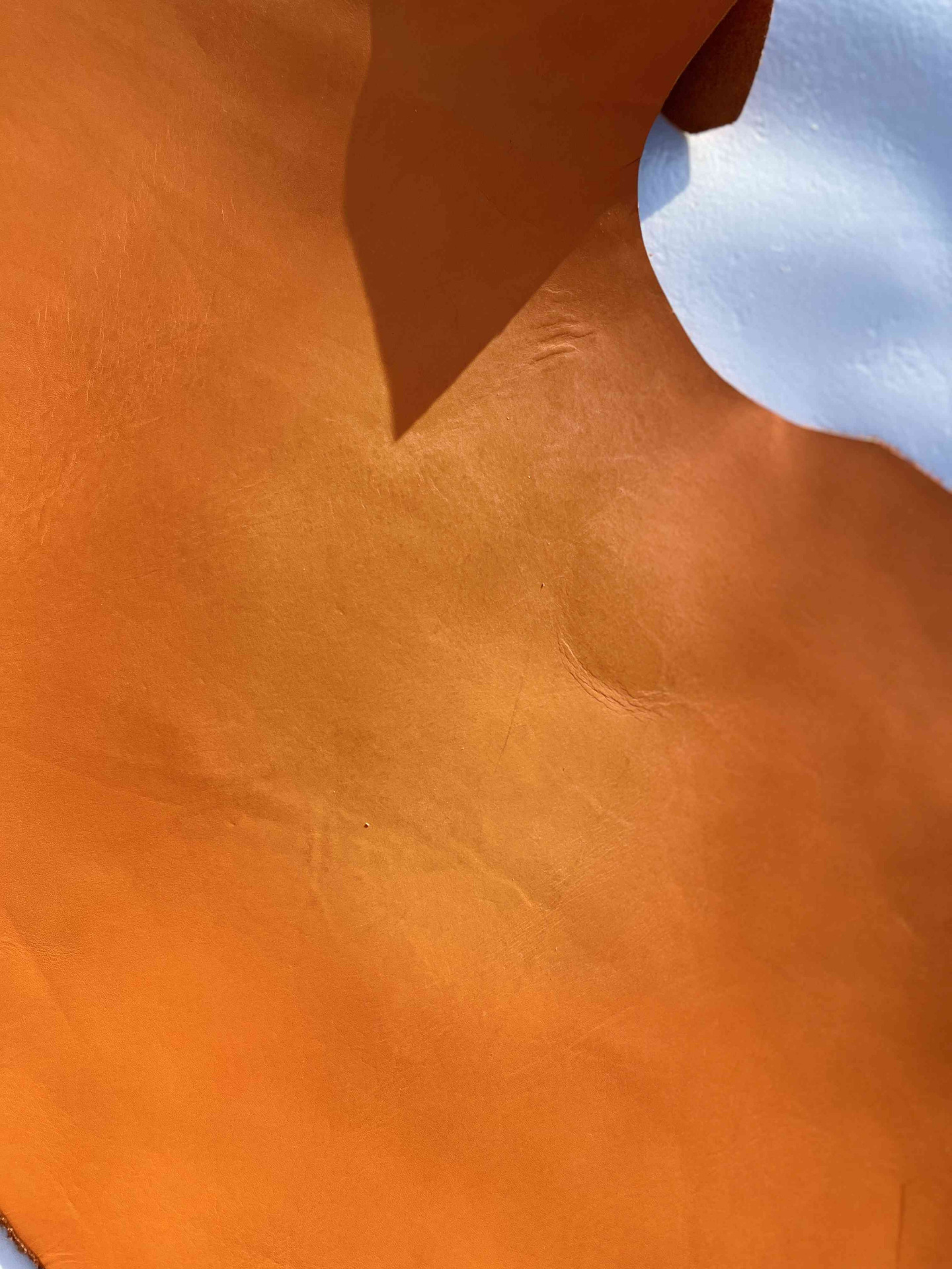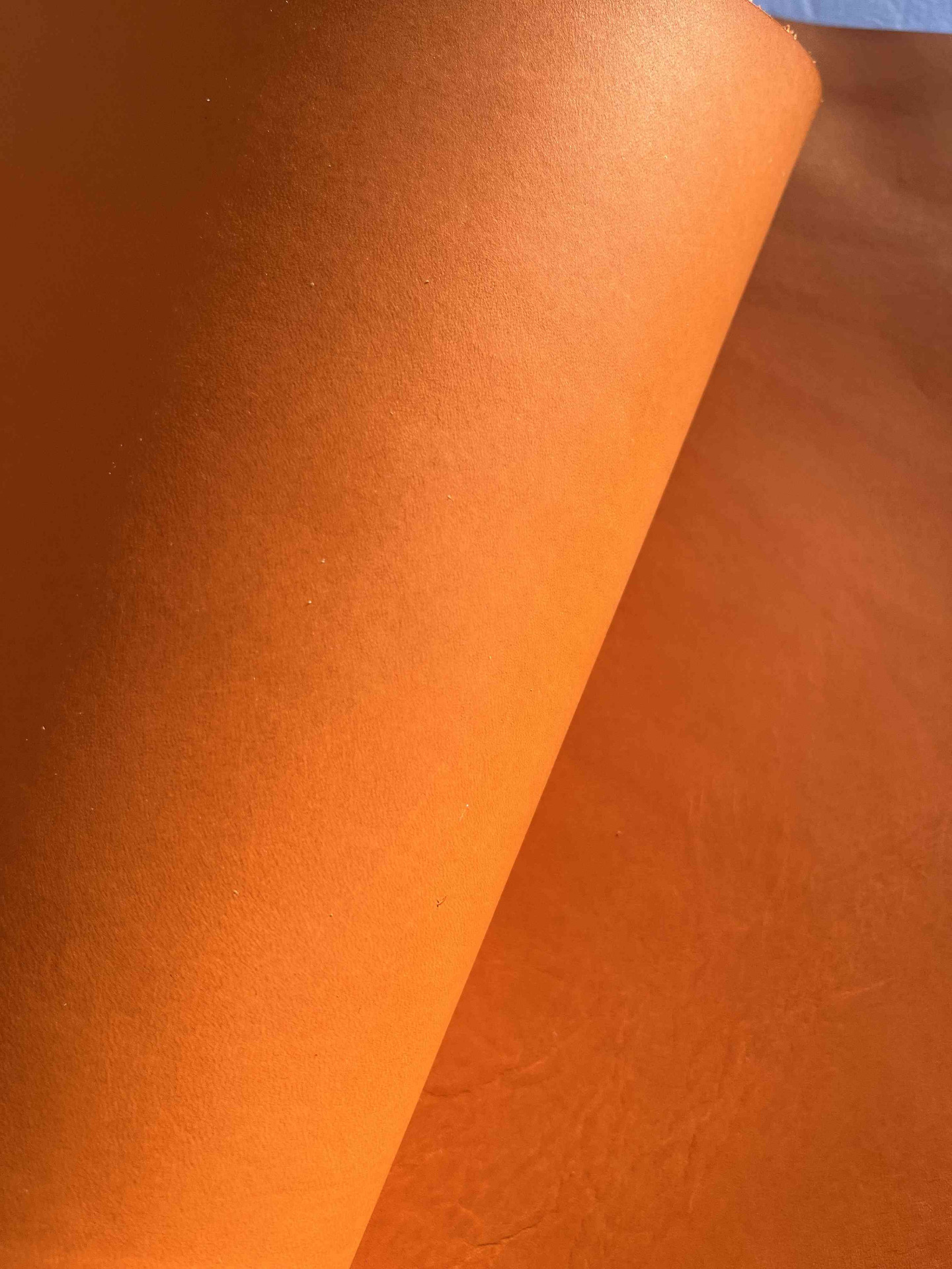 Pellame concia 100% a vegetale liscio colore Arancione ingrasso sintetico, pieno fiore, segni e imperfezioni non sono da considerarsi difetti, ma caratteristiche naturali.