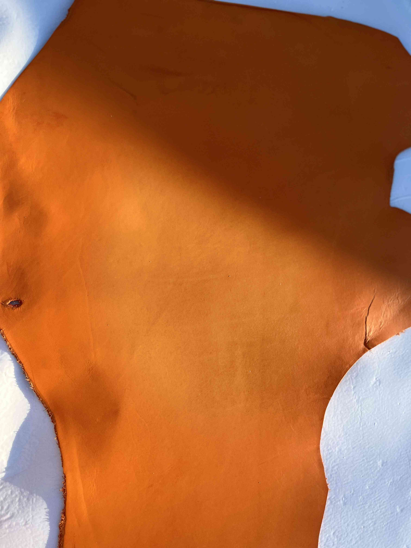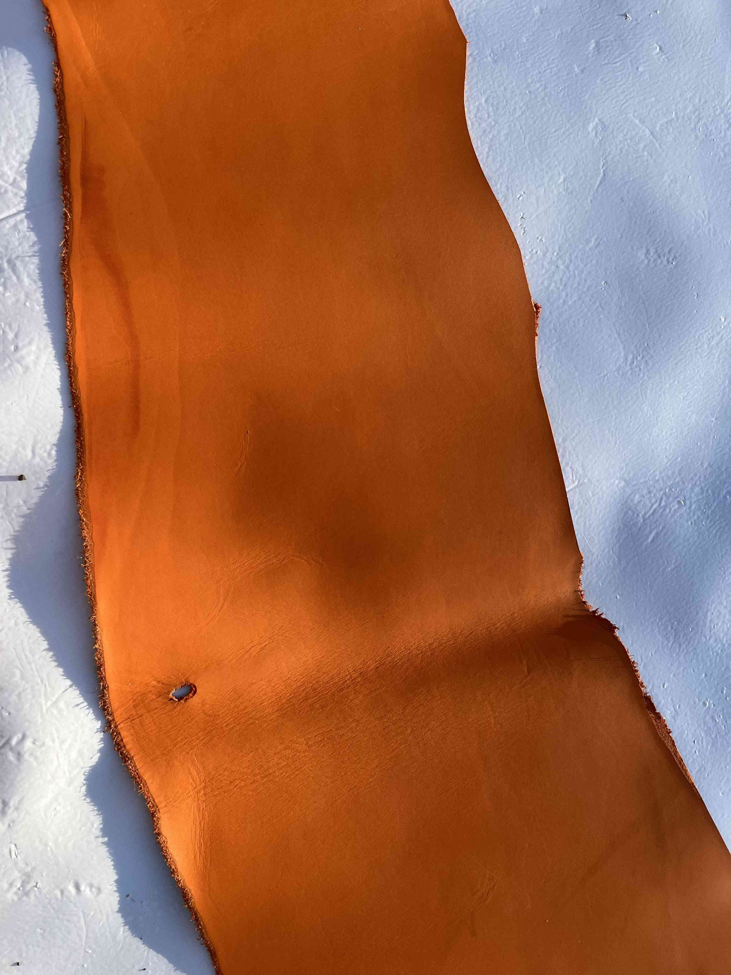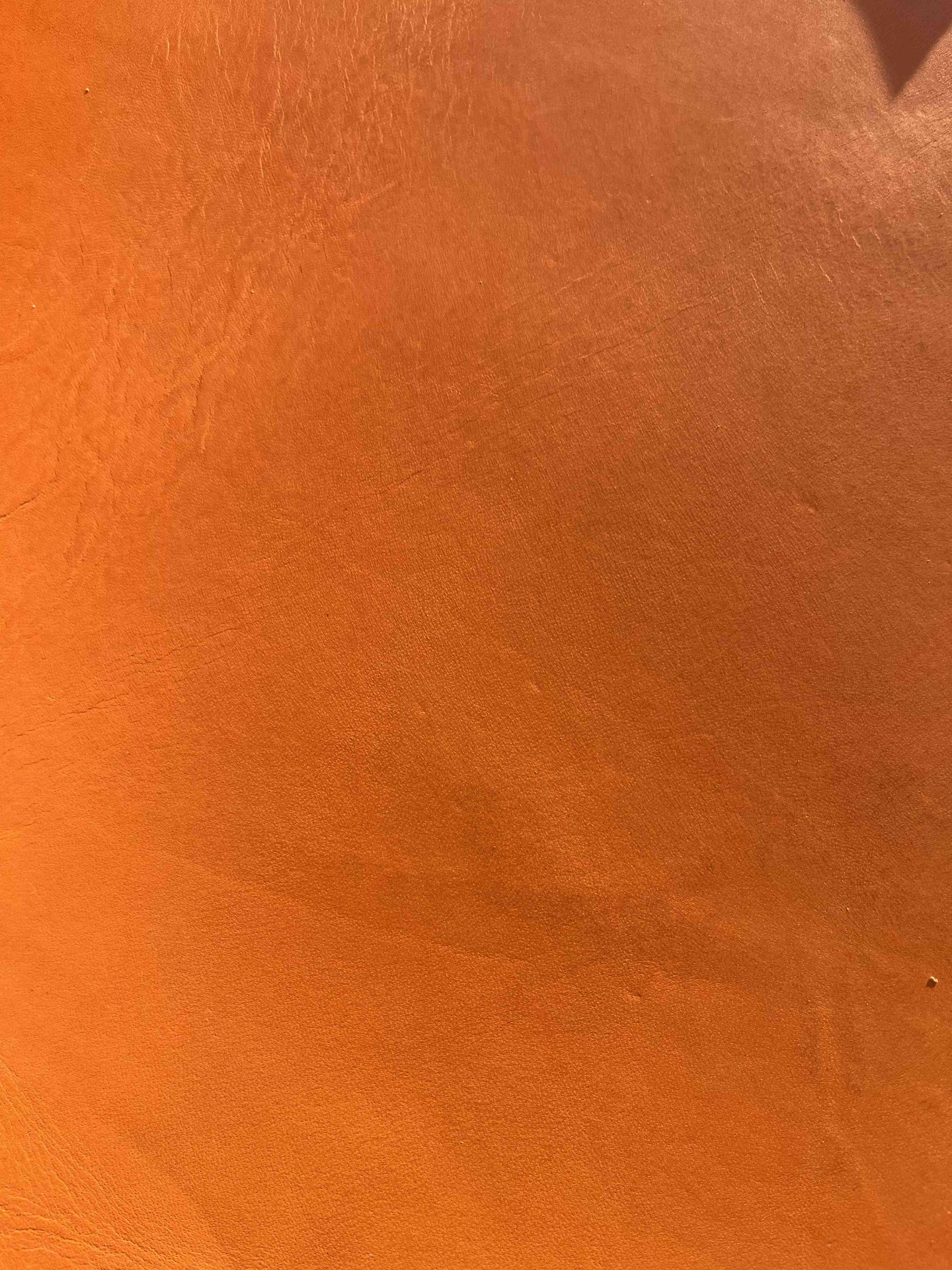 Pellame concia 100% a vegetale liscio colore Arancione ingrasso sintetico, pieno fiore, segni e imperfezioni non sono da considerarsi difetti, ma caratteristiche naturali.
