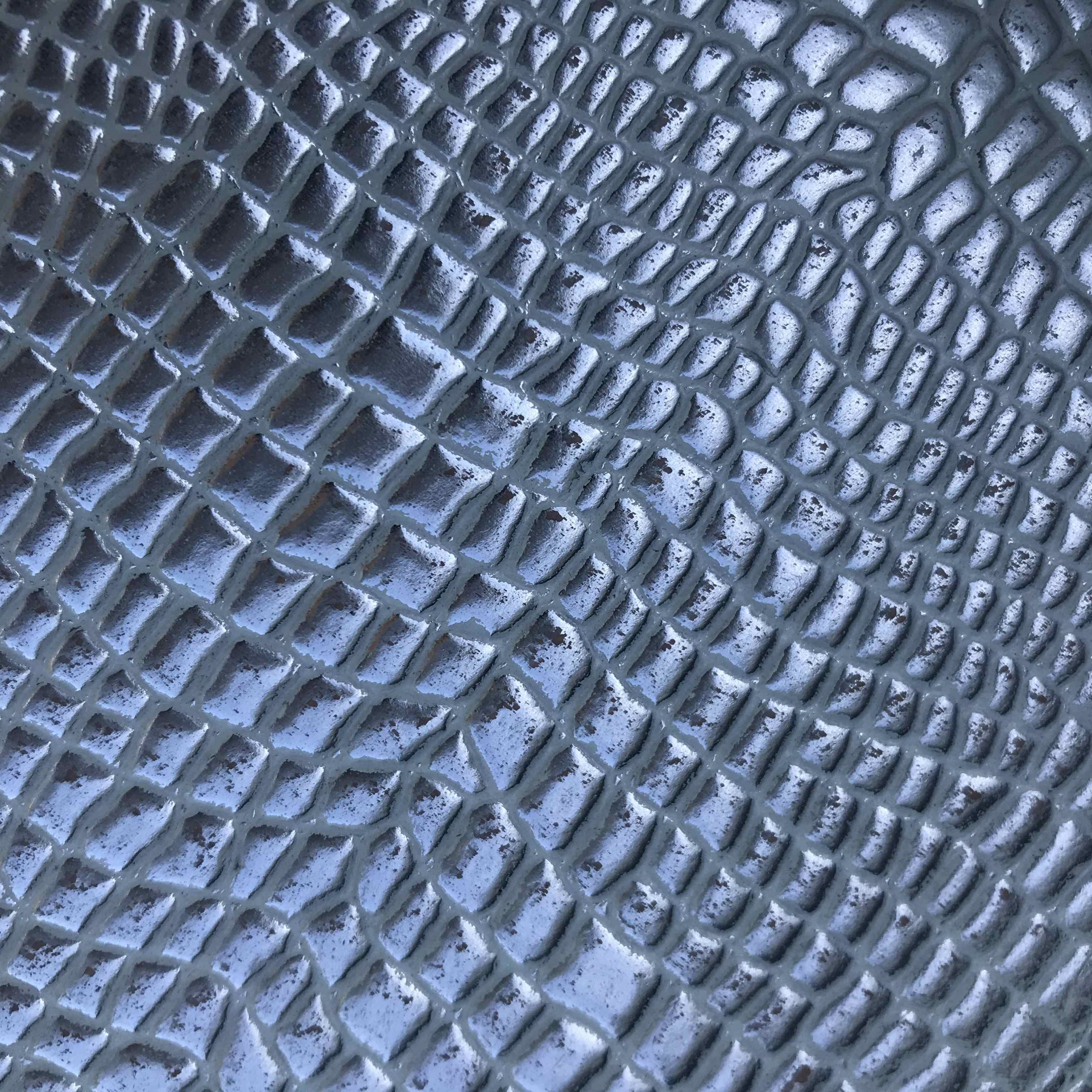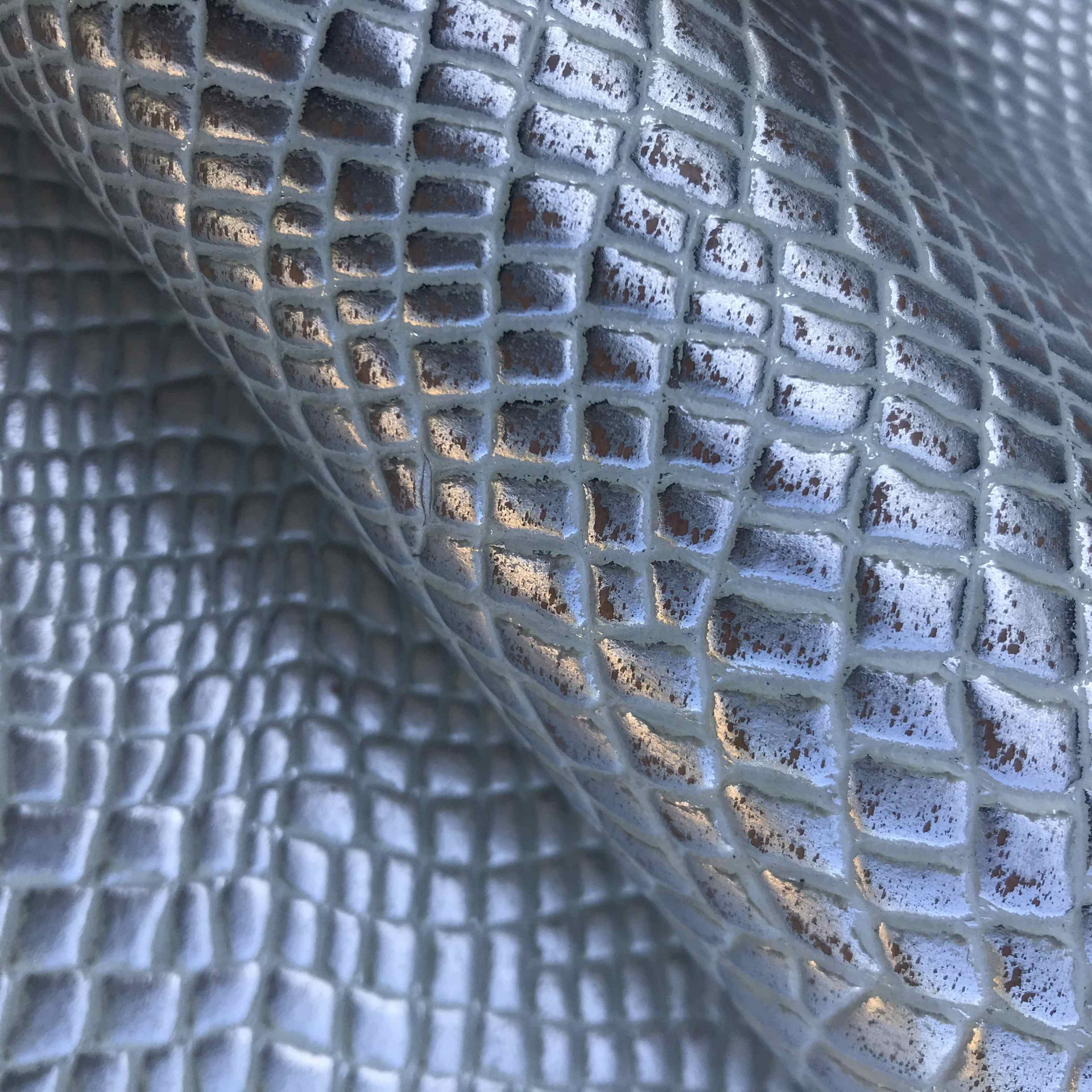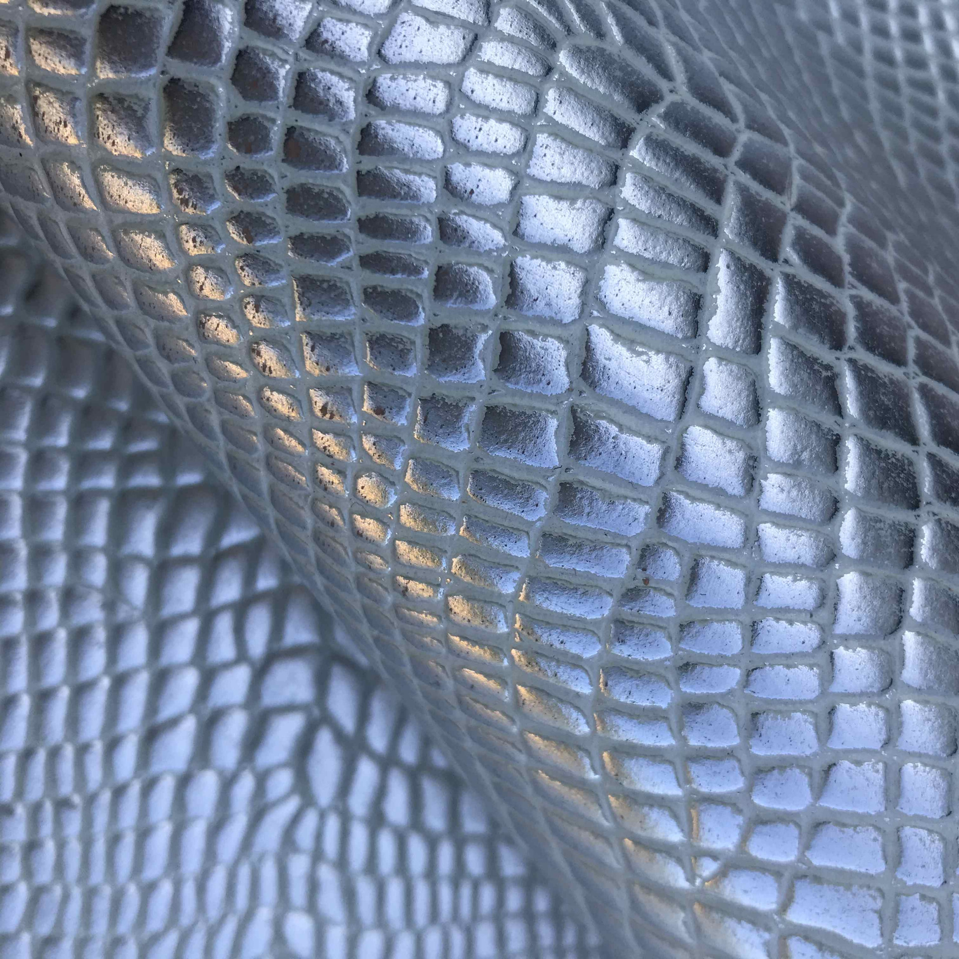 Spalla conciata a vegetale stampata cocco su fondo naturale di colore argento vintage, pellame semirigido di alta qualità, caratteristiche per la produzione di pelletteria e calzature, cinture, borse, cartelle, tracolle, zaini, braccialetti, svuotatasche, fondine, portachiavi, sandali, infradito e molto altro.