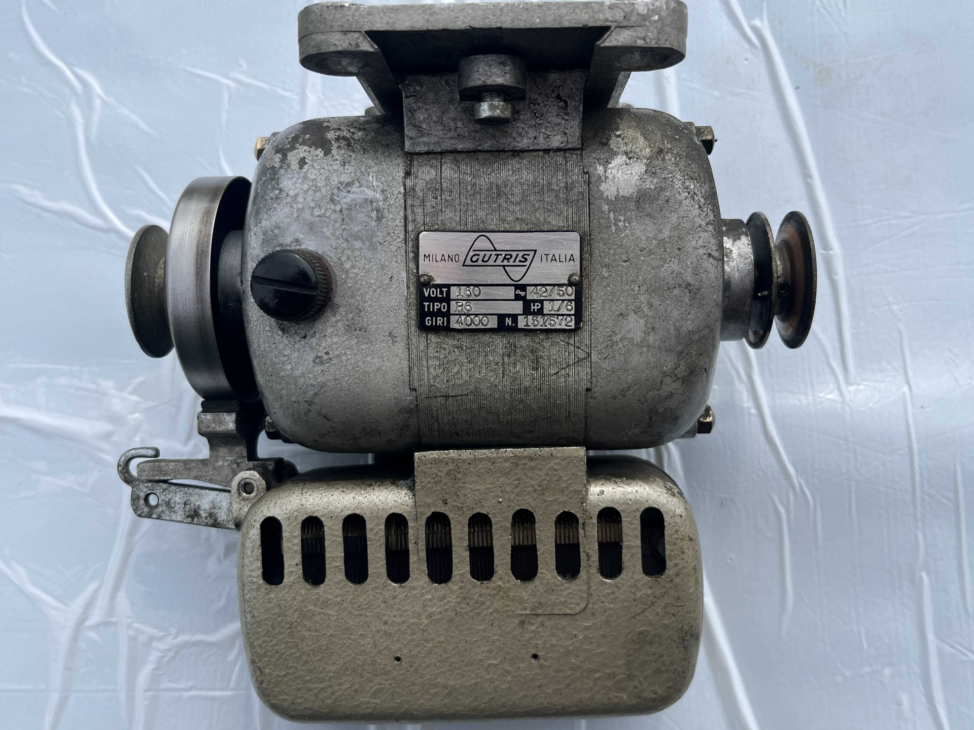 Motore usato della leggendaria Gutris per macchine da Cucire vintage anni 60 freno/frizione in condizioni buone, perfettamente funzionante, completo di puleggia, equipaggiava macchine Bernina e Singer.