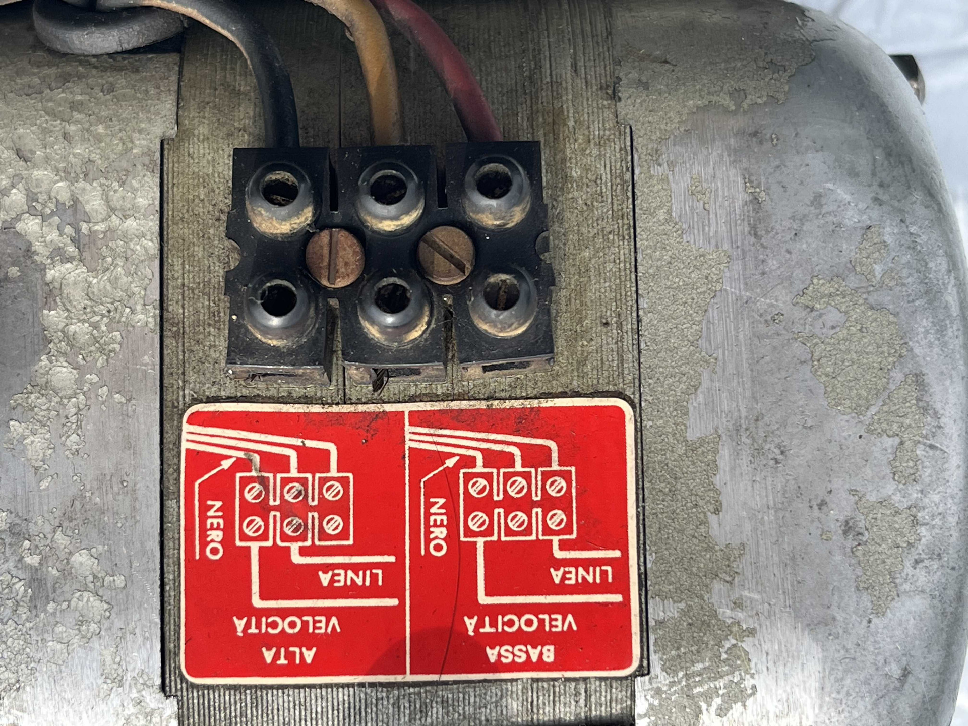 Attenzione motore nativo con alimentazione Volt 160 risalente anni 60 quindi necessita di un trasformatore acquistabile anche in rete, forniamo gratuitamente quello con cui ha lavorato in questi anni.