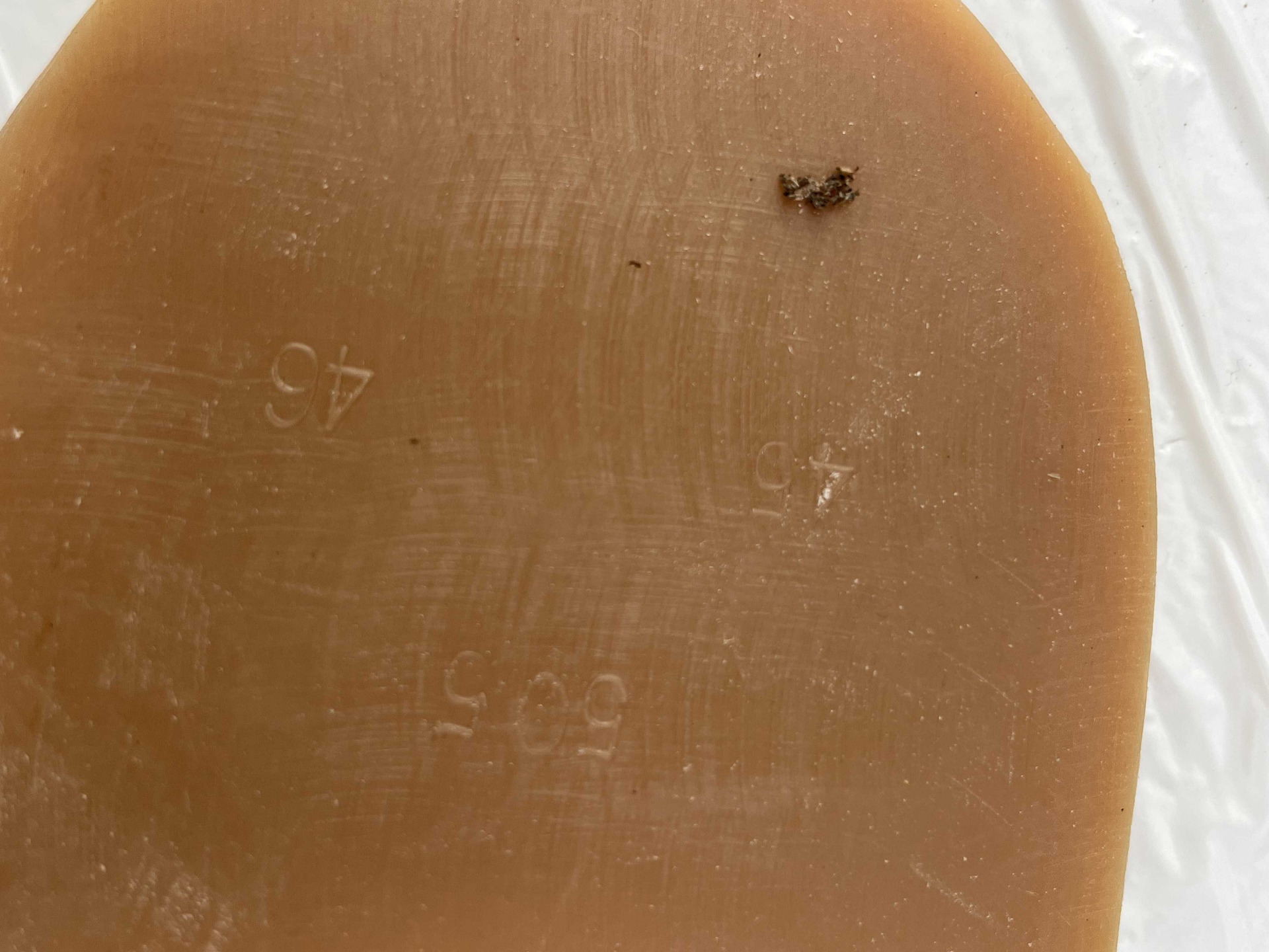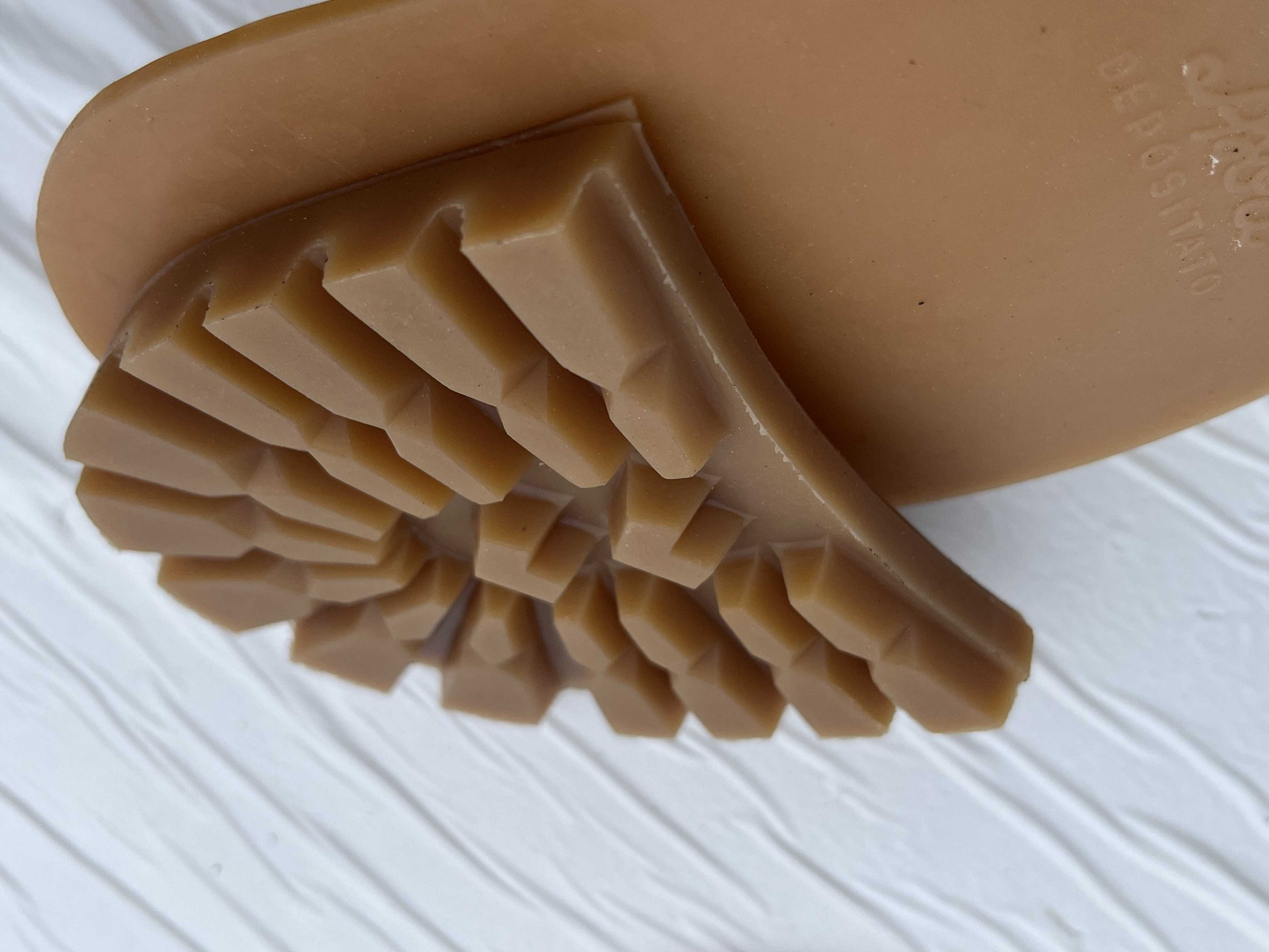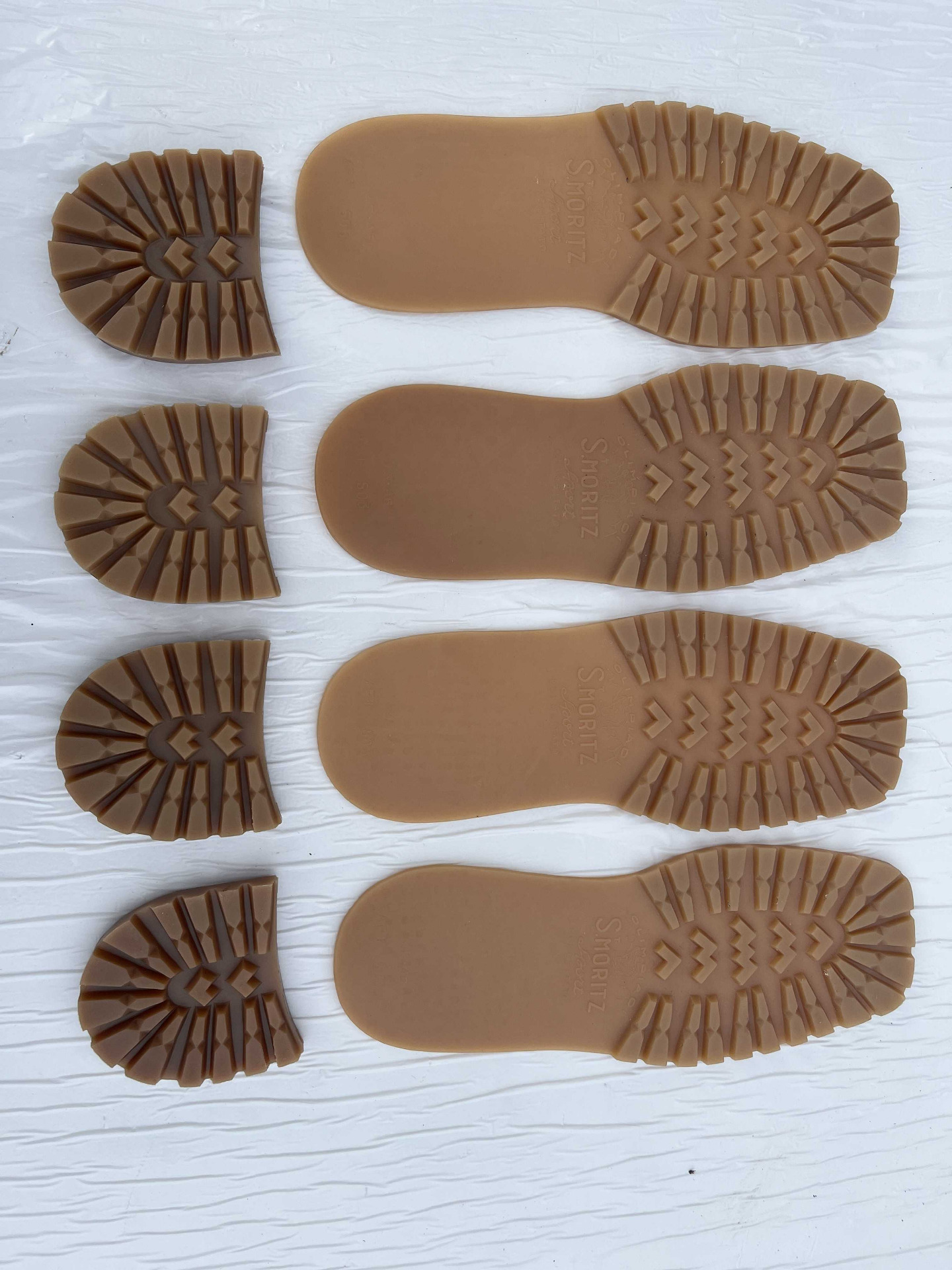 Suole in vera gomma disegno classico carrarmato, taglia 45/46 corredate di tacco, attenzione presenza di logo.