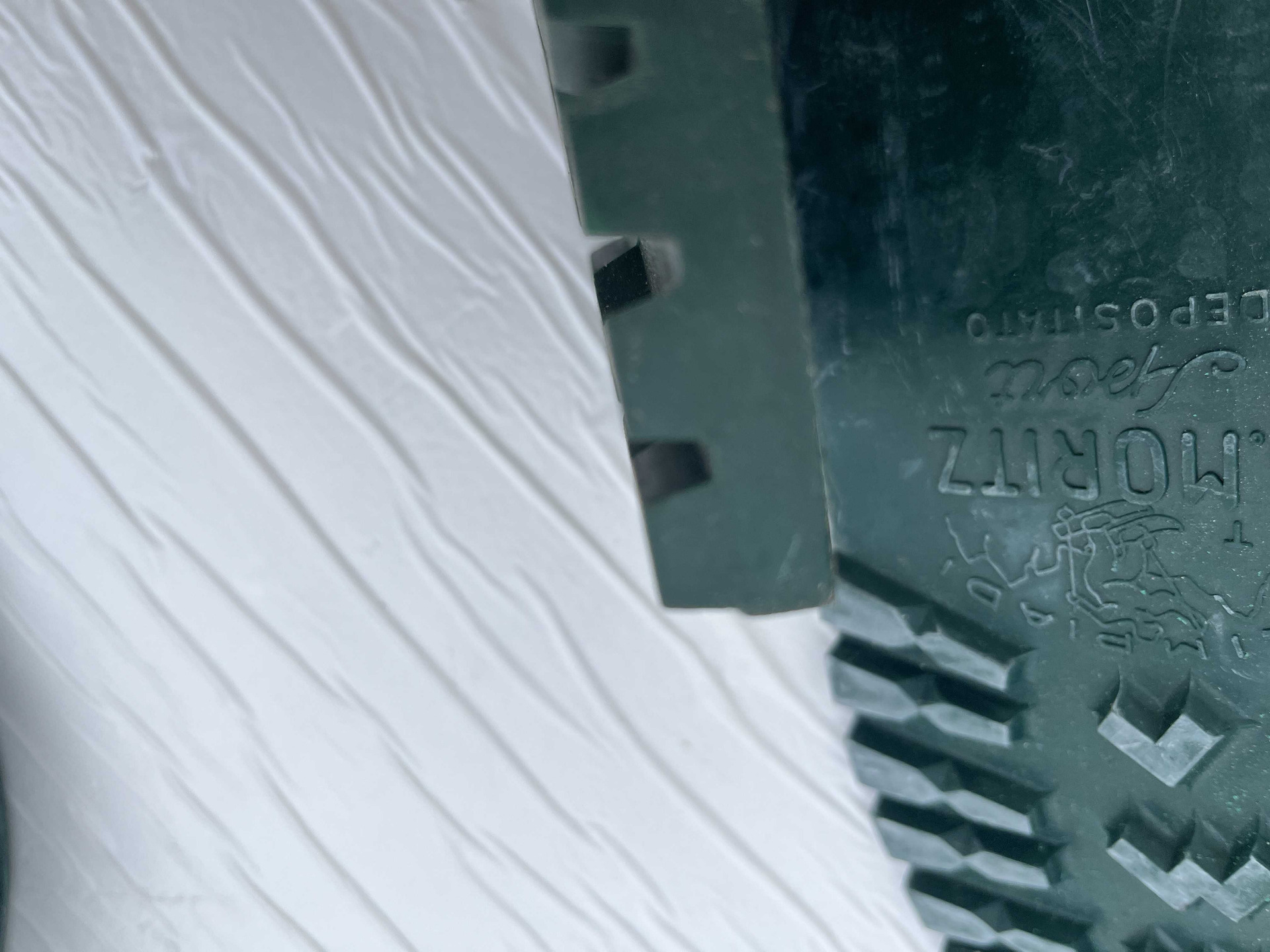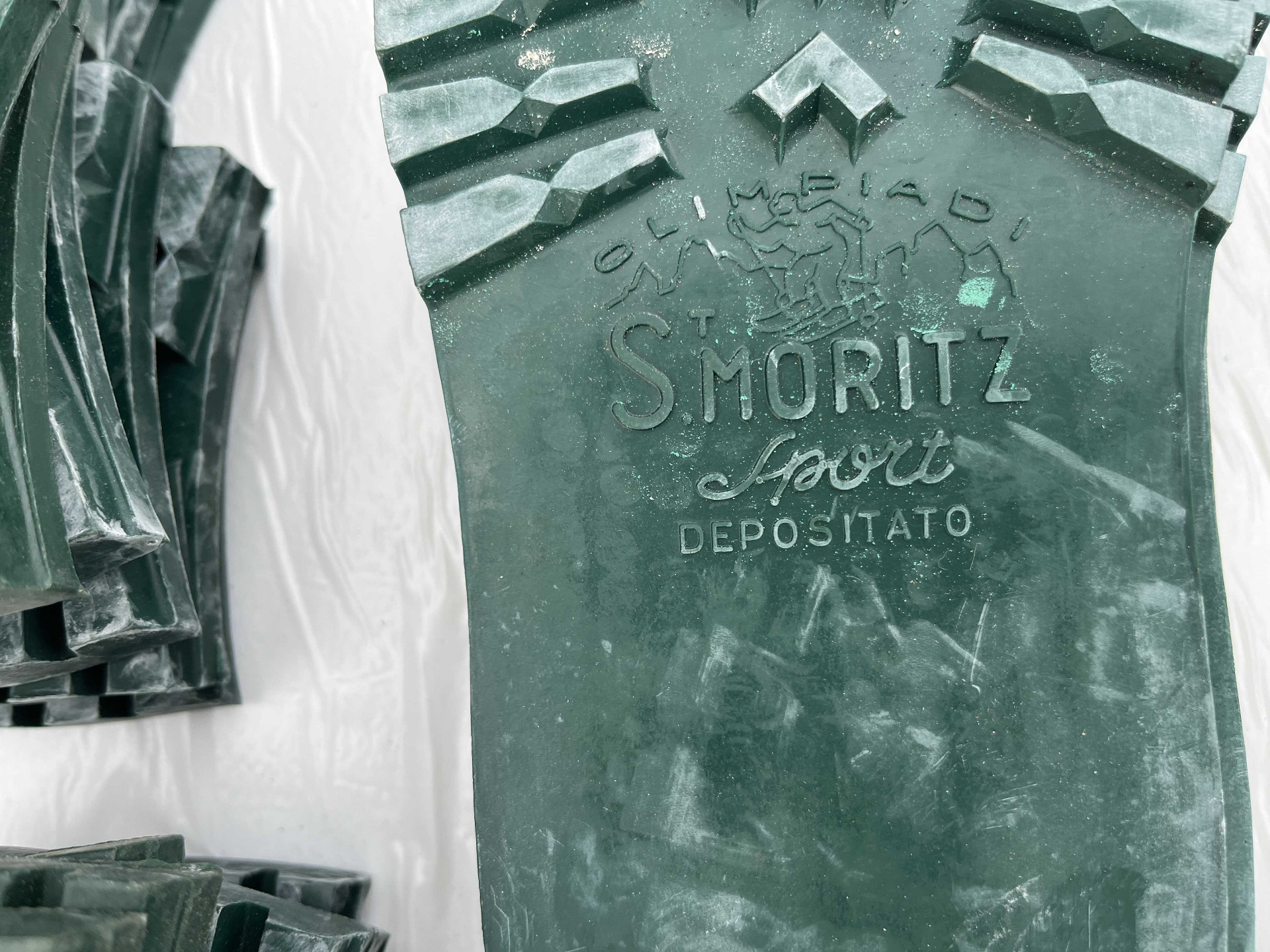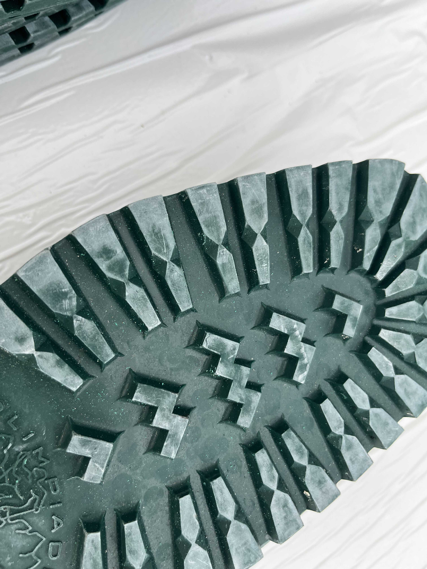 Suole in vera gomma disegno classico carrarmato di colore verde, taglia 41/42 corredate di tacco nella taglia 43/44, attenzione presenza di logo.
