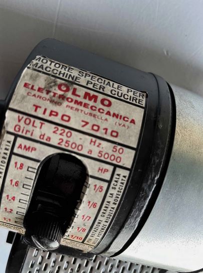 Motore usato per macchina da Cucire monofase della Olmo freno/frizione in condizioni eccellenti, modello rarissimo e con pochissime ore di lavoro, perfettamente funzionante, completo di staffa, puleggia e cavo di collegamento alla rete, adattabile su qualsiasi macchina da cucire lineare, Bernina, Necchi, Pfaff, Rimoldi etc.
