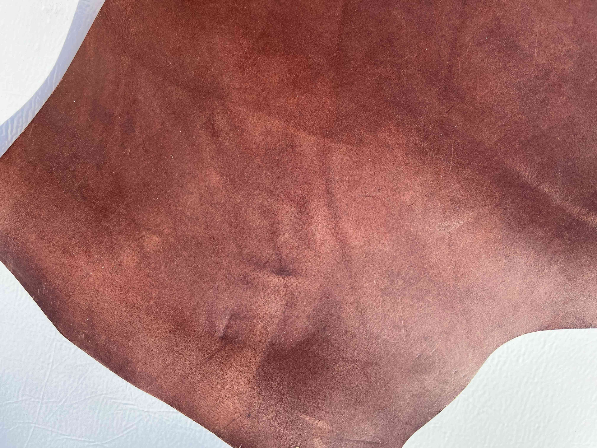 Pellame conciato 100% a vegetale liscio effetto Pull up, ingrassato al sego, pieno fiore anilina pura di botte senza nessuna correzione in rifinizione, mano morbida e pastosa ideale per la produzione piccola pelletteria artigianale, portachiavi, svuotatasche, collari, fondine, cinturini, selleria, nautica, articoli per animali, legatoria, incisione e molto altro.