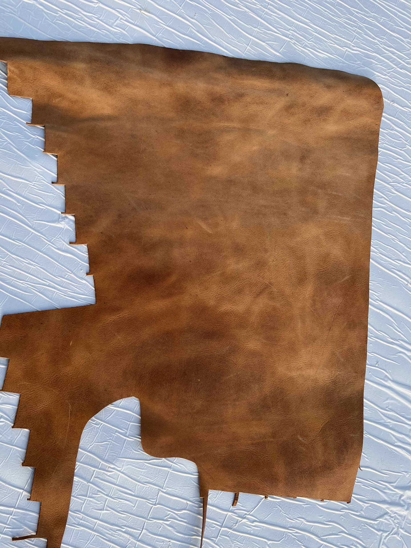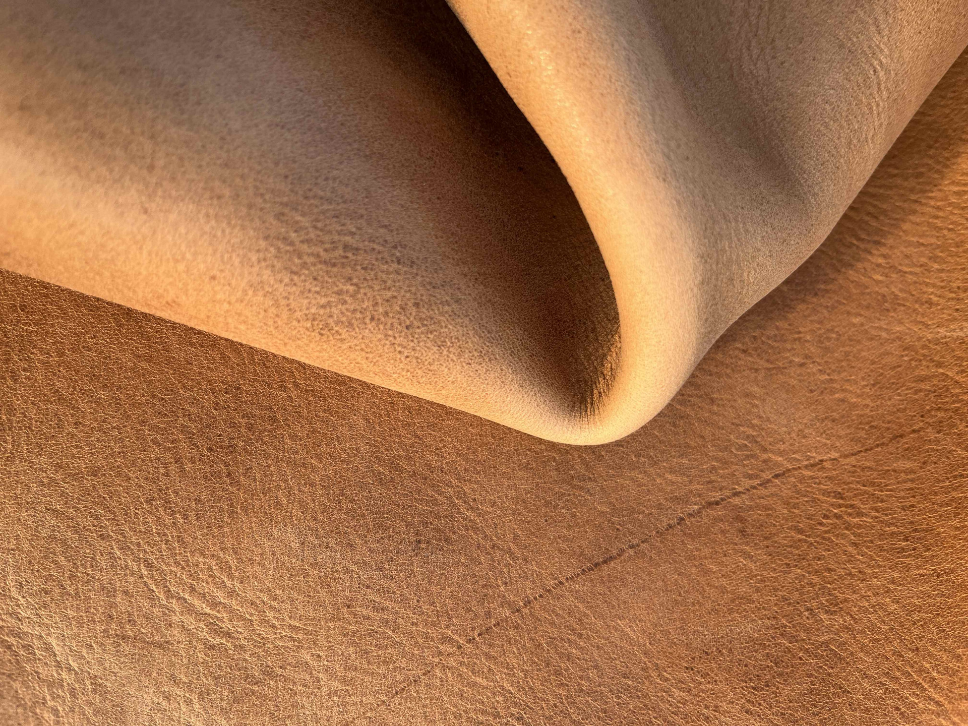 Pellame conciato 100% a vegetale liscio effetto Crazy Horse (Pull up), ingrassato al sego, pieno fiore anilina pura di botte senza nessuna correzione in rifinizione, mano morbida e pastosa ideale per la produzione piccola pelletteria artigianale, portachiavi, svuotatasche, collari, fondine, cinturini, selleria, nautica, articoli per animali, legatoria, incisione e molto altro.