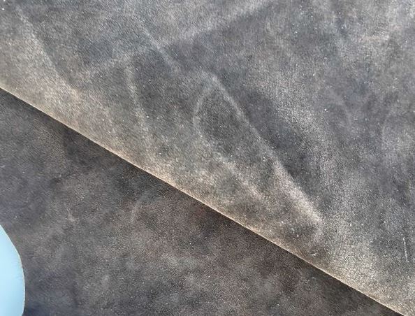 Pellame scamosciato di colore Testa di Moro finitura a olio con aspetto retrò, ideale per progetti di pelletteria, borse, portafogli, portachiavi, braccialetti, articoli per animali e molto altro.