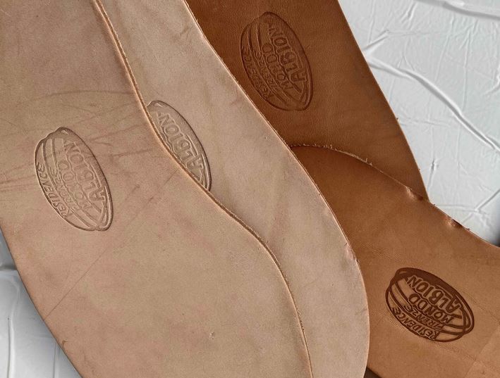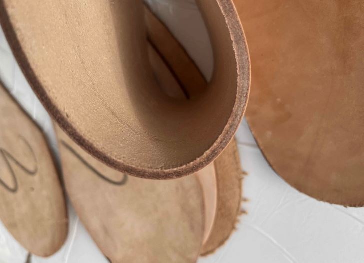 Suola in cuoio tranciate grezze da 5,0 mm di spessore lunghezza 30 centimetri, rimanenza di produzione.