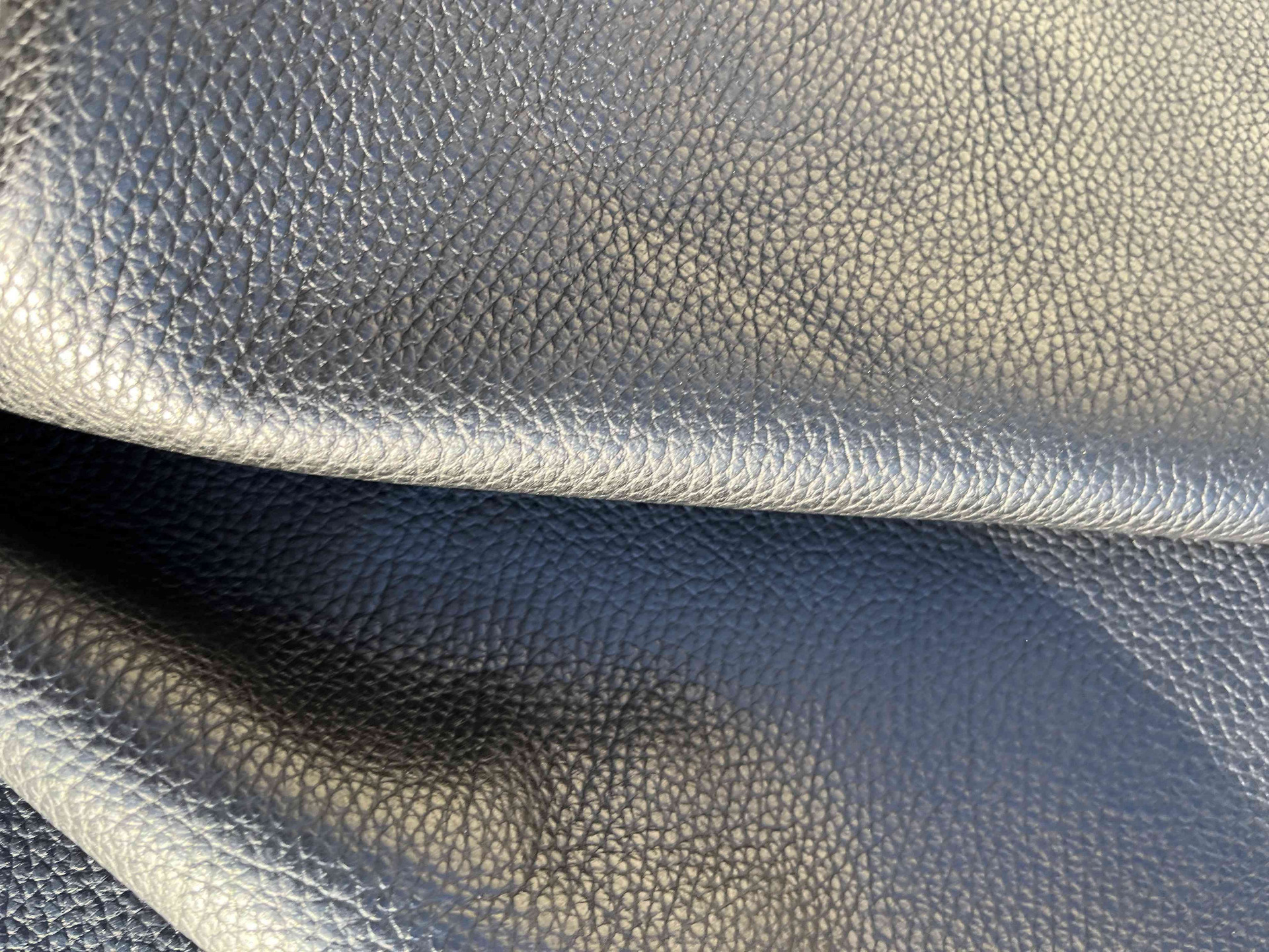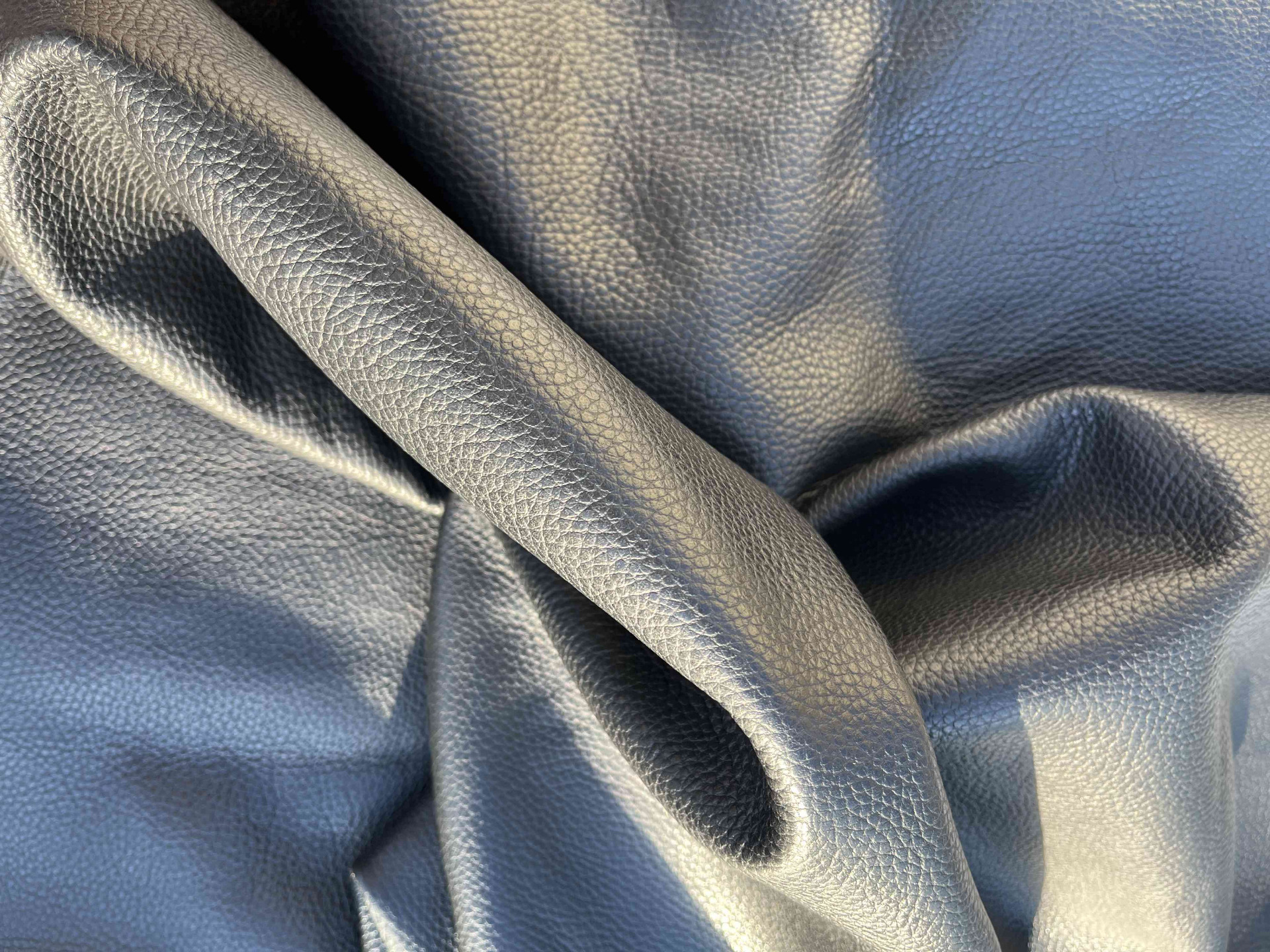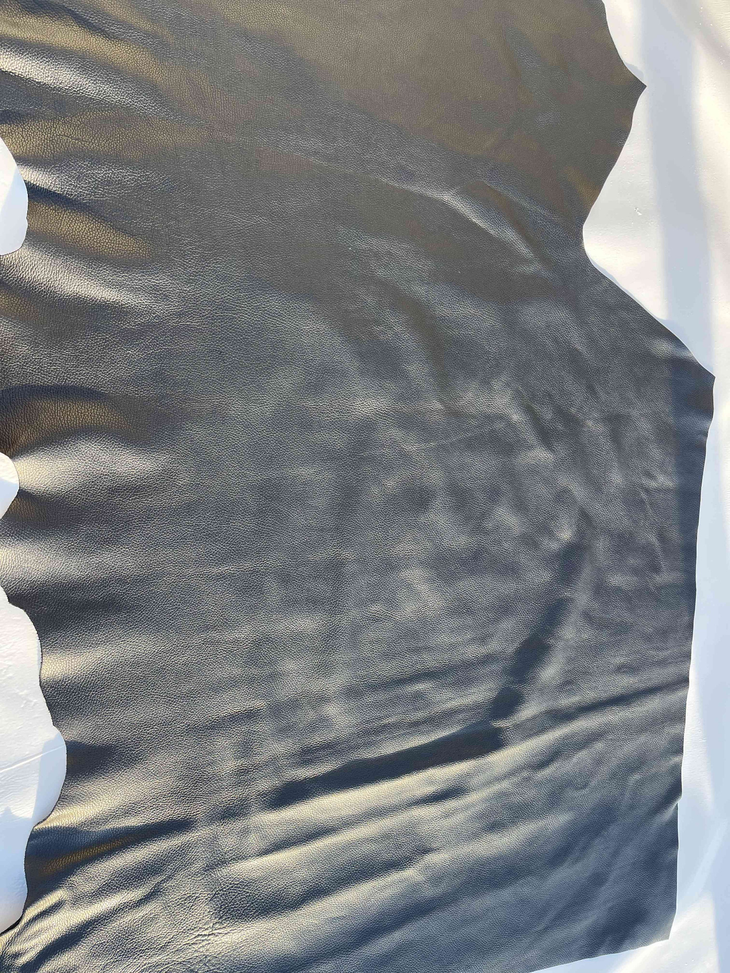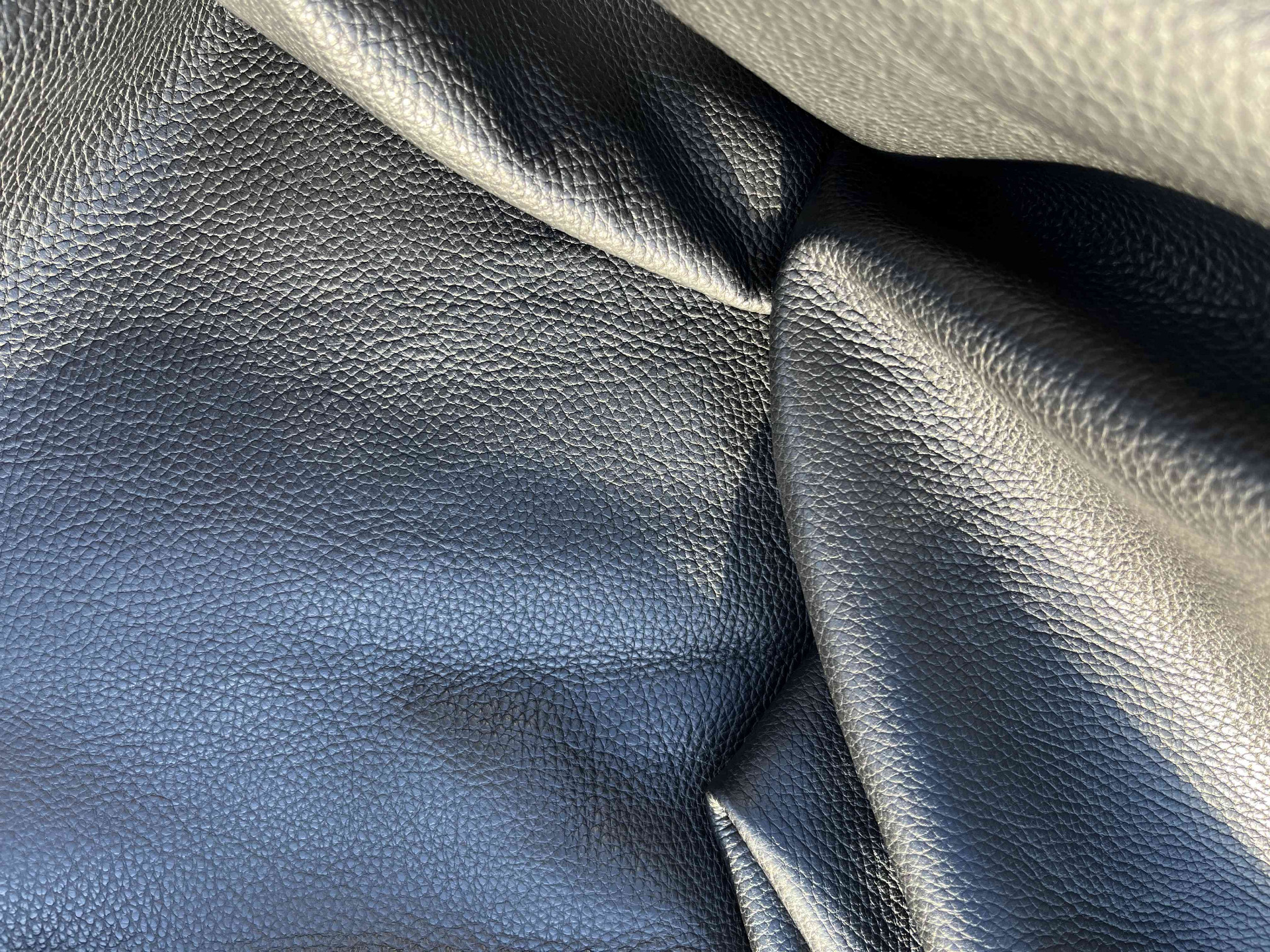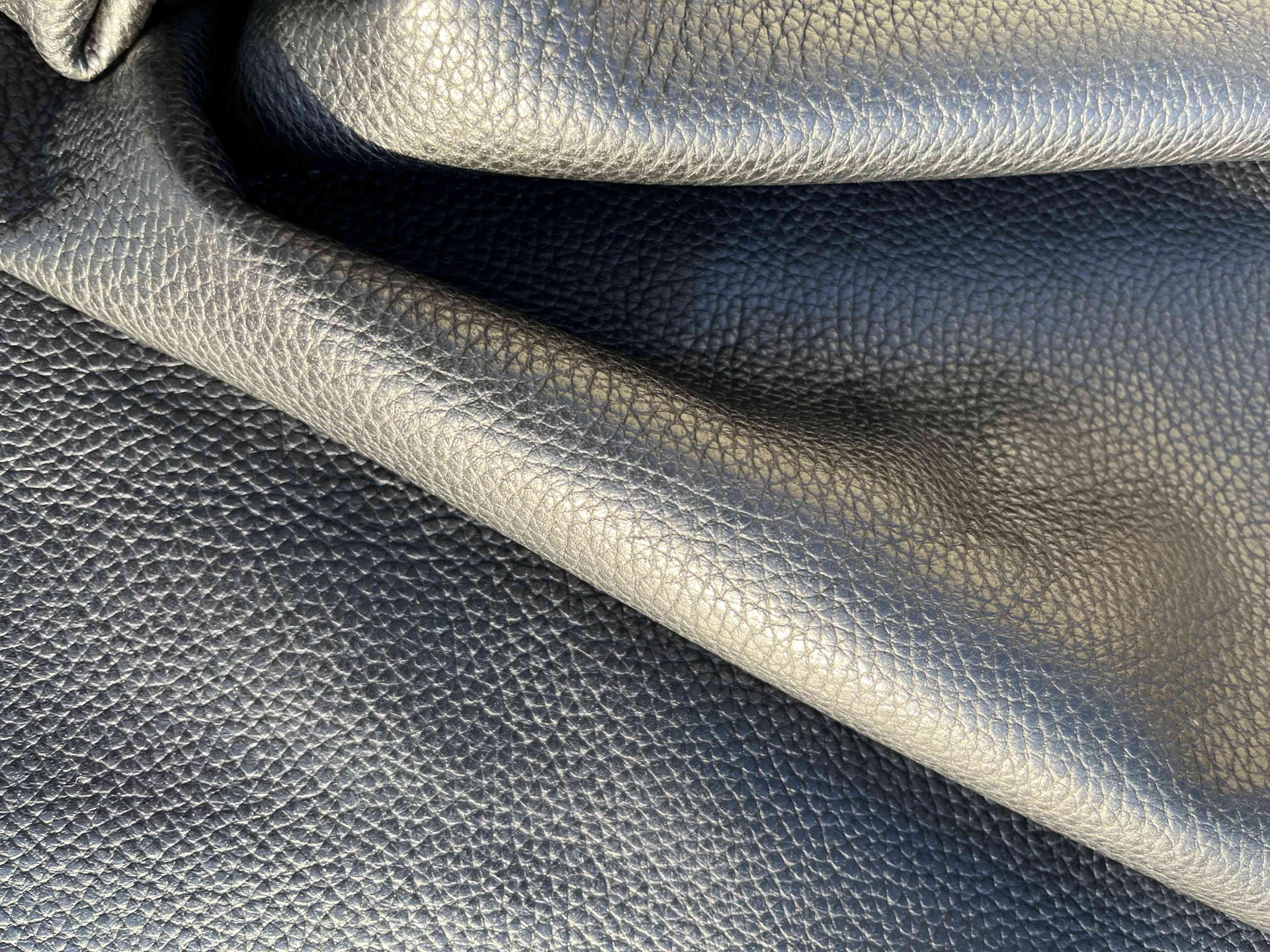 Pellame di vitello bottalato nero con una mano piena e morbida, grana