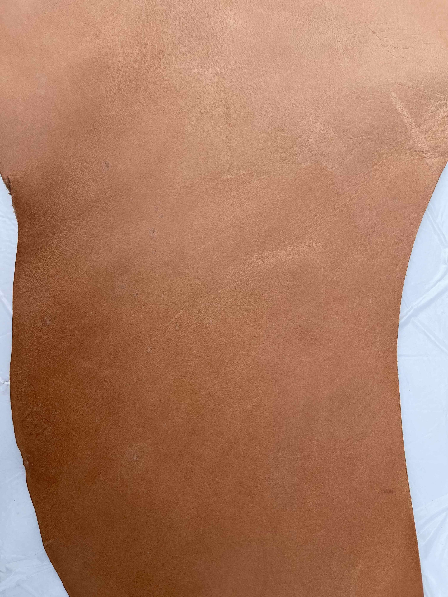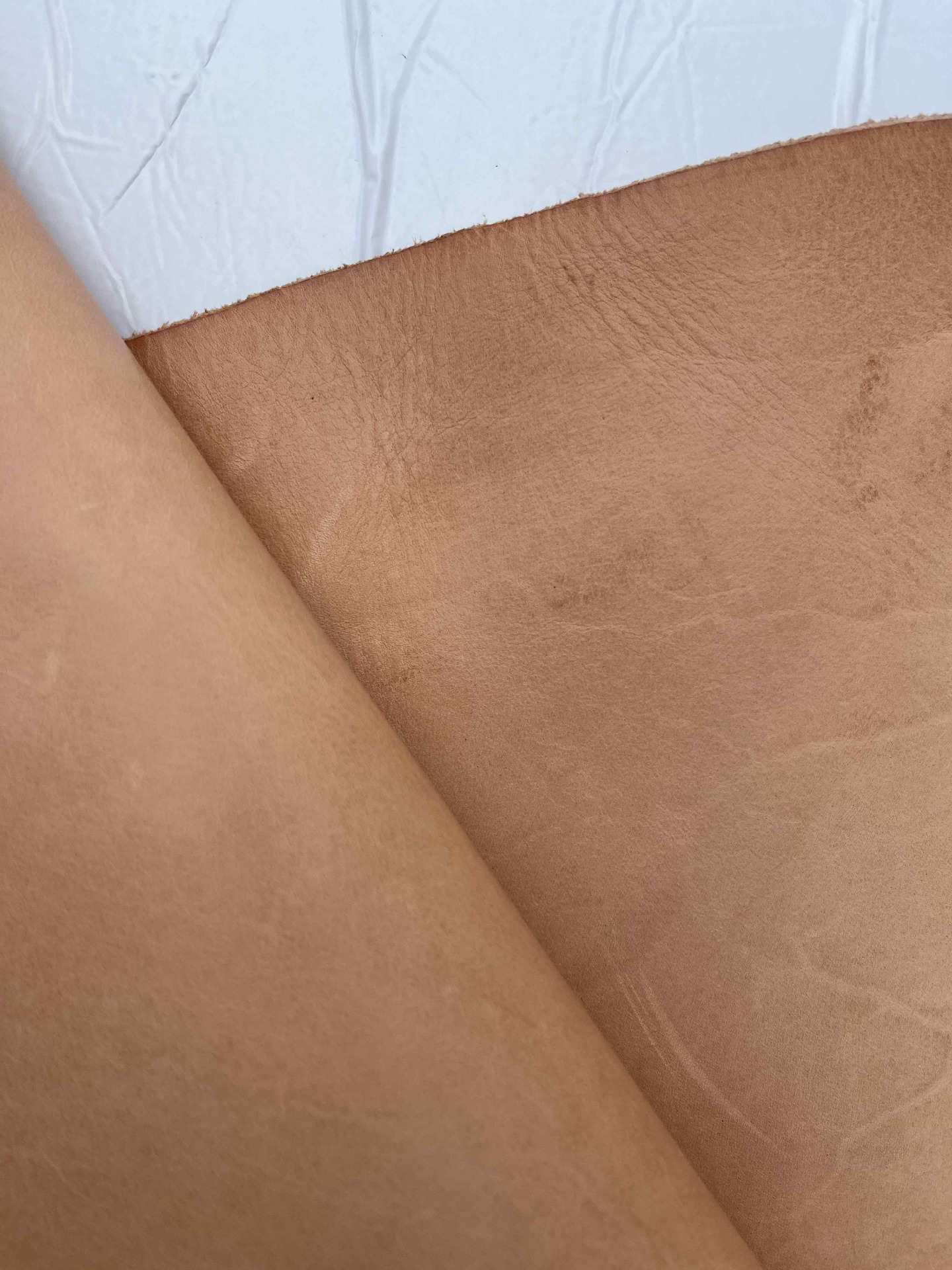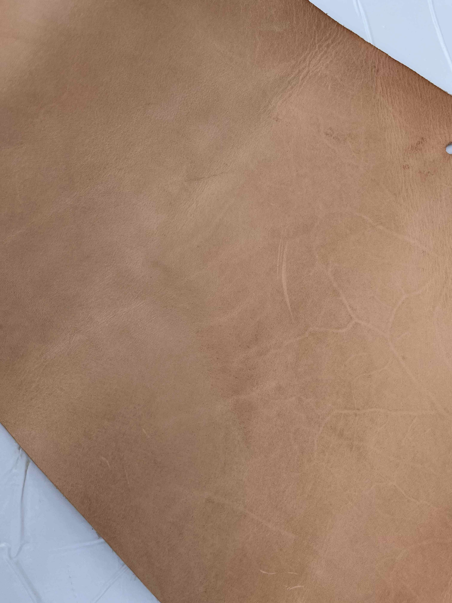 Scampolo pellame conciato 100% a vegetale ingrassato al sego che riproduce l'antica e caratteristica della vacchetta, pieno fiore senza nessuna correzione in rifinizione, segni e imperfezioni non sono da considerarsi difetti ma caratteristiche naturali della sua unicità, ideale per la produzione artigianale di piccola pelletteria, hobby creativi, svuotatasche, fondine, incisione e molto altro