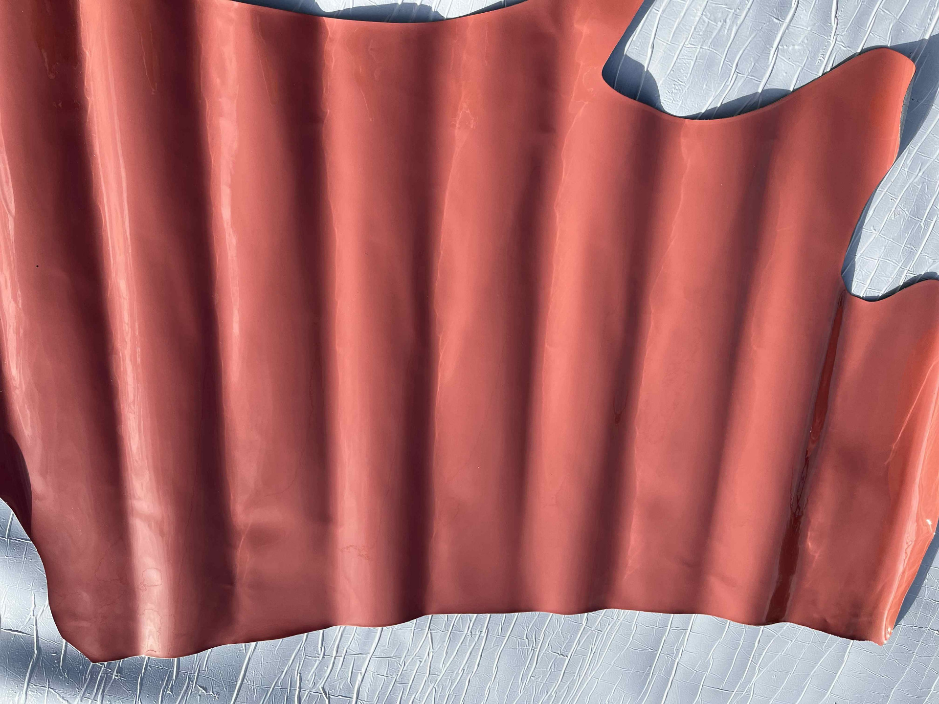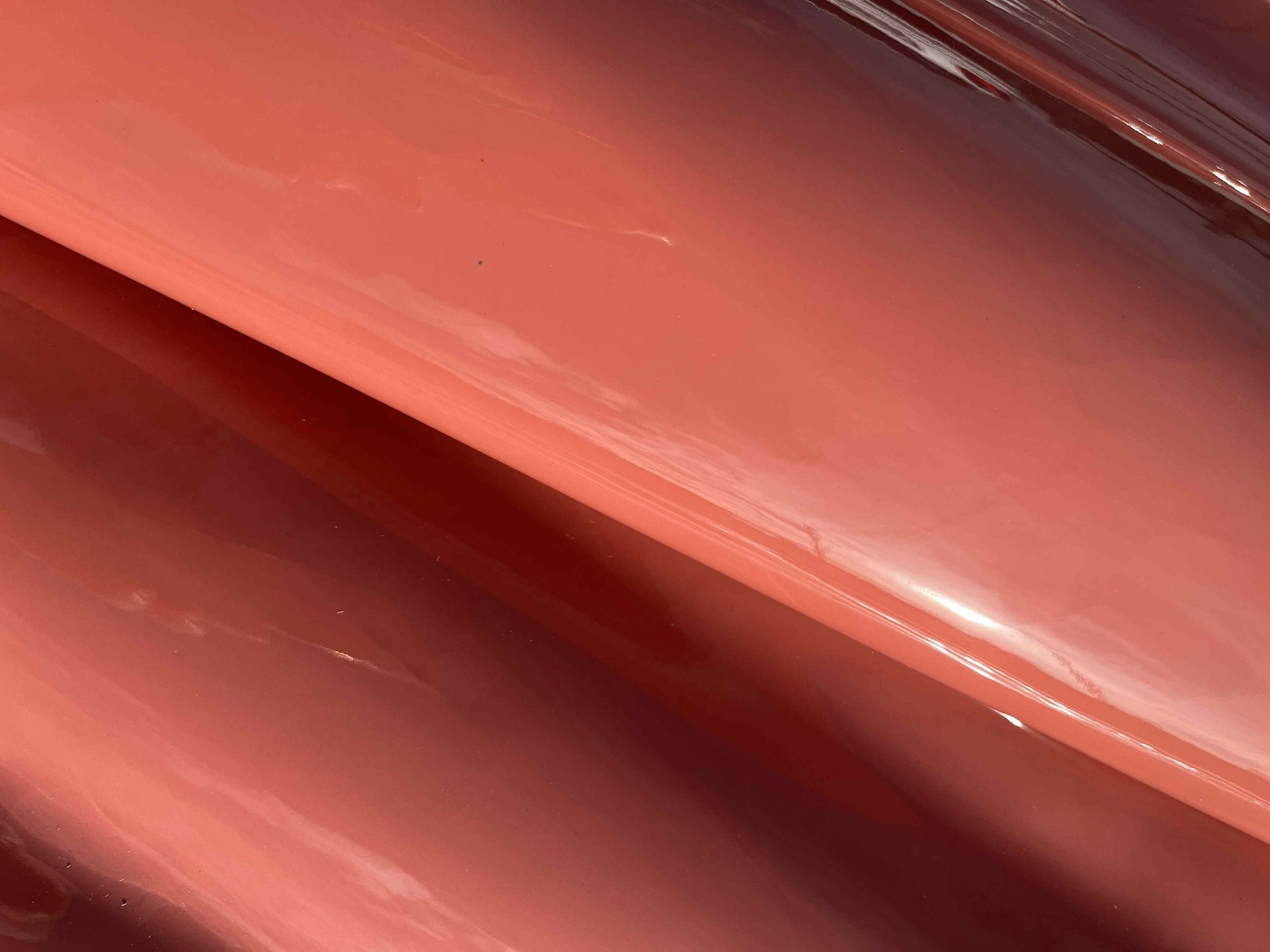 Scampolo pelle di vitello verniciata lucida di colore salmone da pelletteria e calzatura, pellame morbido al tatto liscio con una bellissima finitura a specchio per la produzione di borse, scarpe, sandali e molto altro.