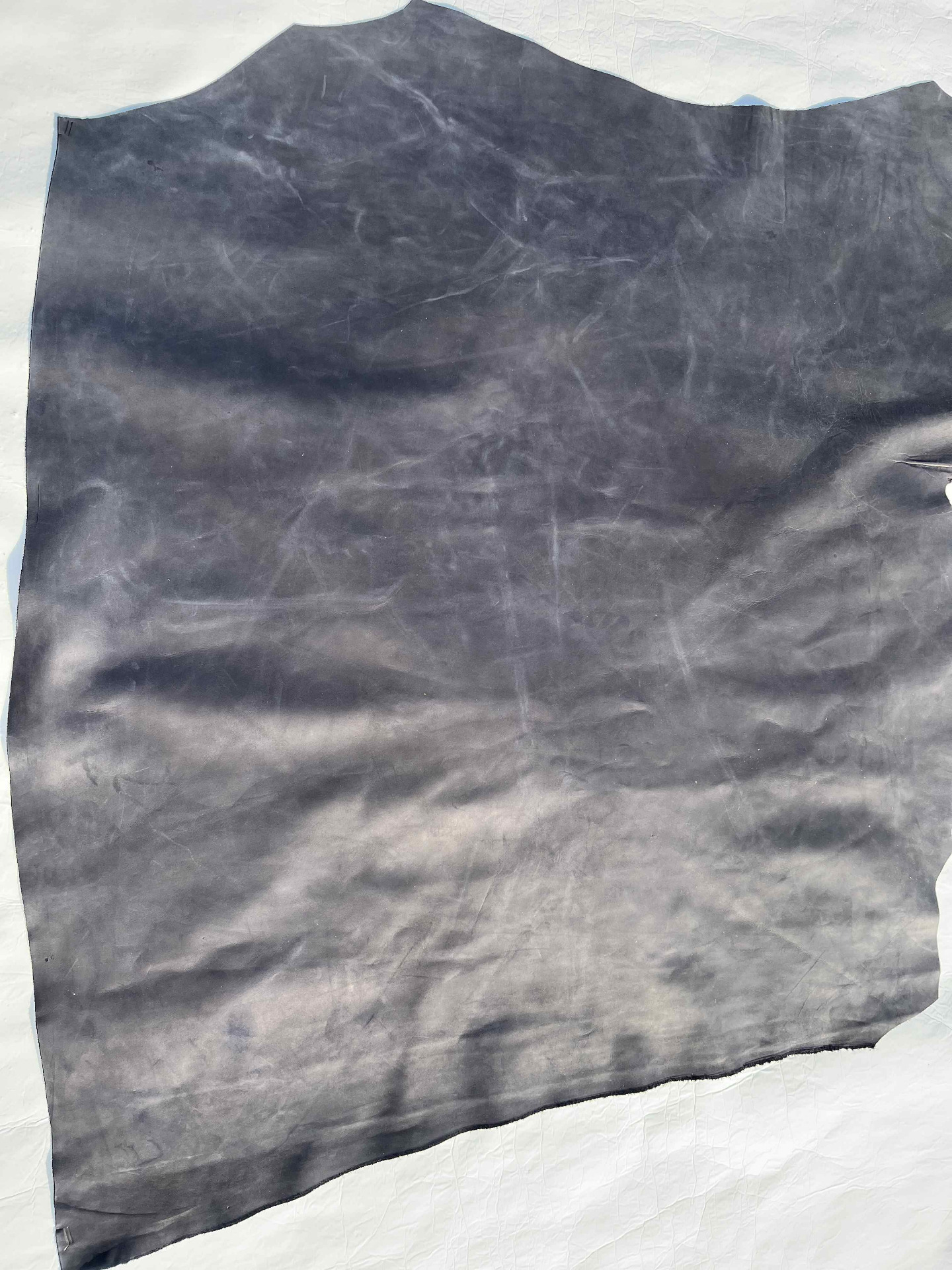 Pellame di vitello con trattamento Crazy Horse (pull-up) effetto schiarente, pieno fiore anilina pura di botte senza nessuna correzione in rifinizione, mano morbida e pastosa ideale per la produzione piccola pelletteria artigianale, portachiavi, svuotatasche, collari, fondine, cinturini, selleria, nautica, articoli per animali, legatoria, incisione e molto altro.