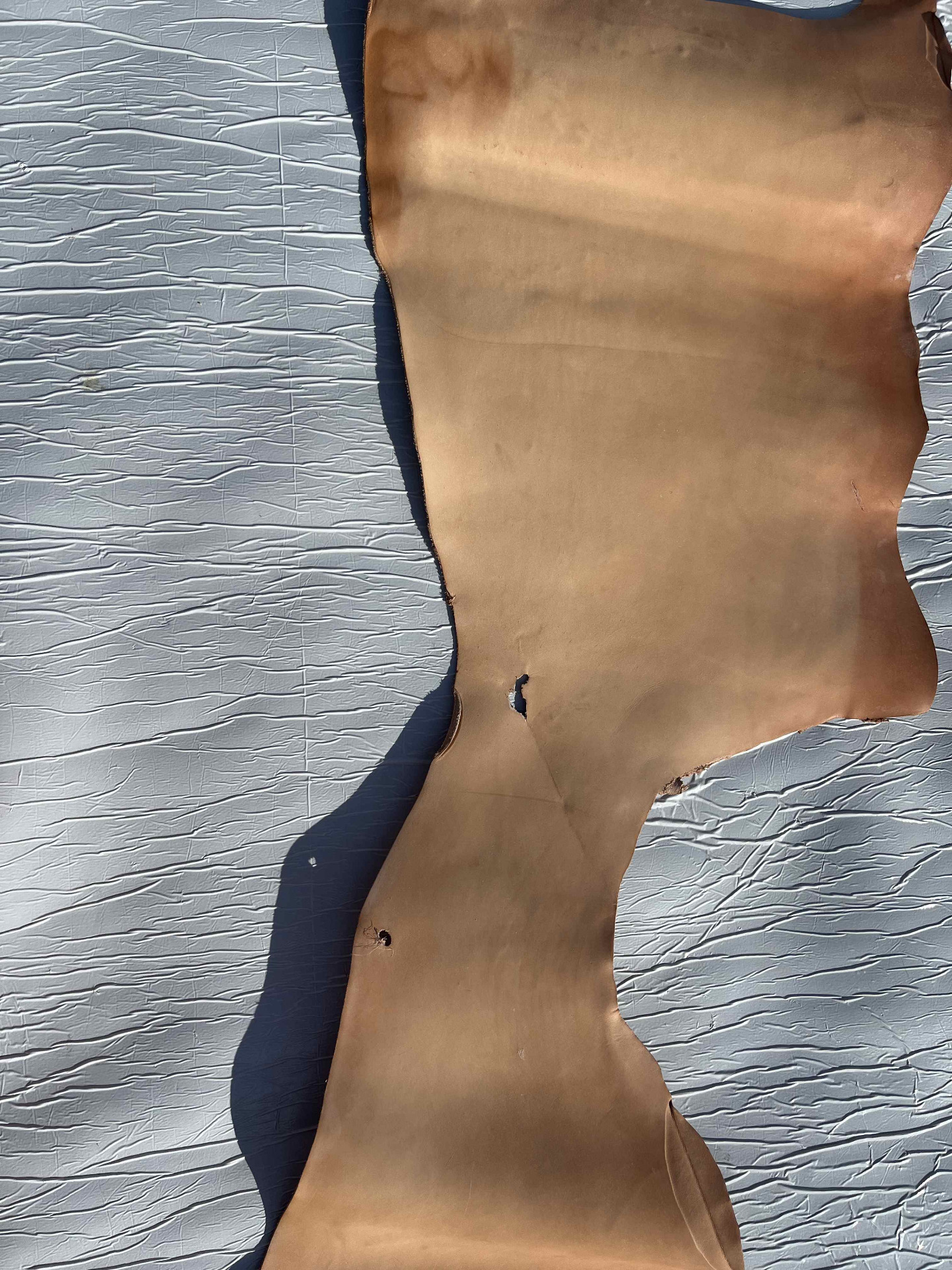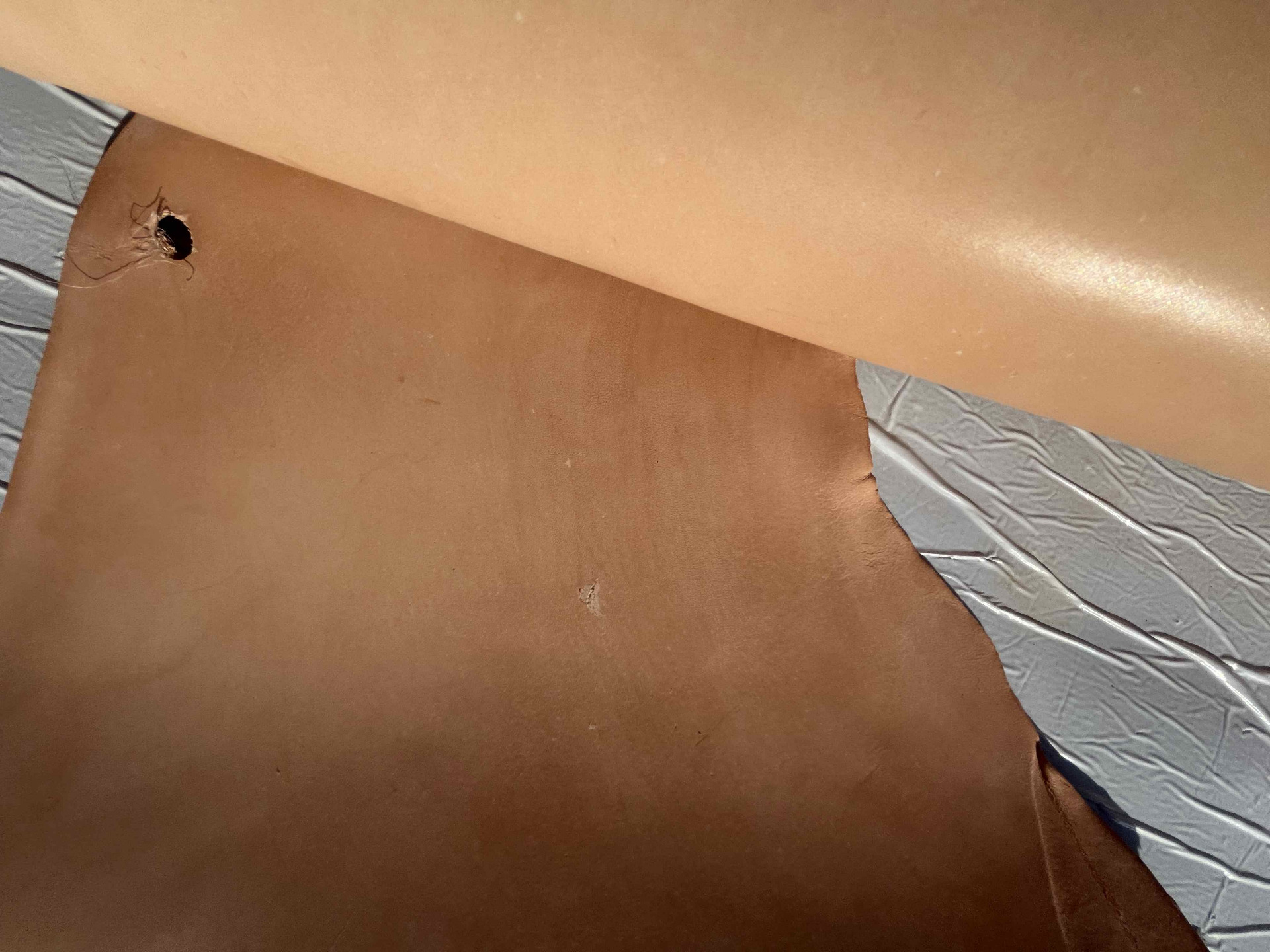 Scampolo pellame conciato 100% a vegetale ingrassato al sego che riproduce l'antica e caratteristica della vacchetta, pieno fiore senza nessuna correzione in rifinizione, segni e imperfezioni non sono da considerarsi difetti ma caratteristiche naturali della sua unicità, ideale per la produzione artigianale di piccola pelletteria, hobby creativi, svuotatasche, fondine, incisione e molto altro