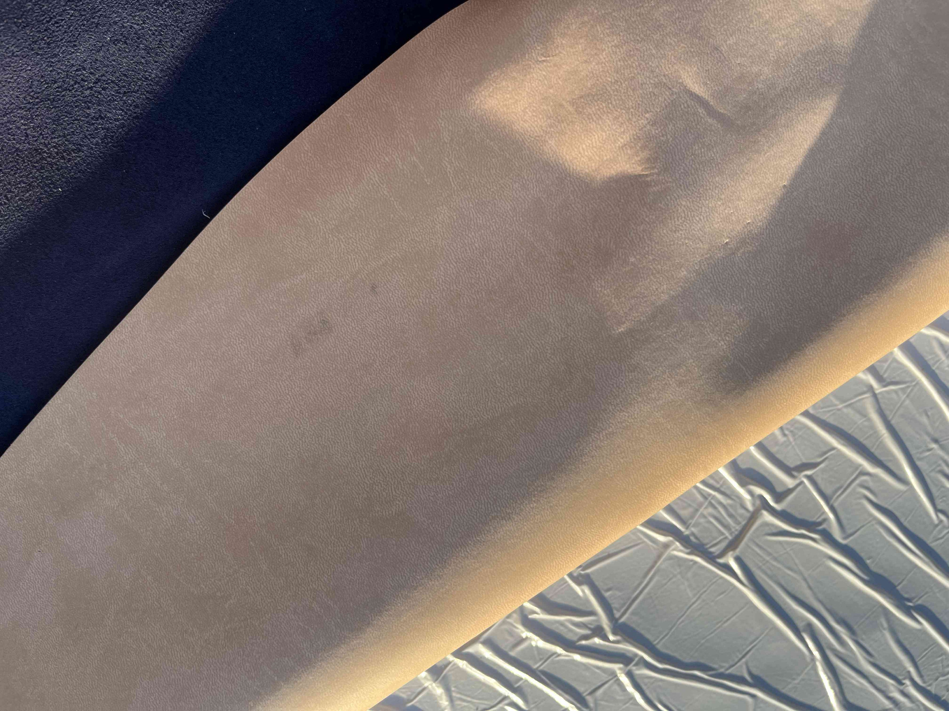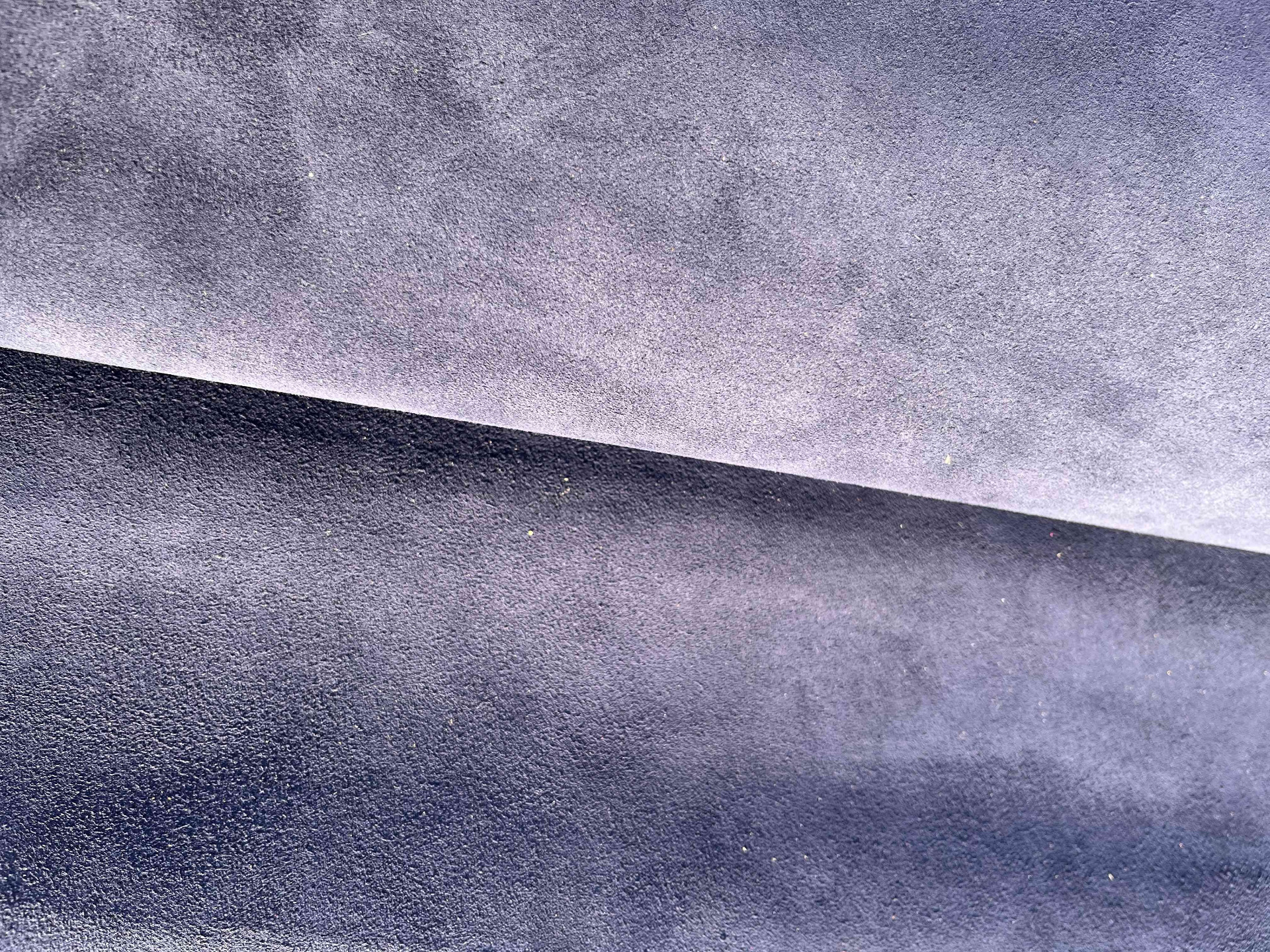 Pellame scamosciato accoppiato con ecopelle, mano semirigida, alto spessore, ampiamente utilizzato nel settore della pelletteria e calzatura nella tranciatura di tomaie per sandali, infradito e ciabatte, borse, cinture, collari e molto altro, consente di ottenere una tomaia con il retro già completo di fodera pronta per il montaggio.