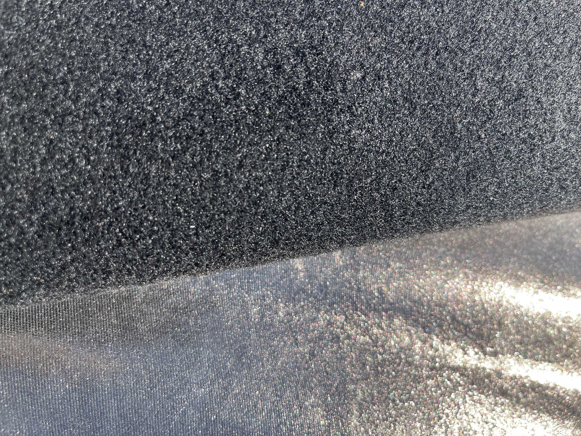 Pellame scamosciato resinato accoppiato con feltro nero nella parte retro, mano semirigida, alto spessore, ampiamente utilizzato nel settore della calzatura per la produzione di ciabatte, articoli per animali, hobby creativi e molto altro, consente di ottenere una tomaia con il retro già completo di fodera pronta per il montaggio.