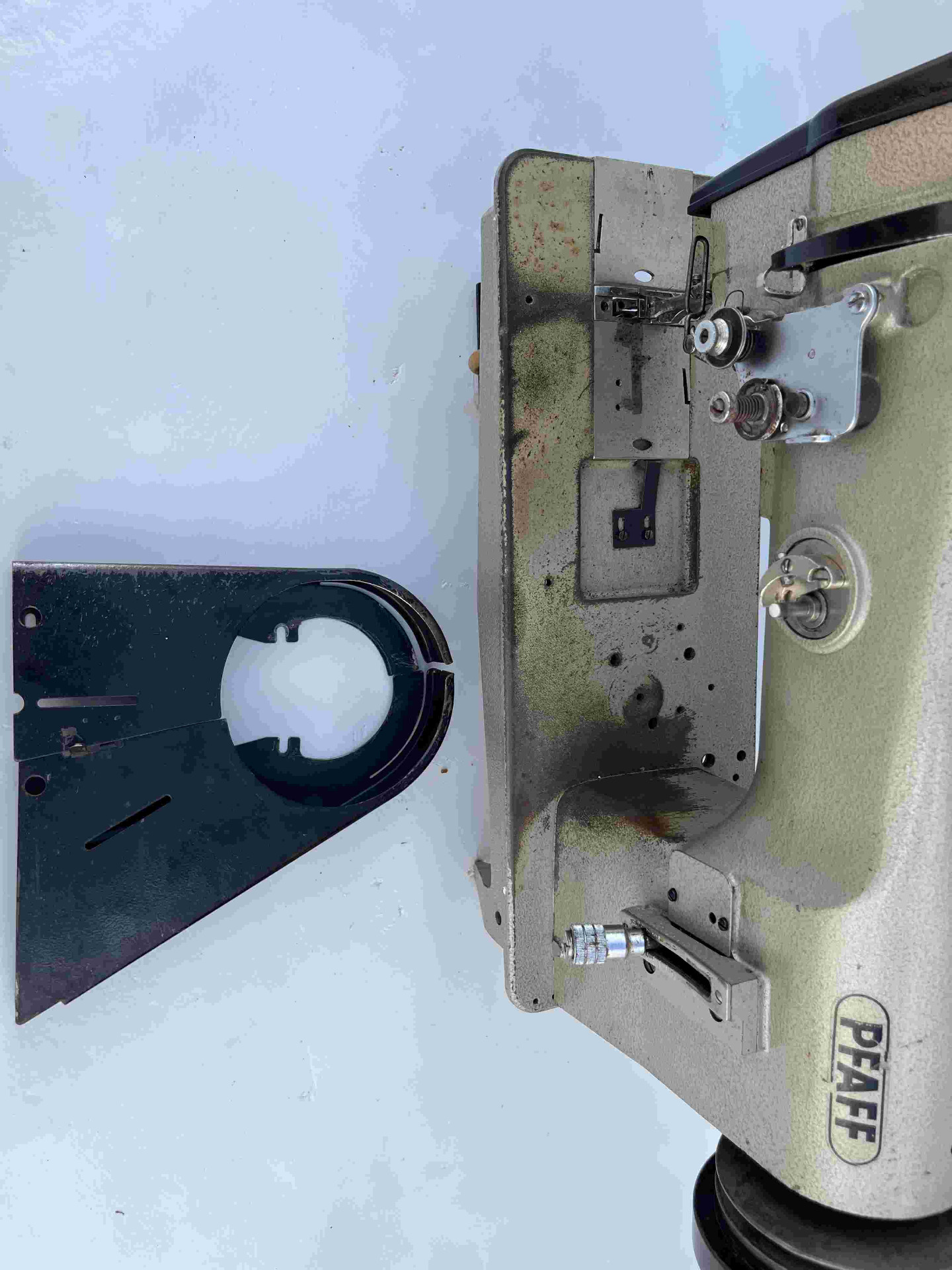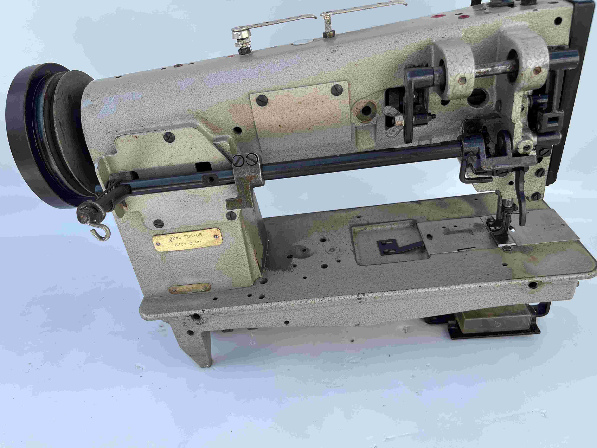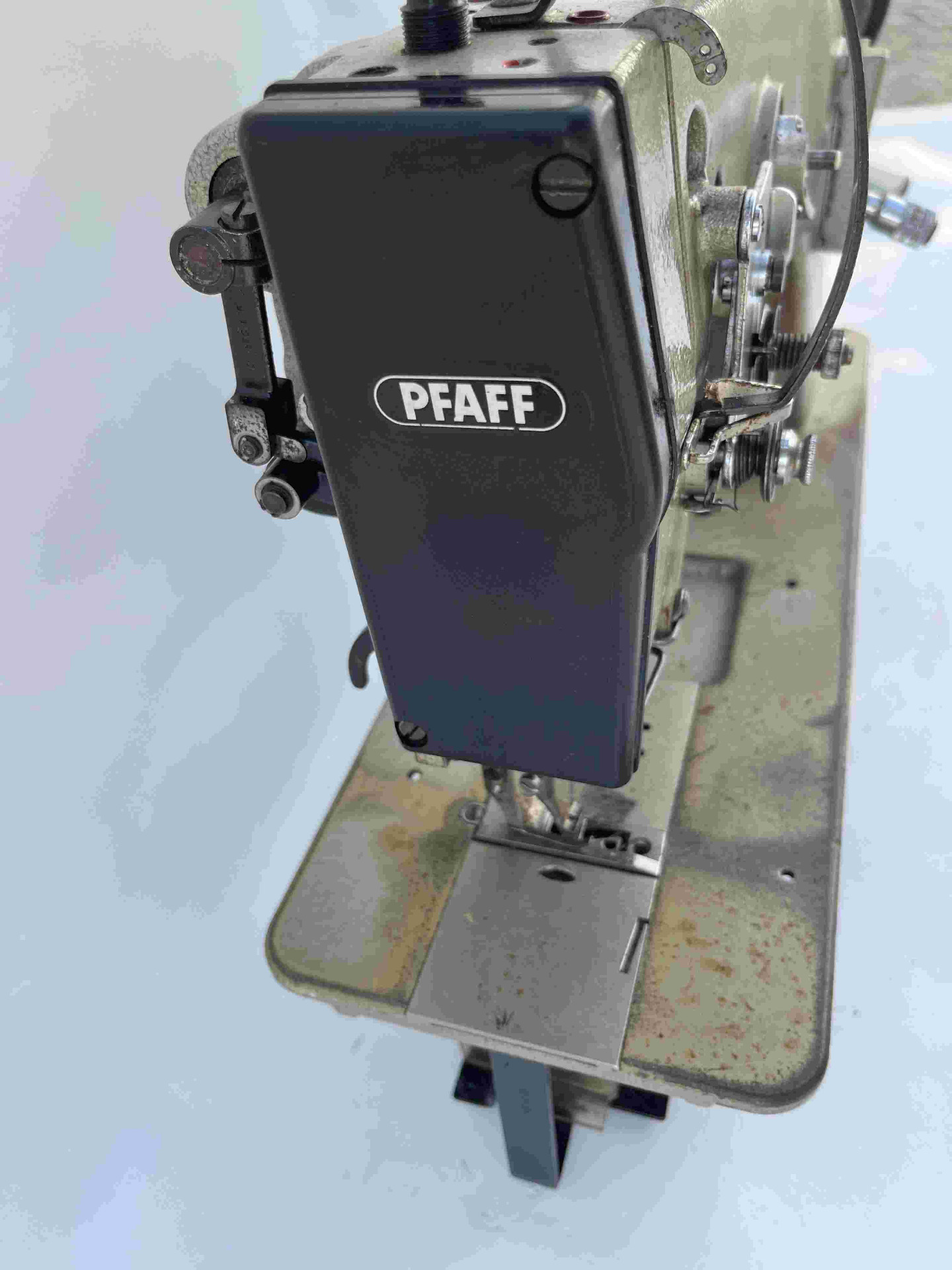 Macchina da cucire industrialePfaff 1245 triplice trasporto, rasafilo, crochet grande in buone condizioni e perfettamente funzionante, serie argento la prima generazione prodotta interamente in Germania e tutta prima vernice originale mai stata revisionata.