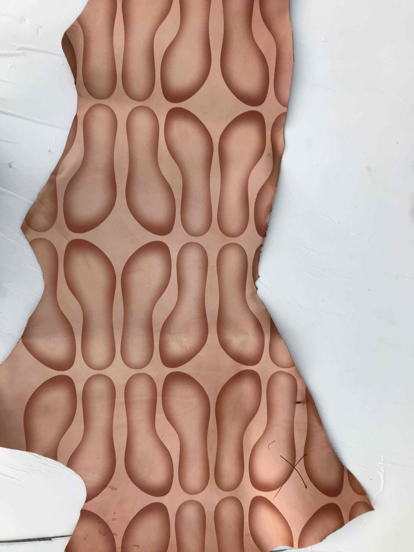 Cuoio naturale serigrafato con numerose forme di piede per bricolage, pelle conciata 100% a vacchetta ingrassata al sego pieno fiore per borse, zaini, cinture, braccialetti, selleria, fondine, portachiavi, incisione e molto altro.