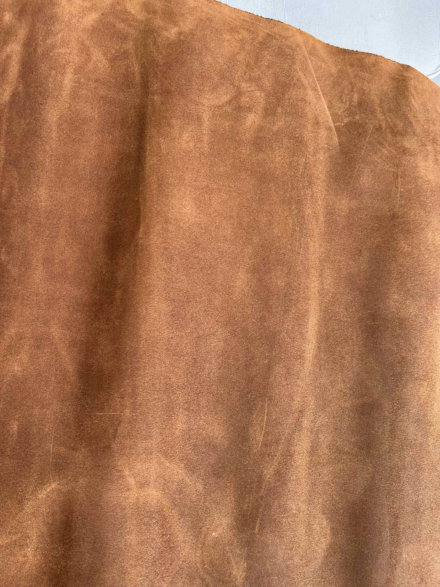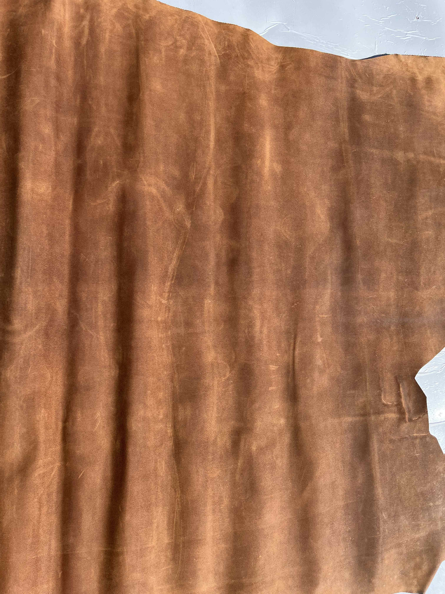 Pellame scamosciato ingrassato con trattamento Crazy Horse (pull-up) effetto schiarente per artigianato, mano semi rigida ideale per progetti di pelletteria e calzature in stile vintage, scarpe sarde, sebago, camperos, collari, fondine, borse moto e molto altro.