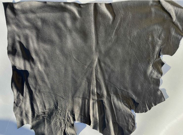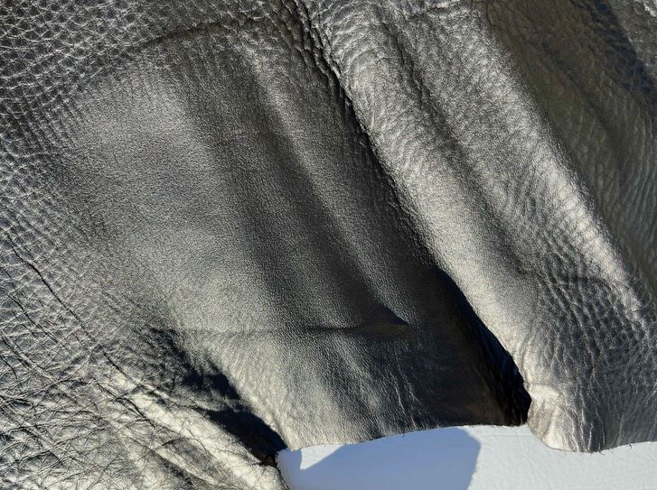 Scampolo pellame bottalato nero con una mano piena e morbida, grana naturale, morbido al tatto con un aspetto semi lucido, finitura anilina pieno fiore segni e imperfezioni non sono da considerarsi difetti, ma caratteristiche naturali, scampolo grande ideale per la produzione di piccola pelletteria, selleria, calzature e molto altro.