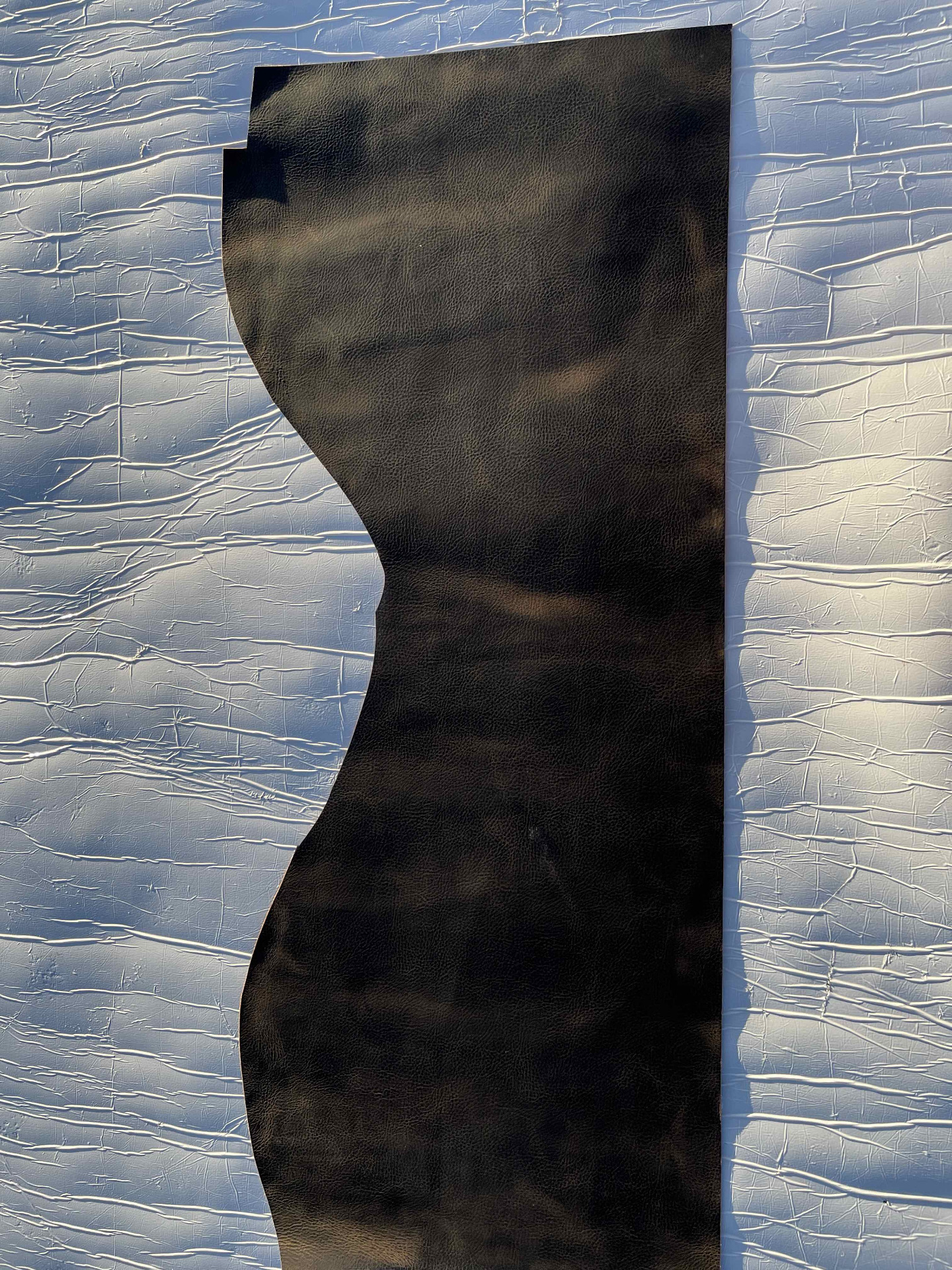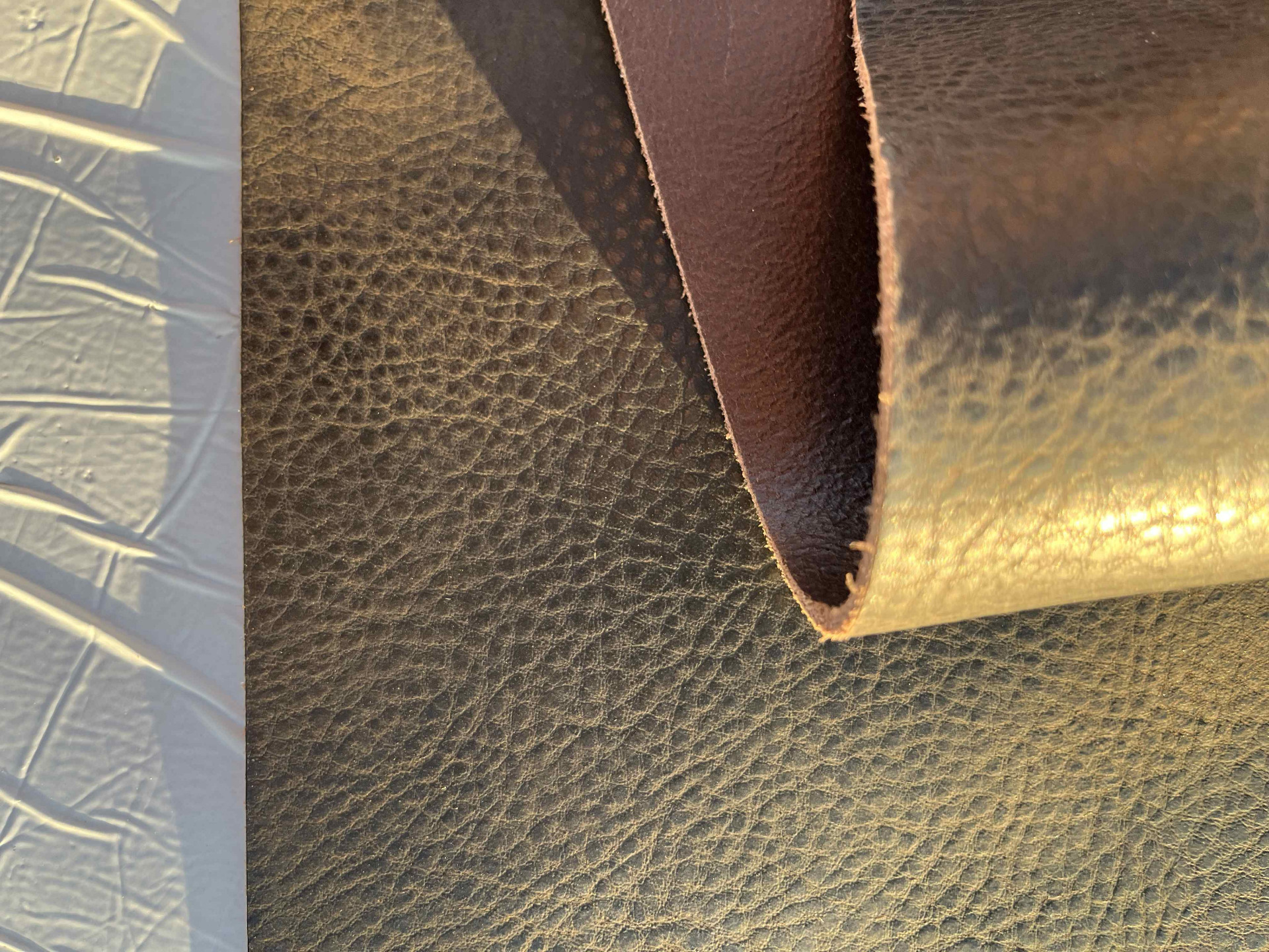 Pellame conciato 100% a vegetale nero stampa dollaro ingrassato al sego con effetto schiarente Pull Up marrone, segni e imperfezioni non sono da considerarsi difetti ma caratteristiche naturali della sua unicità, ideale per la produzione artigianale di calzature e pelletteria, incisione e molto altro.