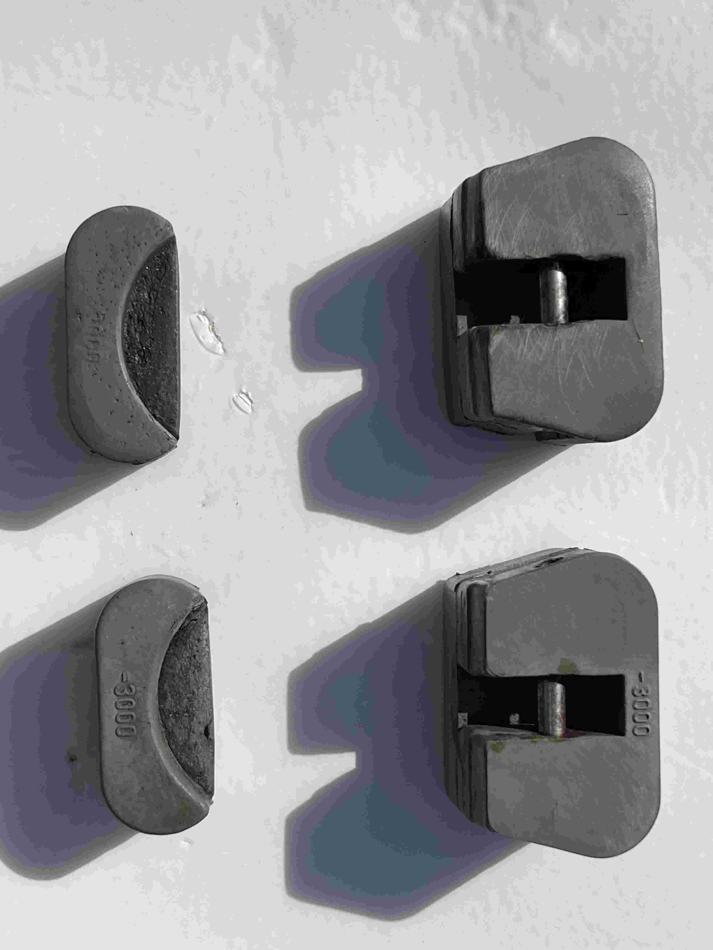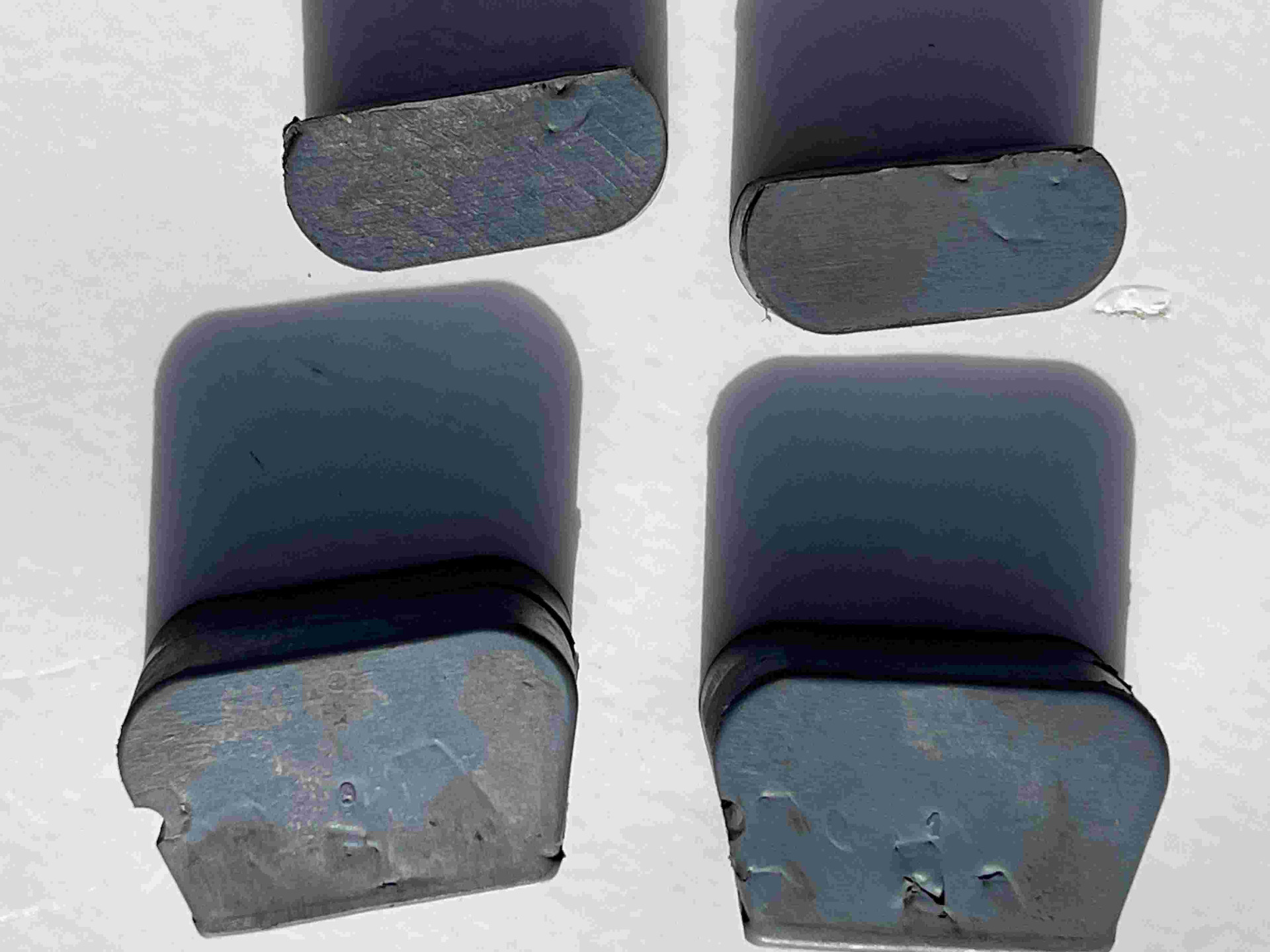 Kit da 4 supporti in gomma due posteriori e due anteriori angolari per alloggiamento macchine da cucire industriali Pfaff anni 80 sulla tavola, usati in condizioni eccellenti.
