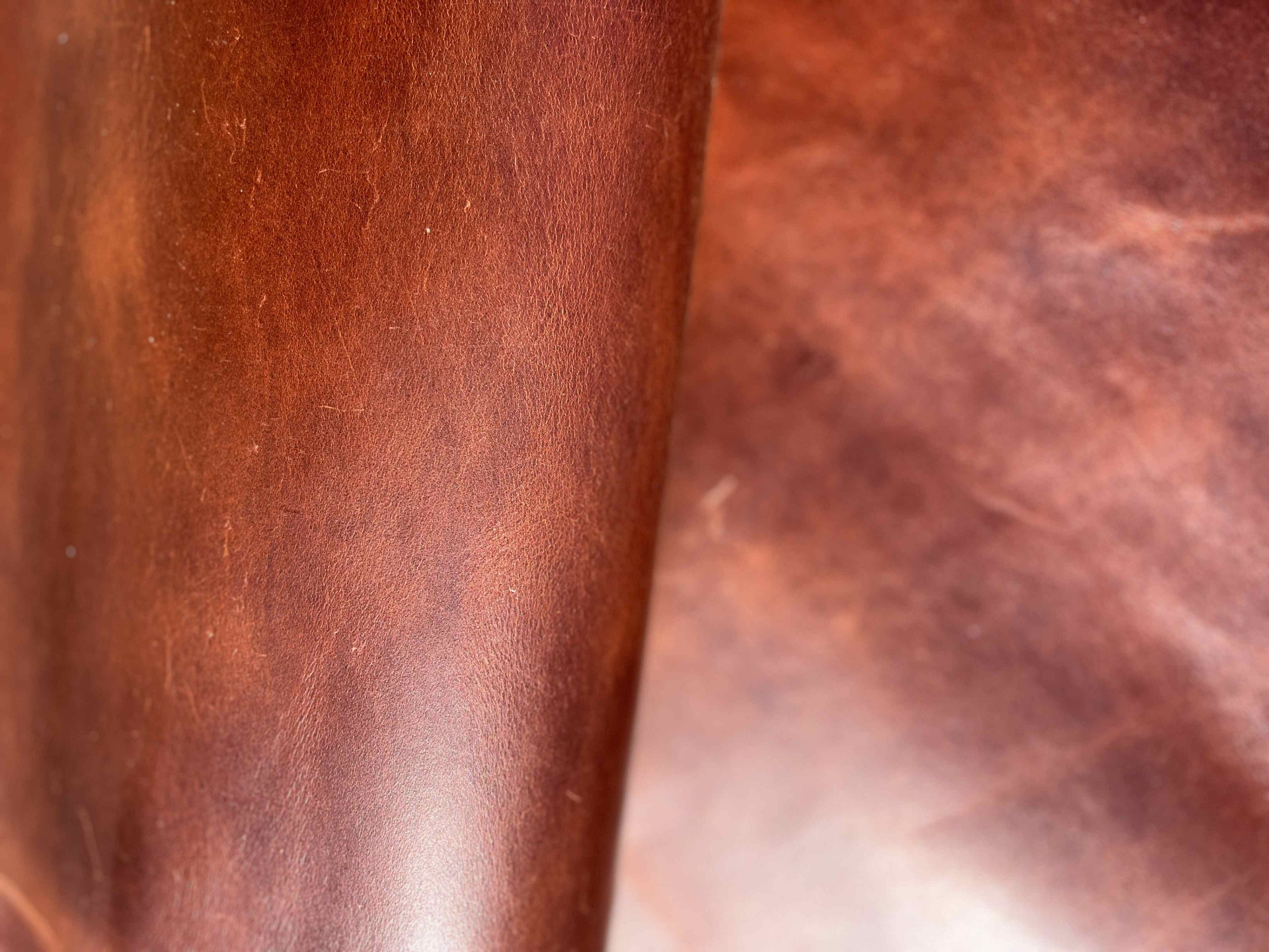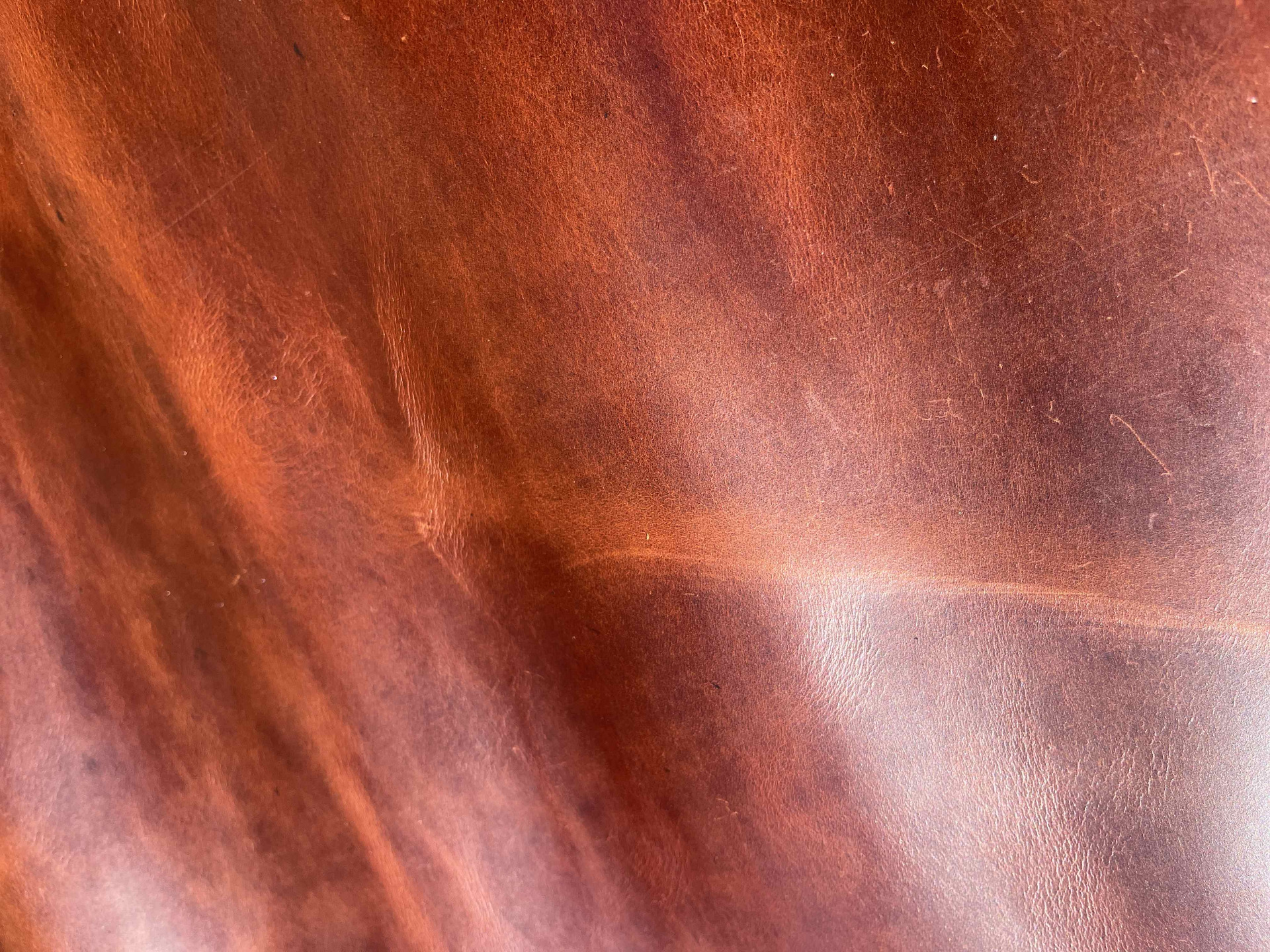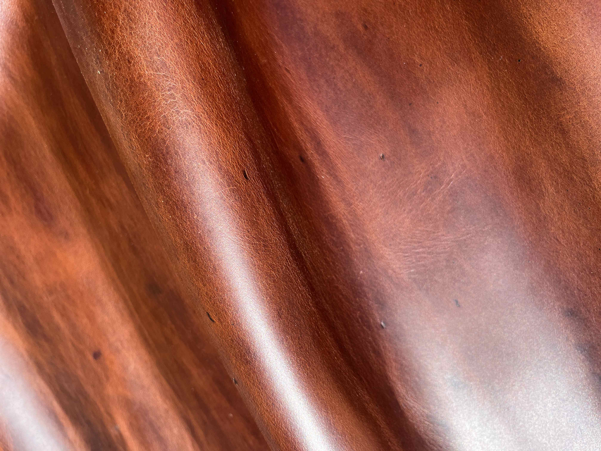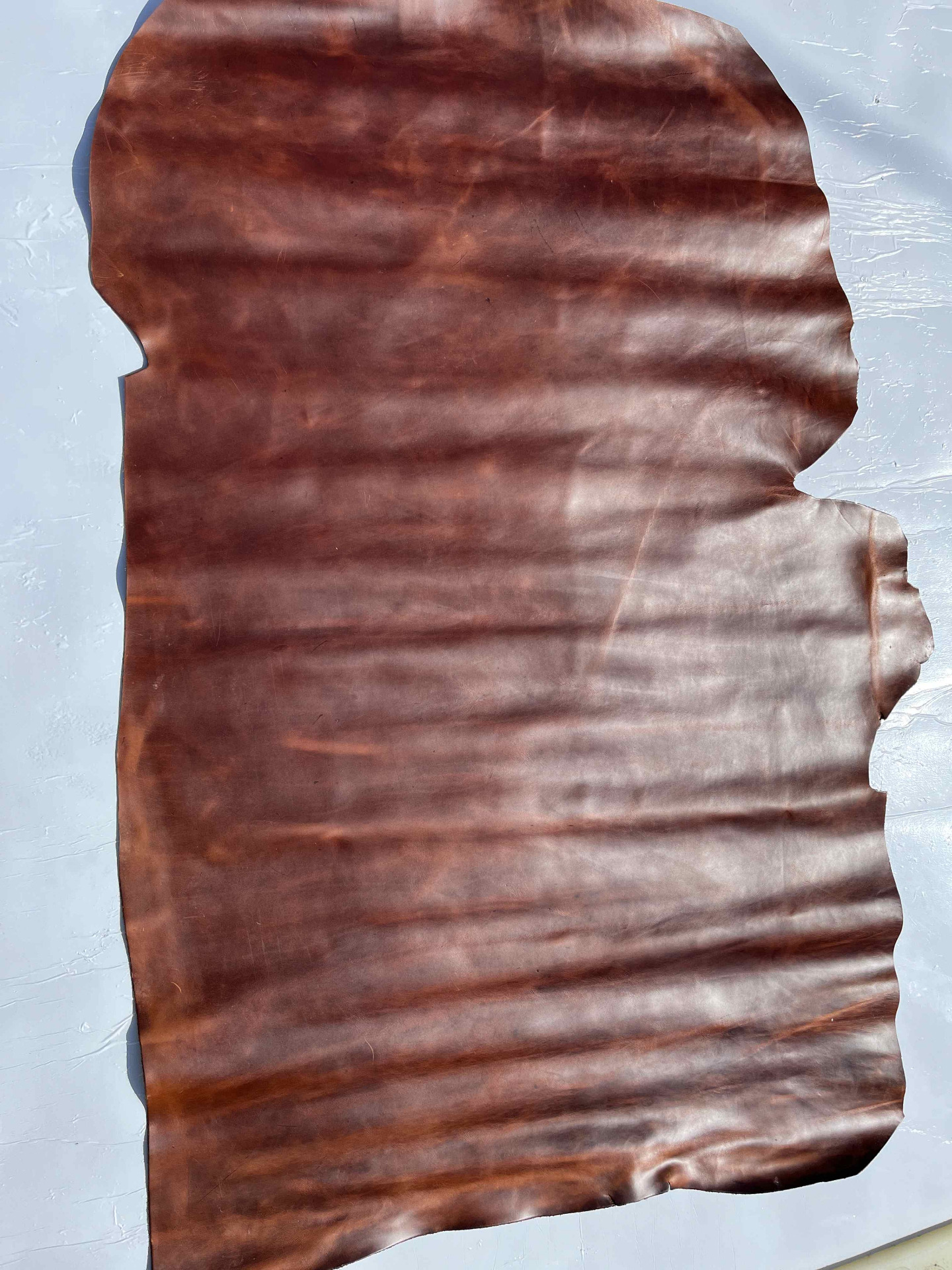Culatta conciata 100% a vegetale effetto Crazy Horse (Pull up), mano morbida e pastosa, anilina pura di botte senza nessuna correzione in rifinizione, morbida al tatto di colore brandy, grana naturale, pellame ideale per la produzione di pelletteria artigianale, portachiavi, svuotatasche, collari, fondine, cinturini, selleria, nautica, articoli per animali, legatoria, incisione e molto altro