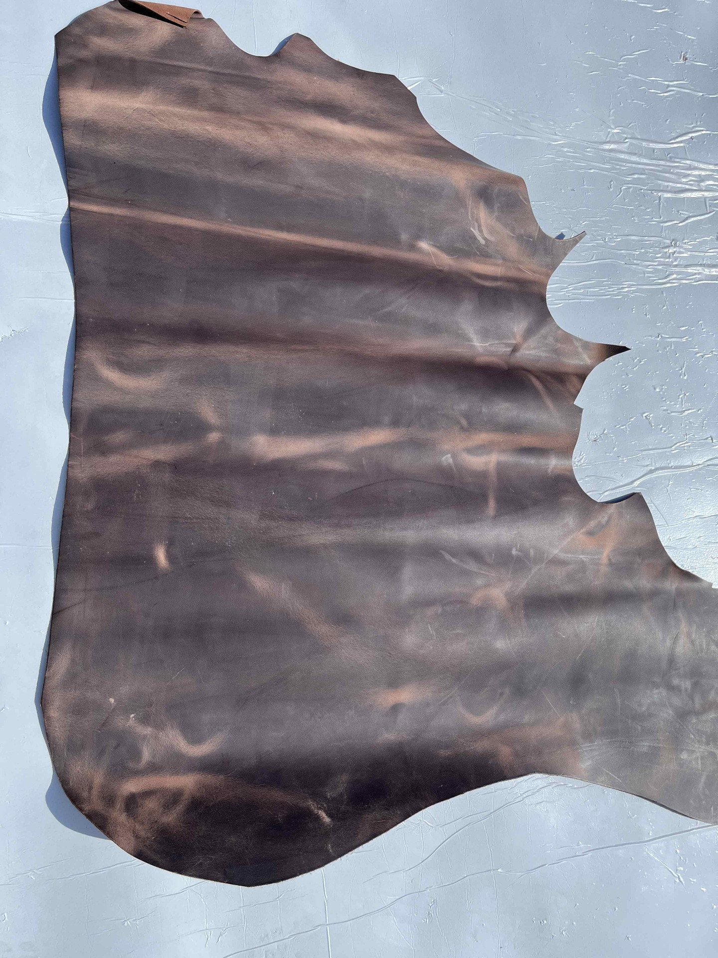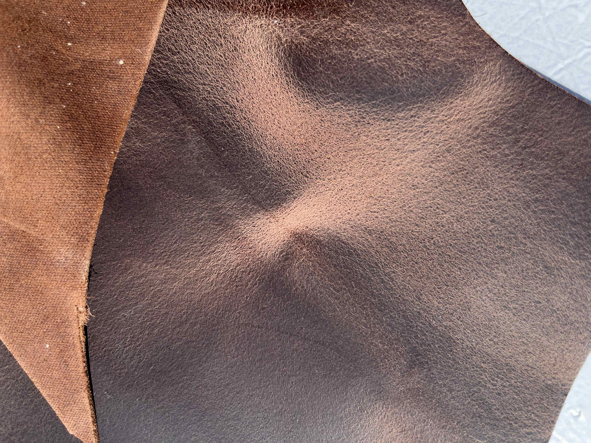 Pellame di vitello trattamento Crazy Horse (pull-up) cerato effetto schiarente, mano morbida e pastosa al tatto, ideale per borse, borselli, cartelle, zaini, portachiavi, legatoria e molto altro.