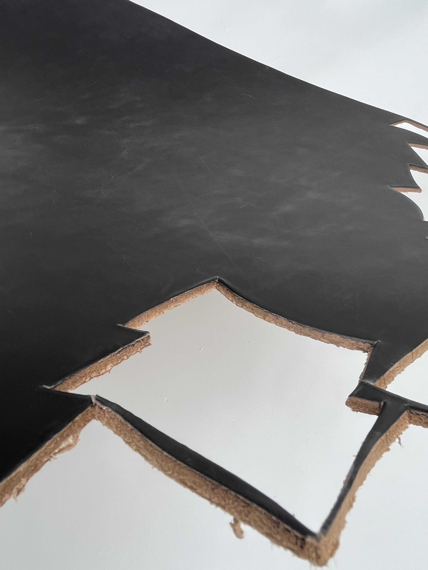 Scampolo di Groppone conciato 100% al vegetale di alto spessore macello nazionale, liscio, colore nero satinato per calzolai e artigiani.