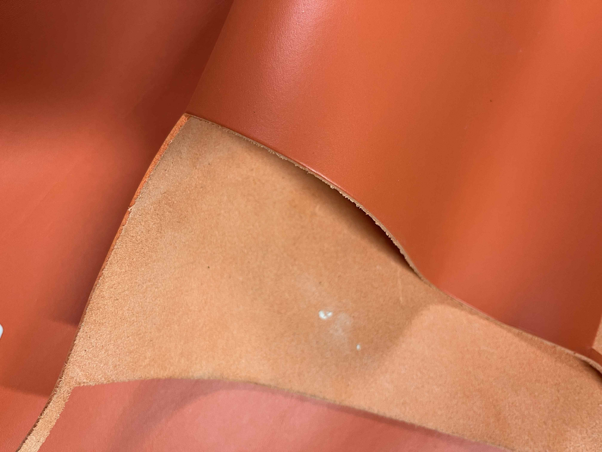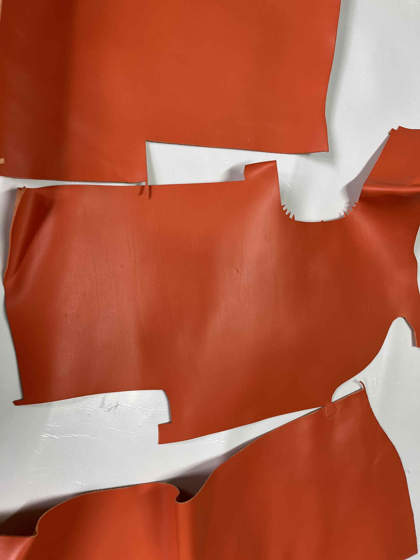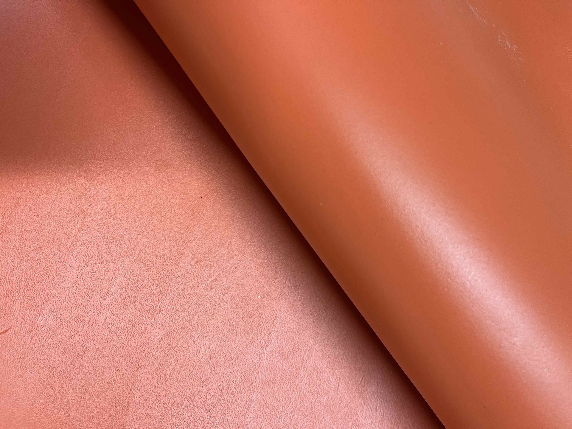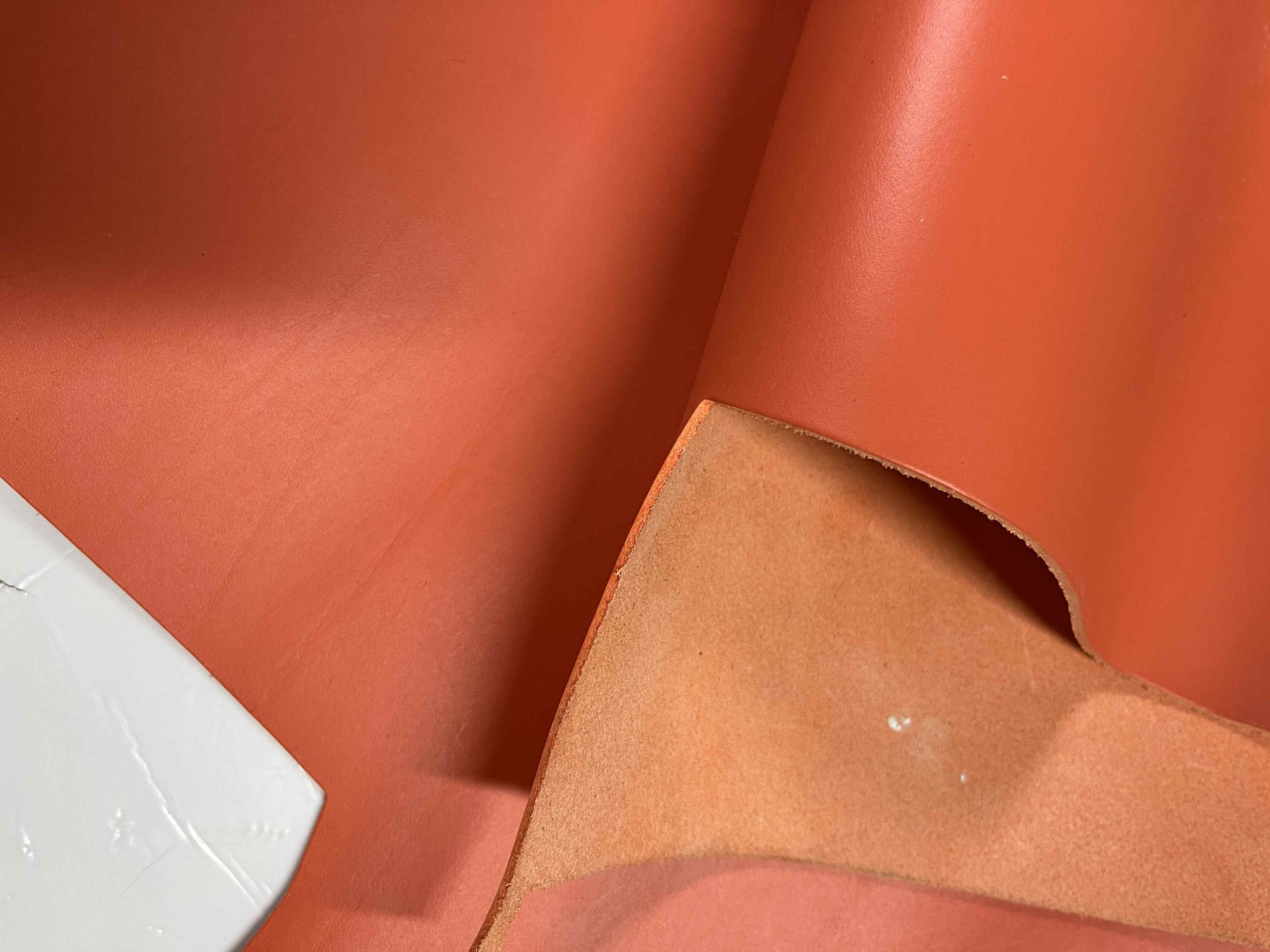 Pellame conciato 100% a vegetale liscio di colore Arancione, ideale per la produzione artigianale di calzature e pelletteria, incisione e molto altro.