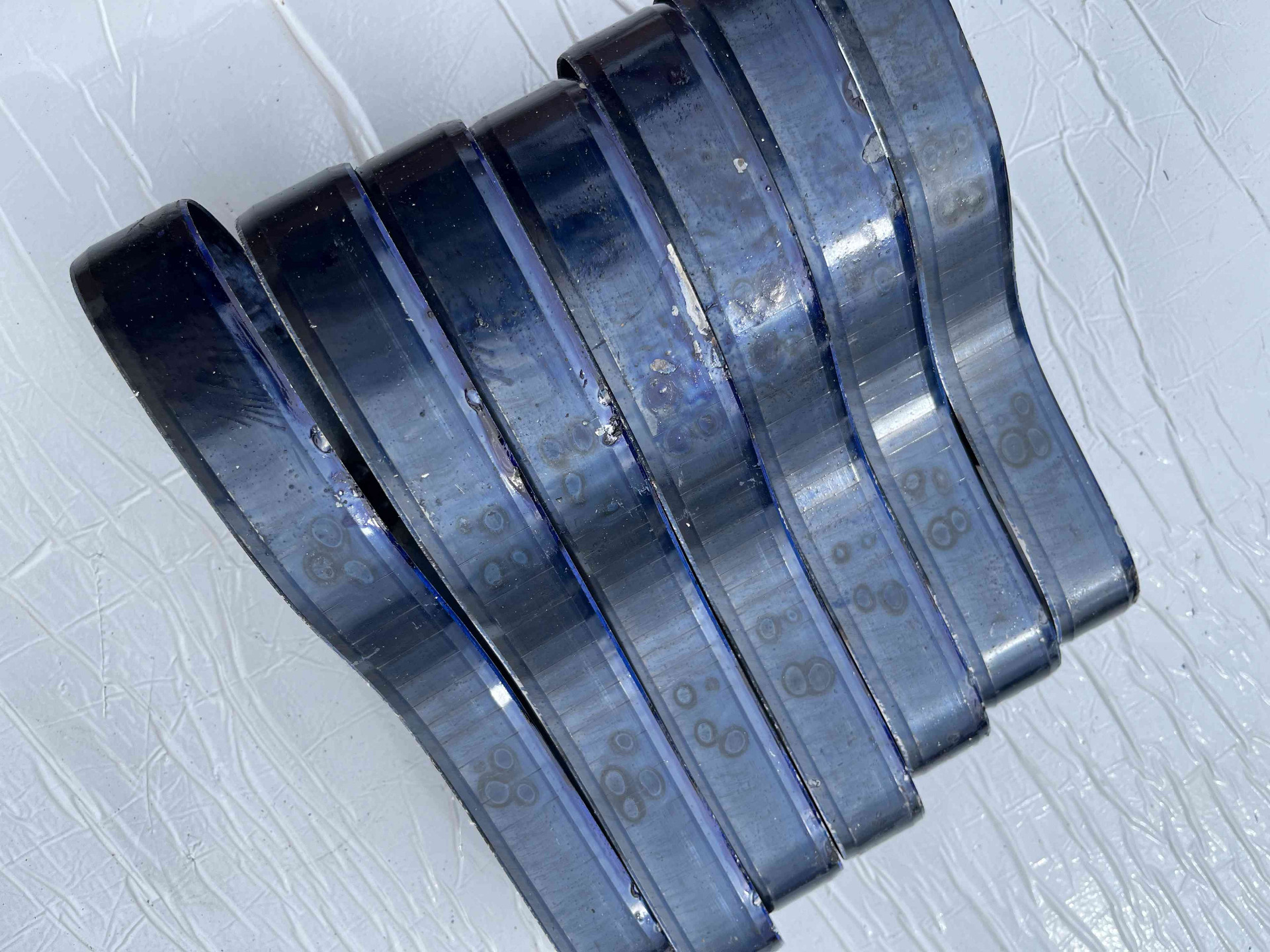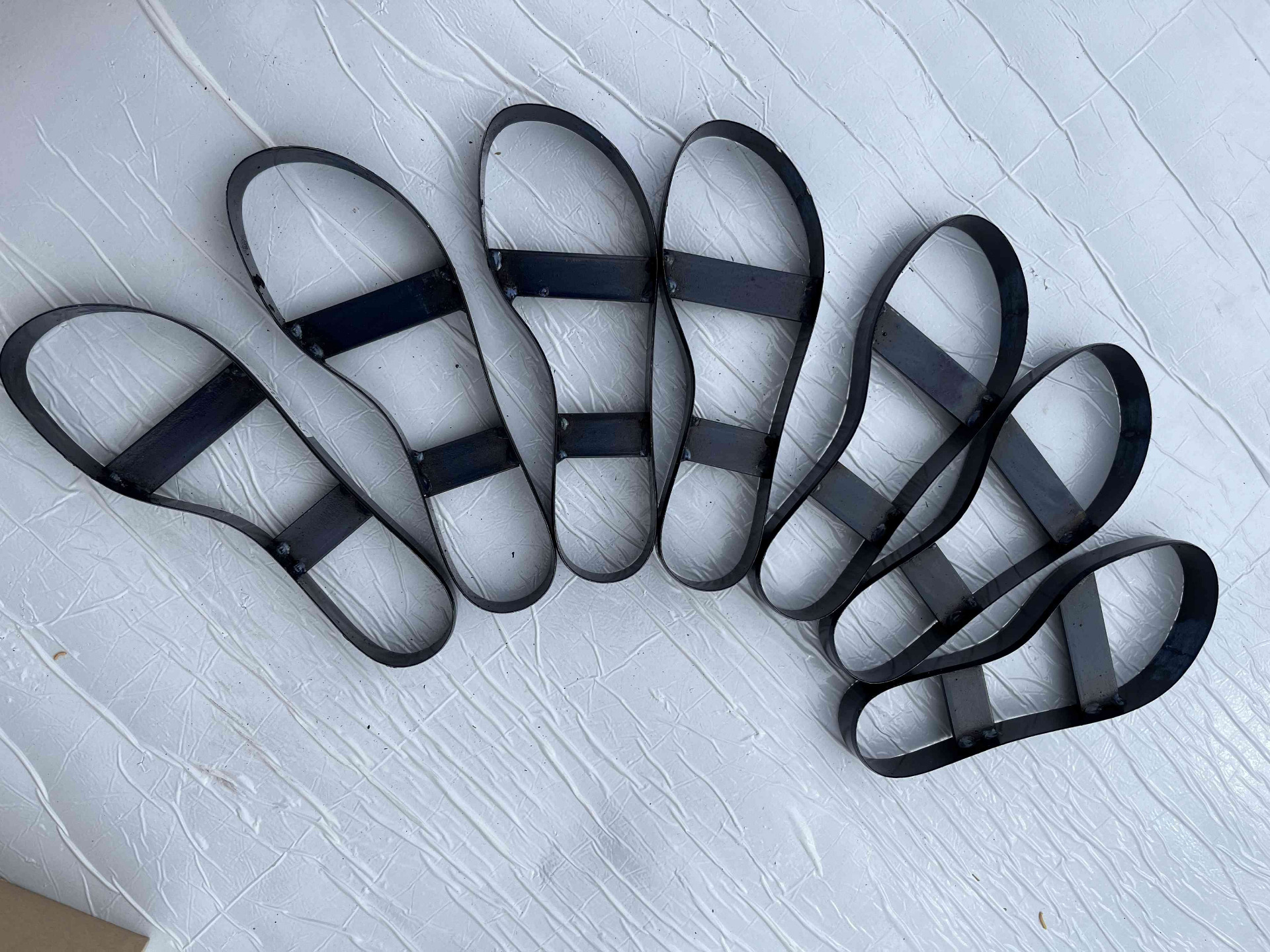 Serie di fustelle in acciaio usate per taglio delle suola sandali e infradito donna, set completo fustelle in acciaio austriaco due millimetri di spessore e trenta millimetri di altezza, fustelle con pochissime battute all'attivo in condizioni equiparabili al nuovo.
