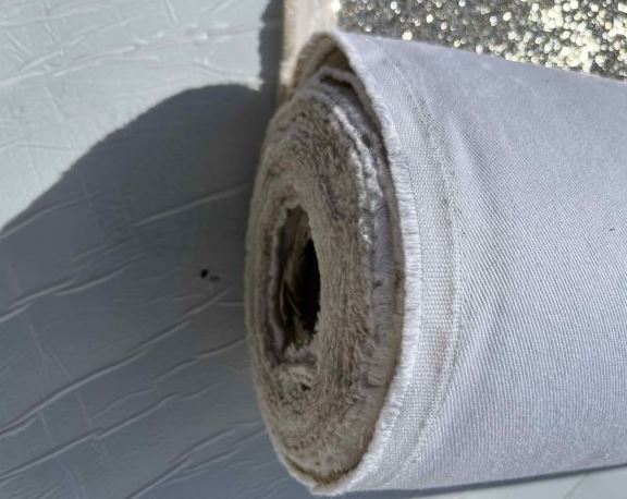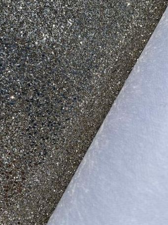 Scampolo tessuto cotone spalmato con glitter di poliestere colorato mediante resina acrilica, colore cronatico argento grana media, per il settore della pelletteria e calzatura, borse, pochette, ballerine, sandali, infradito e molto altro semirigida ideale per borse, articoli di pelletteria e molto altro.