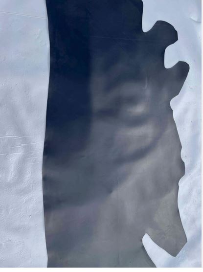 Pellame di vitello liscio abrasivato di colore nero con aspetto classico spazzolato semi-lucido, mano morbida, alta qualità per la produzione di pelletteria e calzature artigianale made in Italy.
