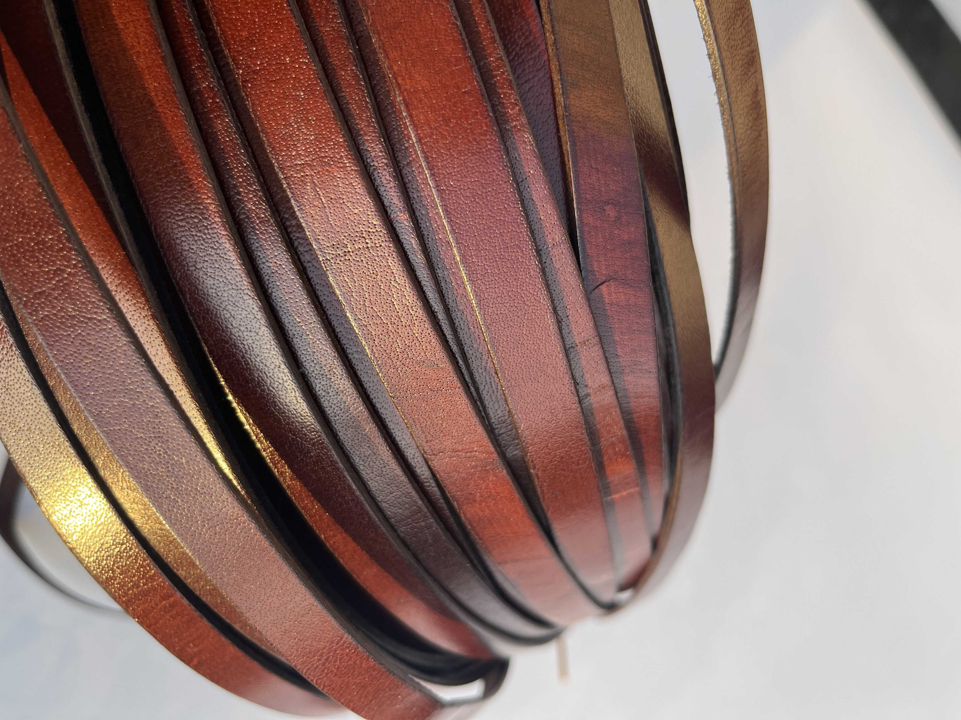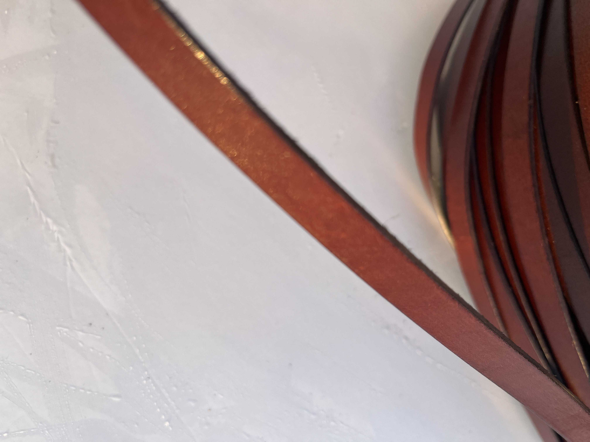 Nastro in vera pelle liscio piatto, larghezza 12 millimetri in vera pelle bovina conciata al vegetale, anilina segni e imperfezioni non sono da considerarsi difetti, ma caratteristiche naturali, semi rigido, ampiamente utilizzato nel settore della pelletteria e calzatura , pronto per essere utilizzato per la creazione di cinturini, collari, tracolle, infradito, sandali, ciabatte e molto altro.