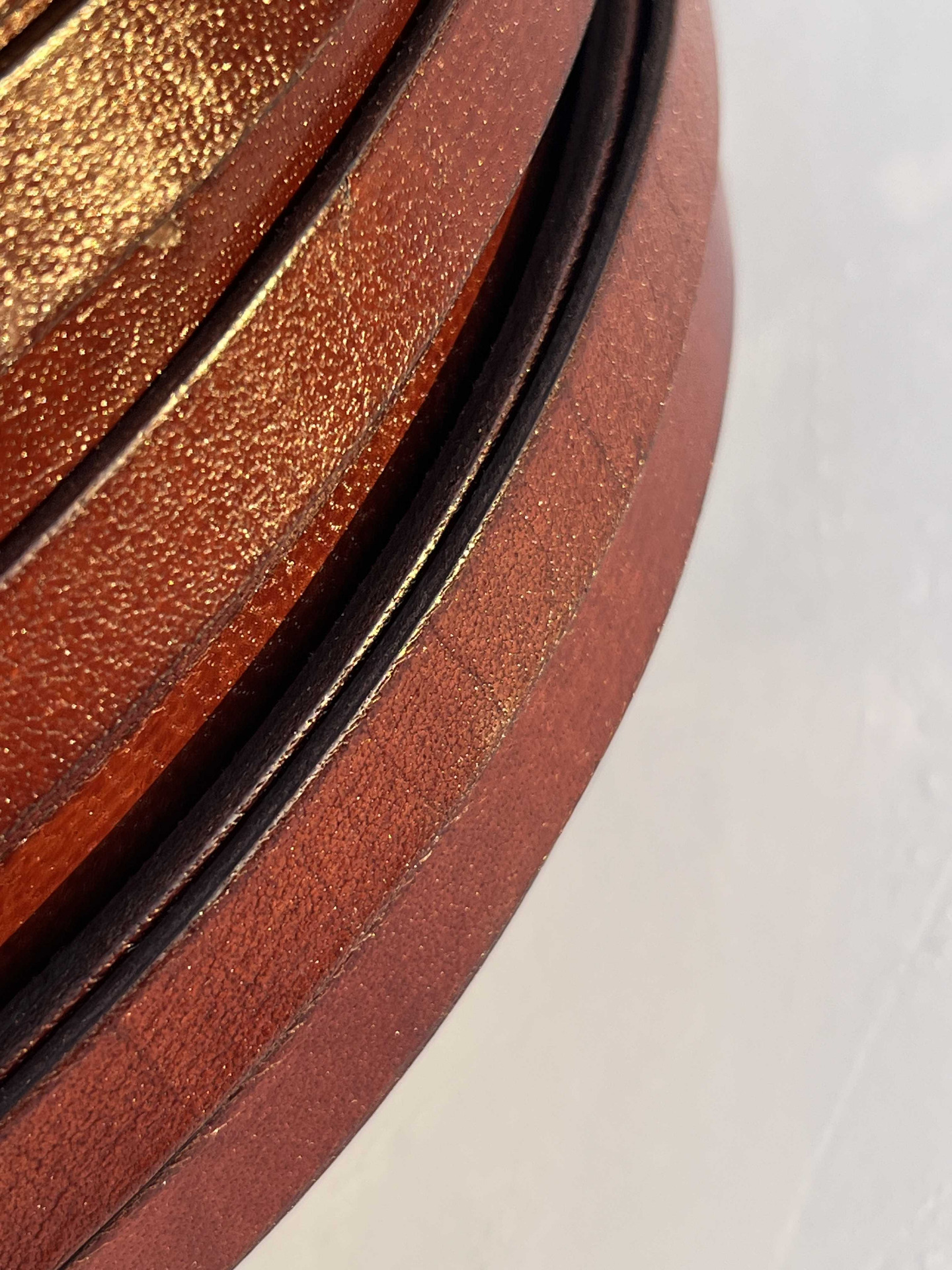 Nastro in vera pelle liscio piatto, larghezza 12 millimetri in vera pelle bovina conciata al vegetale, anilina segni e imperfezioni non sono da considerarsi difetti, ma caratteristiche naturali, semi rigido, ampiamente utilizzato nel settore della pelletteria e calzatura , pronto per essere utilizzato per la creazione di cinturini, collari, tracolle, infradito, sandali, ciabatte e molto altro.