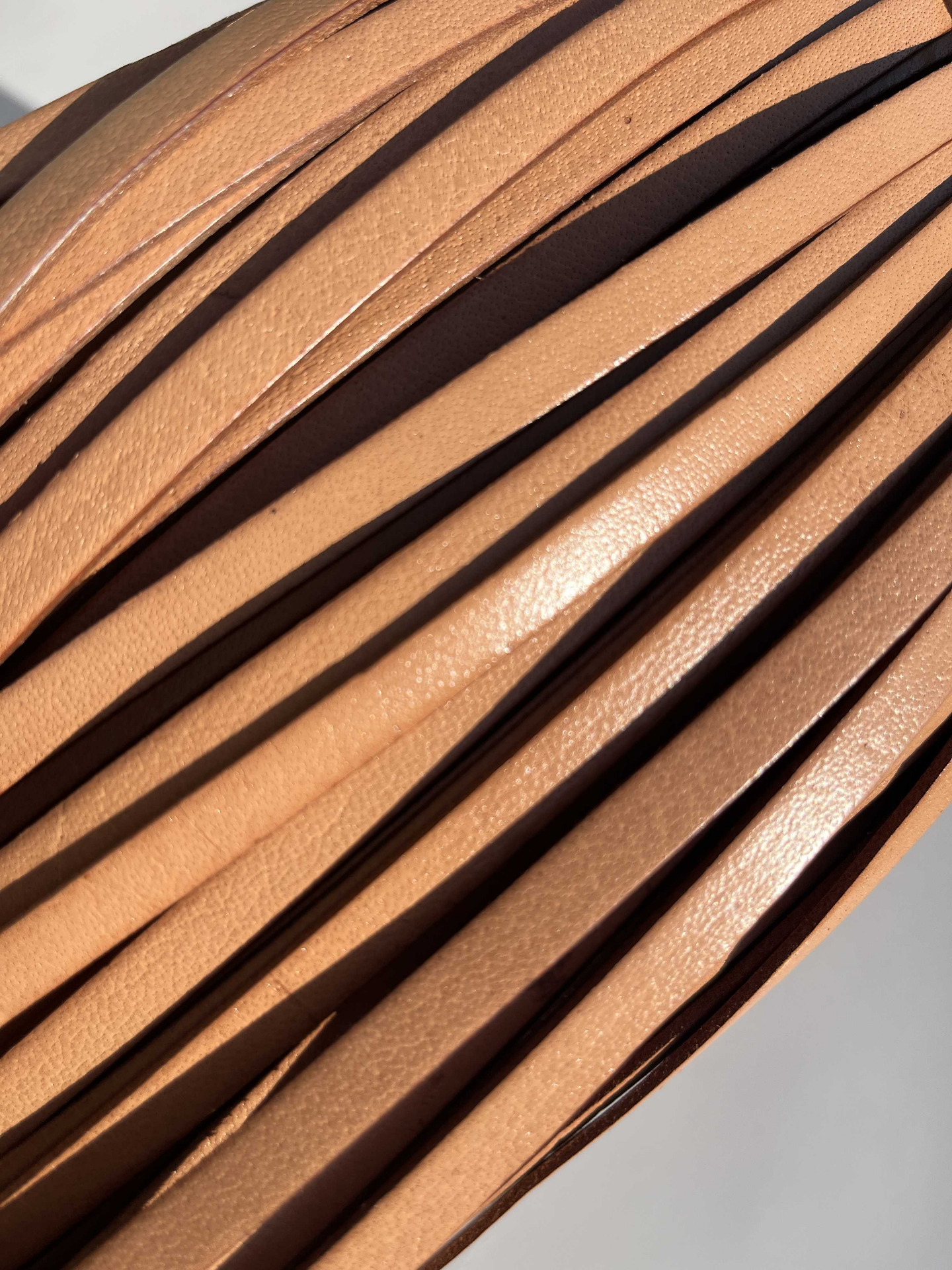 Nastro in pelle a vegetale Naturale H 7 millimetri in vera pelle bovina conciata al vegetale naturale, segni, imperfezioni e alterazioni di colore non sono da considerarsi difetti, ma certificano la genuinità della materia prima esclusivamente naturale. semi rigido, cucitura centrale, ampiamente utilizzato nel settore della pelletteria e calzatura , pronto per essere utilizzato per la creazione di cinturini, collari, tracolle, infradito, sandali, ciabatte e molto altro.
