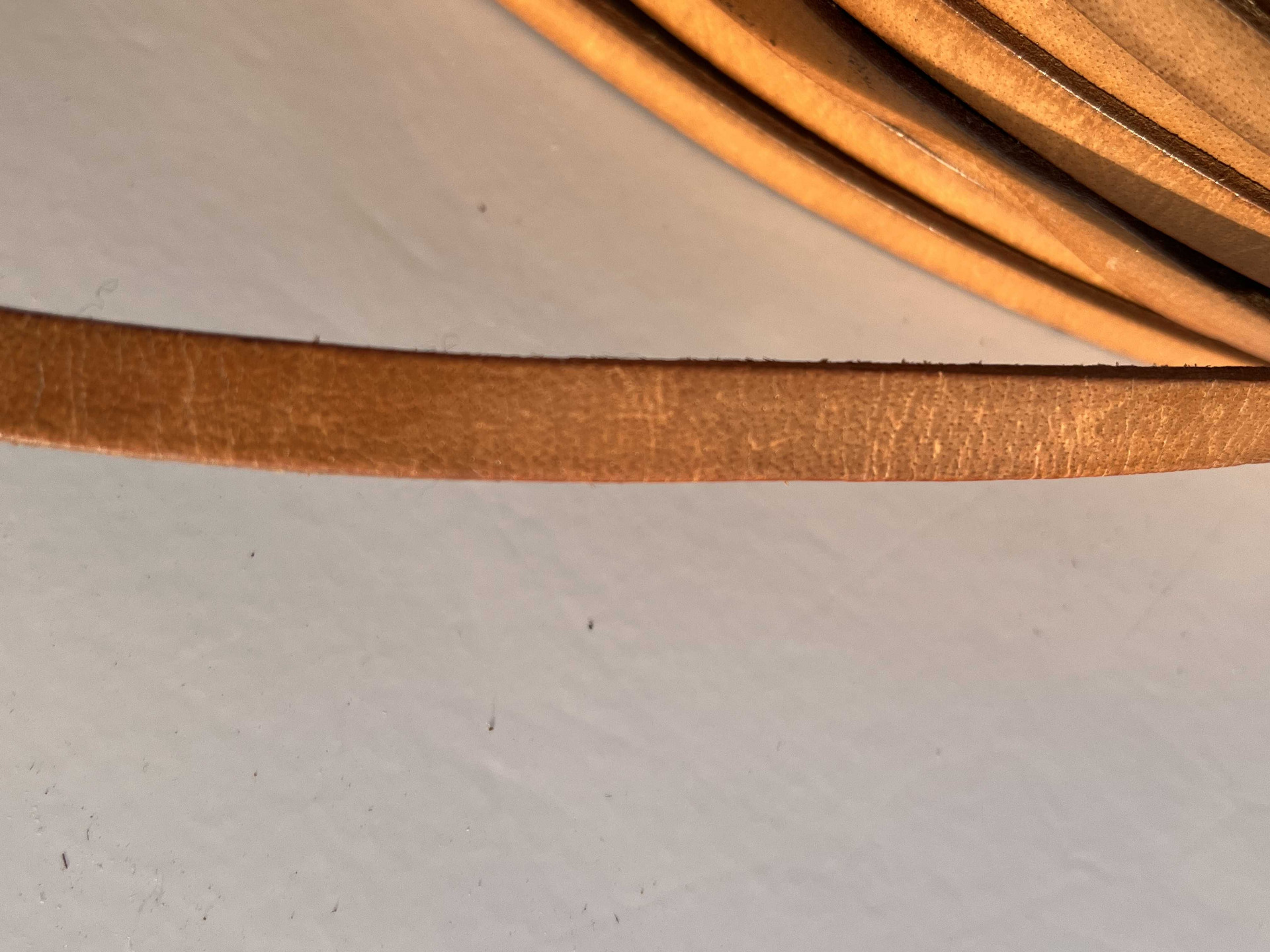 Nastro in vera pelle liscio piatto, larghezza 8 millimetri in vera pelle bovina conciata al vegetale, anilina segni e imperfezioni non sono da considerarsi difetti, ma caratteristiche naturali, semi rigido, ampiamente utilizzato nel settore della pelletteria e calzatura , pronto per essere utilizzato per la creazione di cinturini, collari, tracolle, infradito, sandali, ciabatte e molto altro.