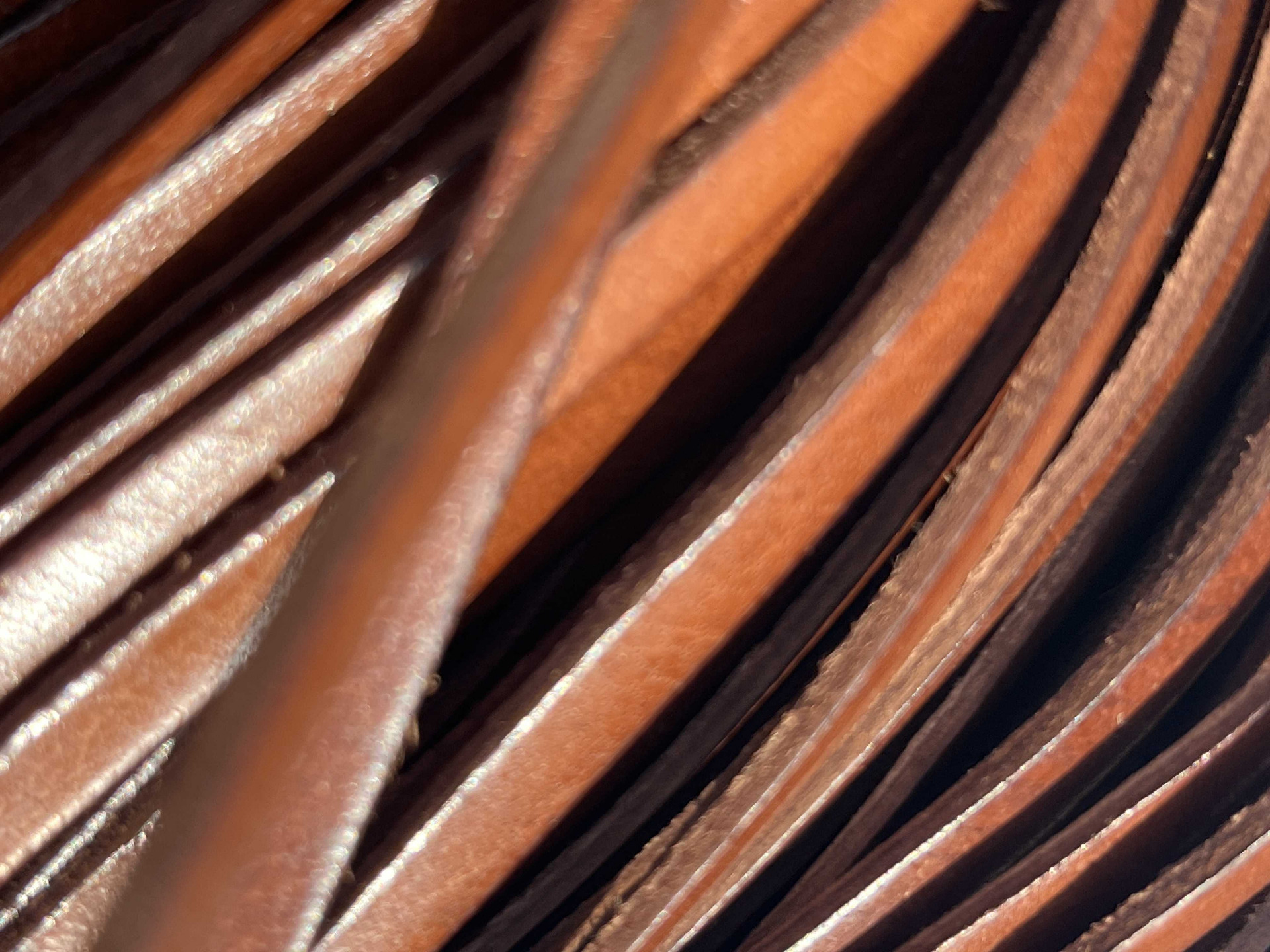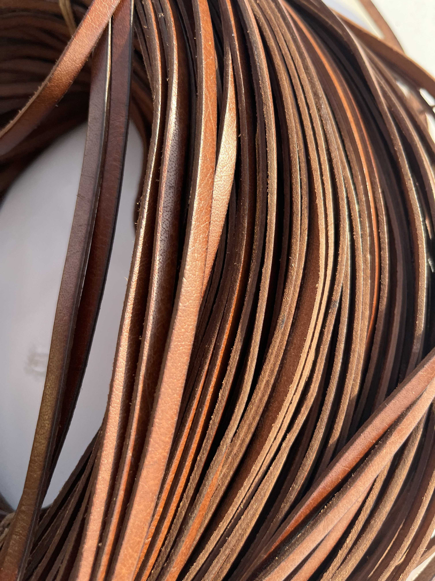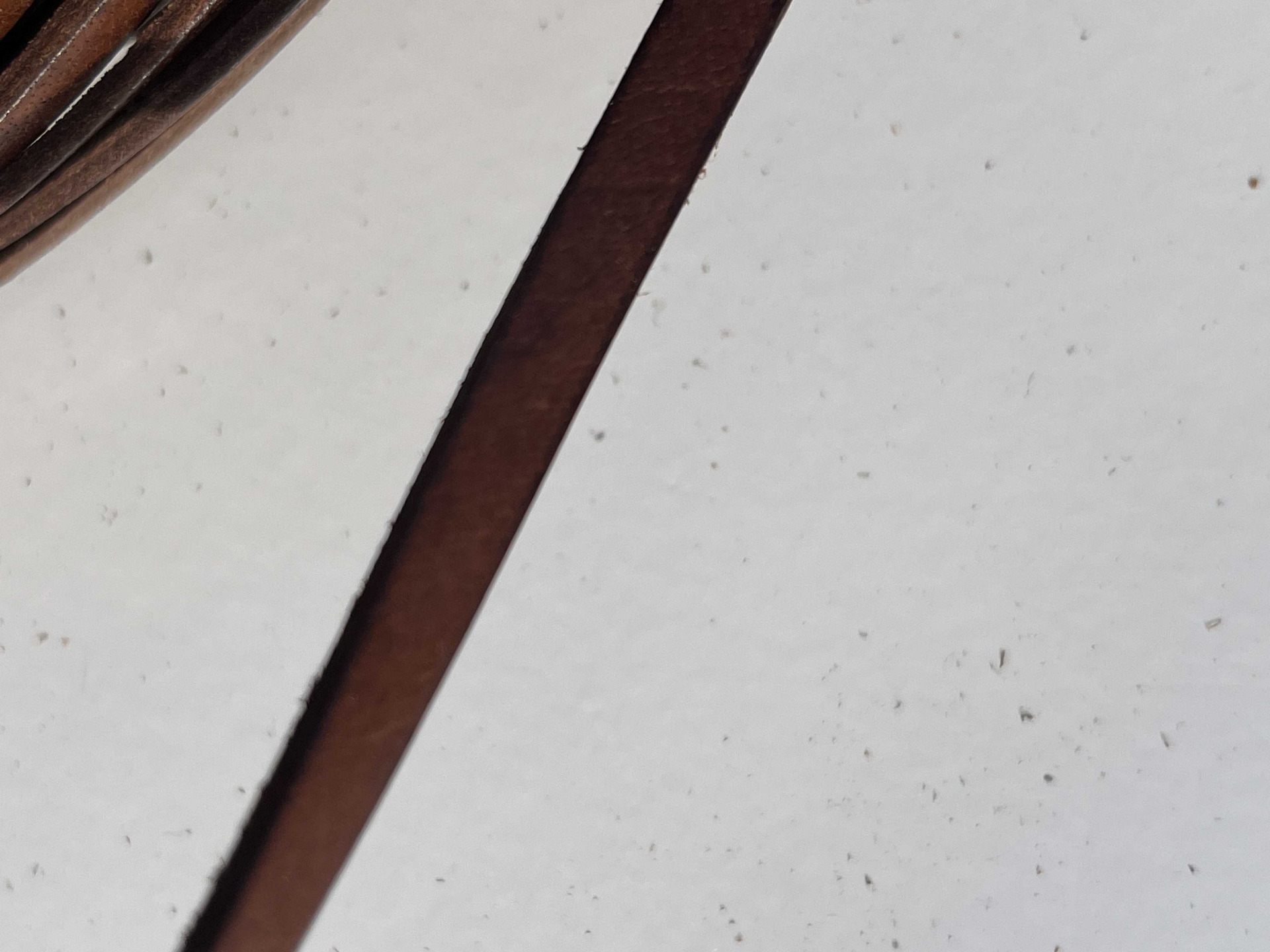 Nastro in vera pelle liscio piatto, larghezza 5 millimetri in vera pelle bovina conciata al vegetale, anilina segni e imperfezioni non sono da considerarsi difetti, ma caratteristiche naturali, semi rigido, ampiamente utilizzato nel settore della pelletteria e calzatura , pronto per essere utilizzato per la creazione di cinturini, collari, tracolle, infradito, sandali, ciabatte e molto altro.