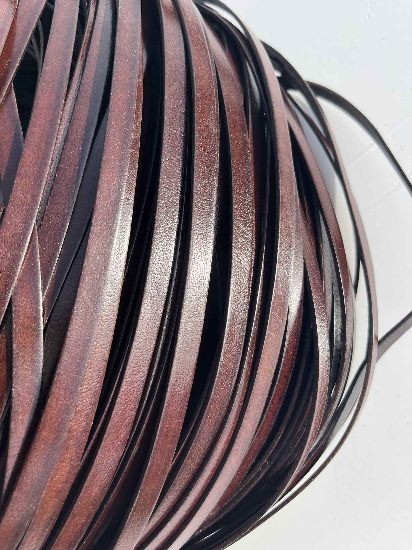 Nastro in vera pelle liscio piatto, larghezza 8 millimetri in vera pelle bovina conciata al vegetale, anilina segni e imperfezioni non sono da considerarsi difetti, ma caratteristiche naturali, semi rigido, ampiamente utilizzato nel settore della pelletteria e calzatura , pronto per essere utilizzato per la creazione di cinturini, collari, tracolle, infradito, sandali, ciabatte e molto altro.