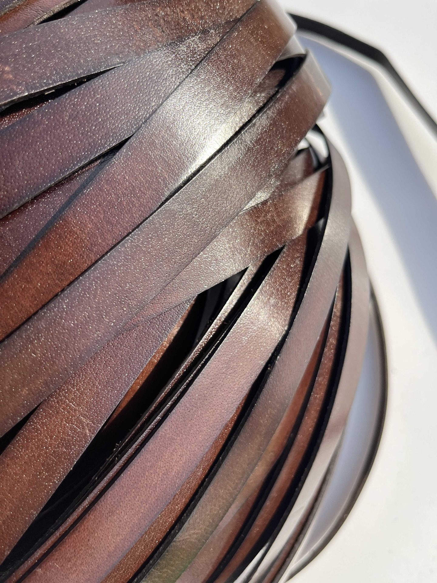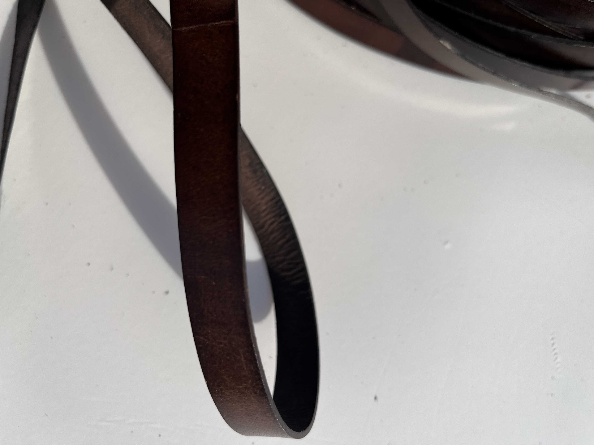 Nastro in vera pelle liscio piatto, larghezza 15 millimetri in vera pelle bovina conciata al vegetale, anilina segni e imperfezioni non sono da considerarsi difetti, ma caratteristiche naturali, semi rigido, ampiamente utilizzato nel settore della pelletteria e calzatura , pronto per essere utilizzato per la creazione di cinturini, collari, tracolle, infradito, sandali, ciabatte e molto altro.
