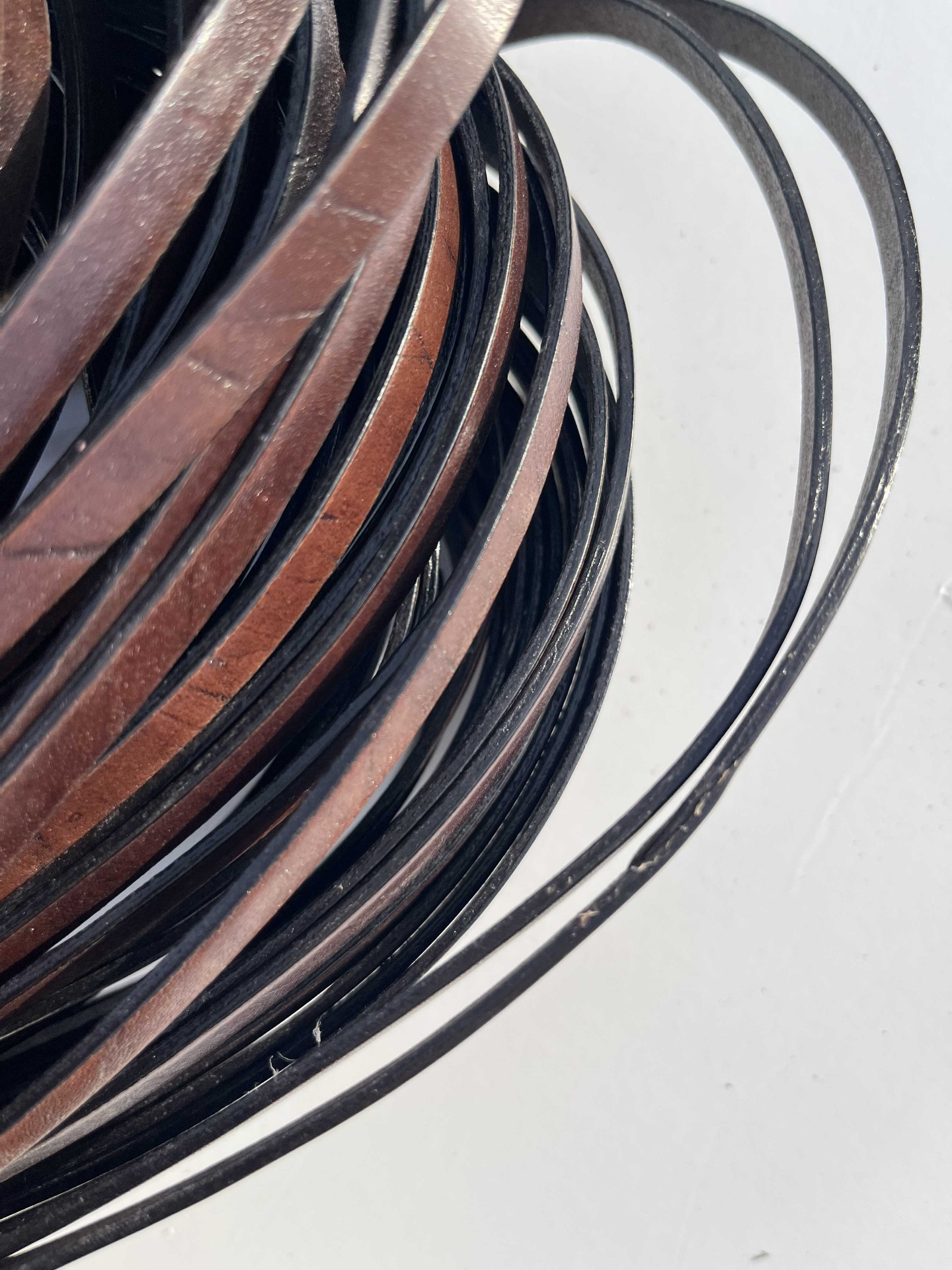 Nastro in vera pelle liscio piatto, larghezza 10 millimetri in vera pelle bovina conciata al vegetale, anilina segni e imperfezioni non sono da considerarsi difetti, ma caratteristiche naturali, semi rigido, ampiamente utilizzato nel settore della pelletteria e calzatura , pronto per essere utilizzato per la creazione di cinturini, collari, tracolle, infradito, sandali, ciabatte e molto altro.